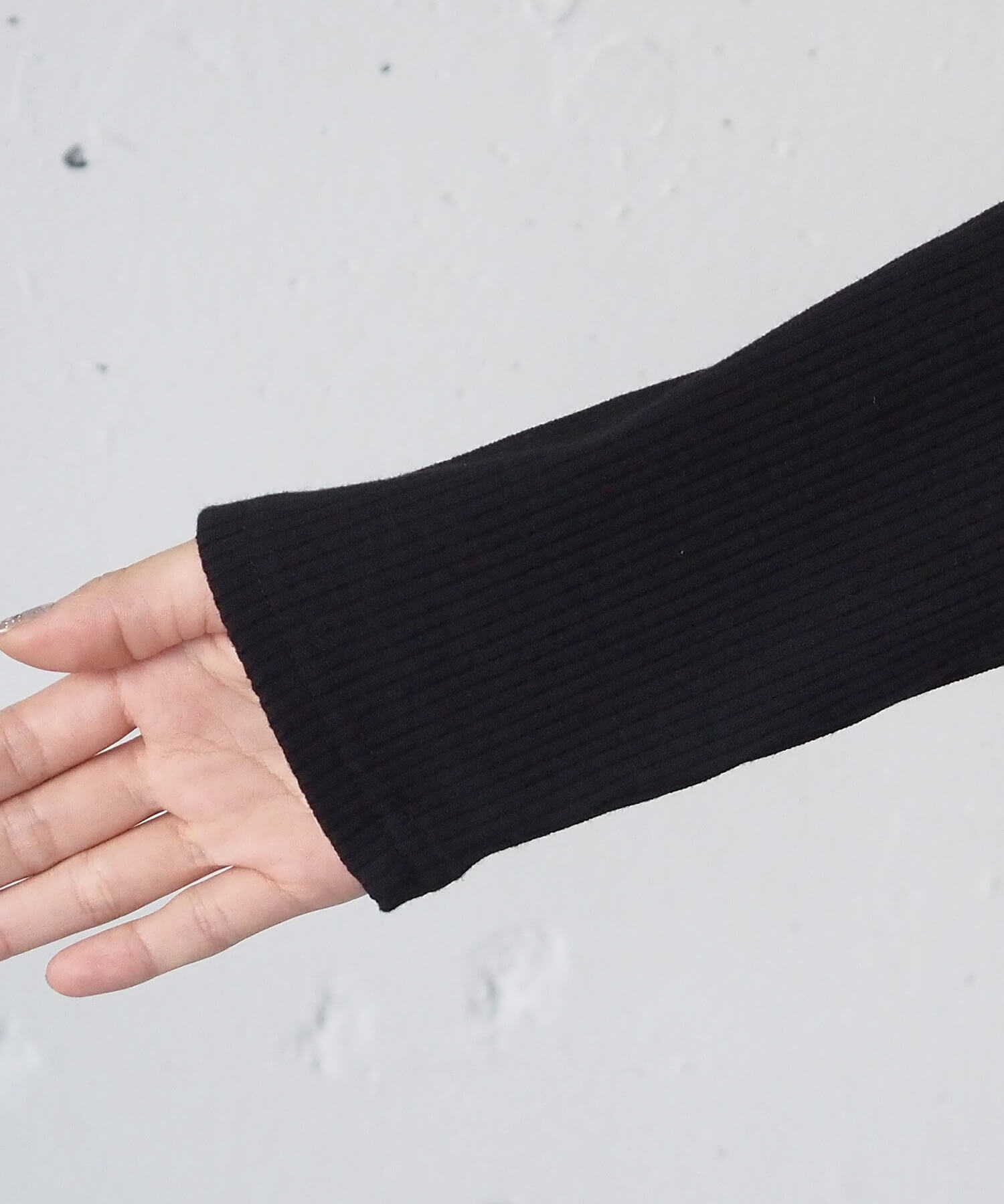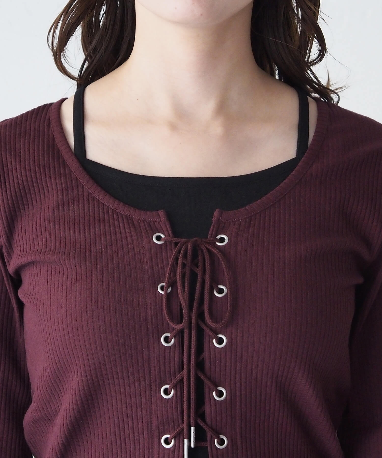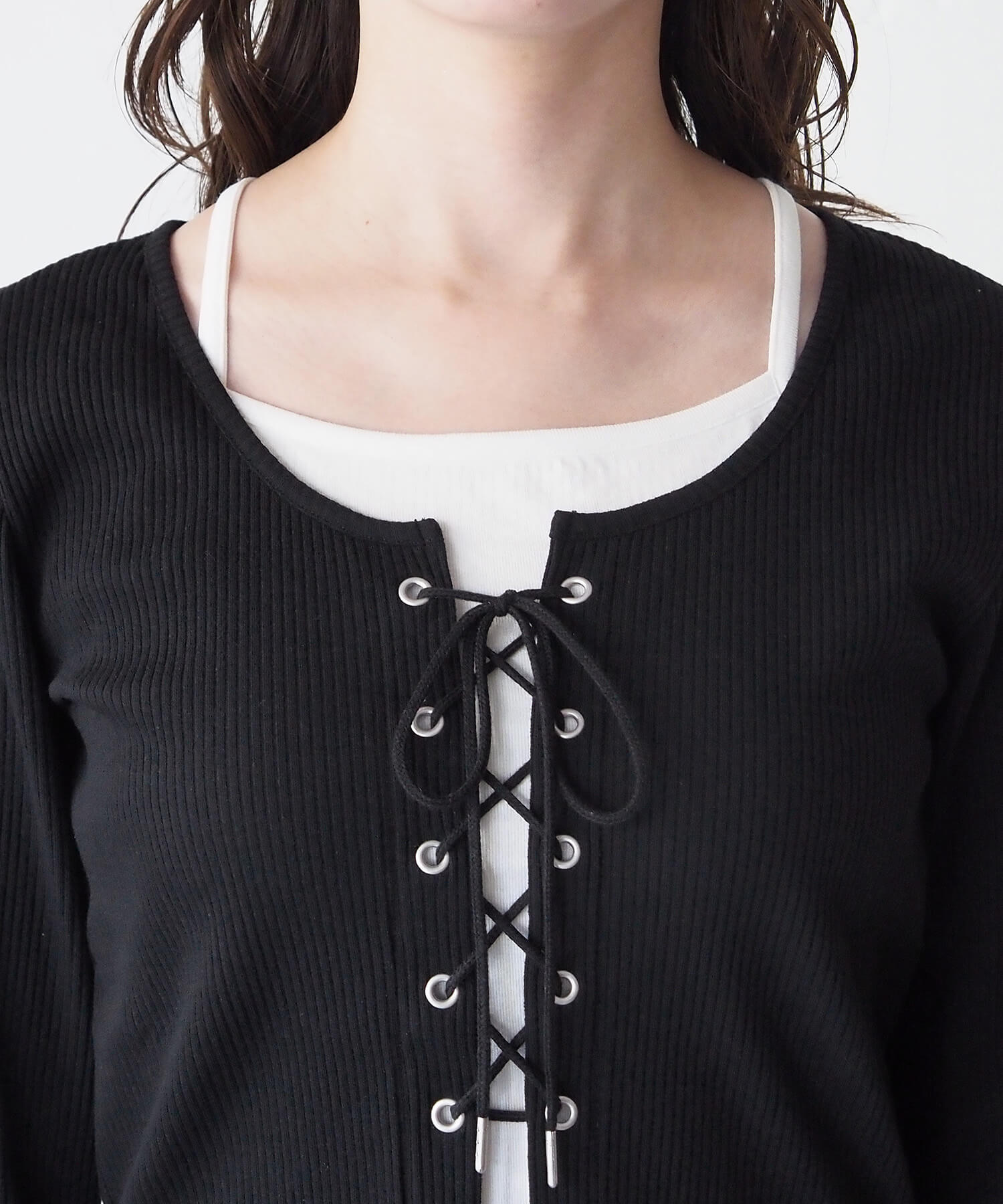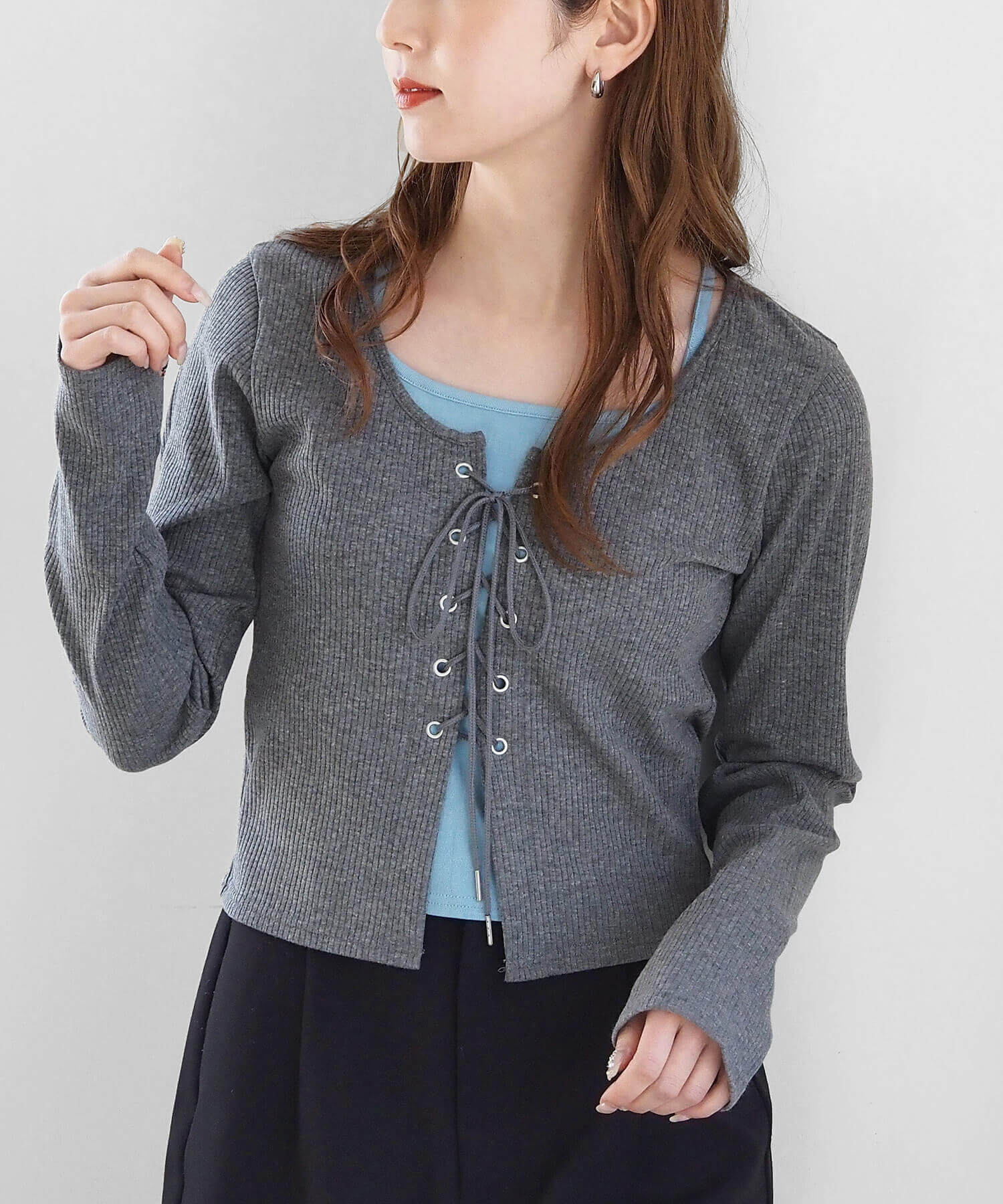 ・キャミソール部分は無地生地、長袖部分はテレコ生地を使用。異なる風合いの生地がこなれ感を演出します。