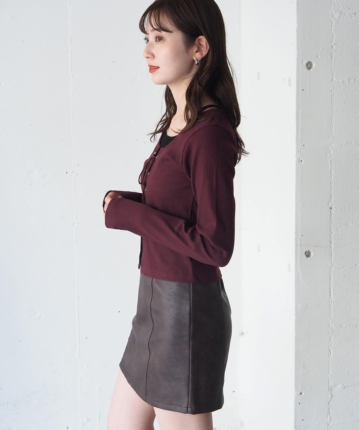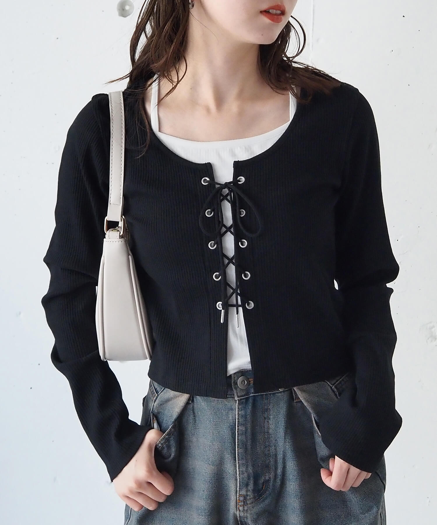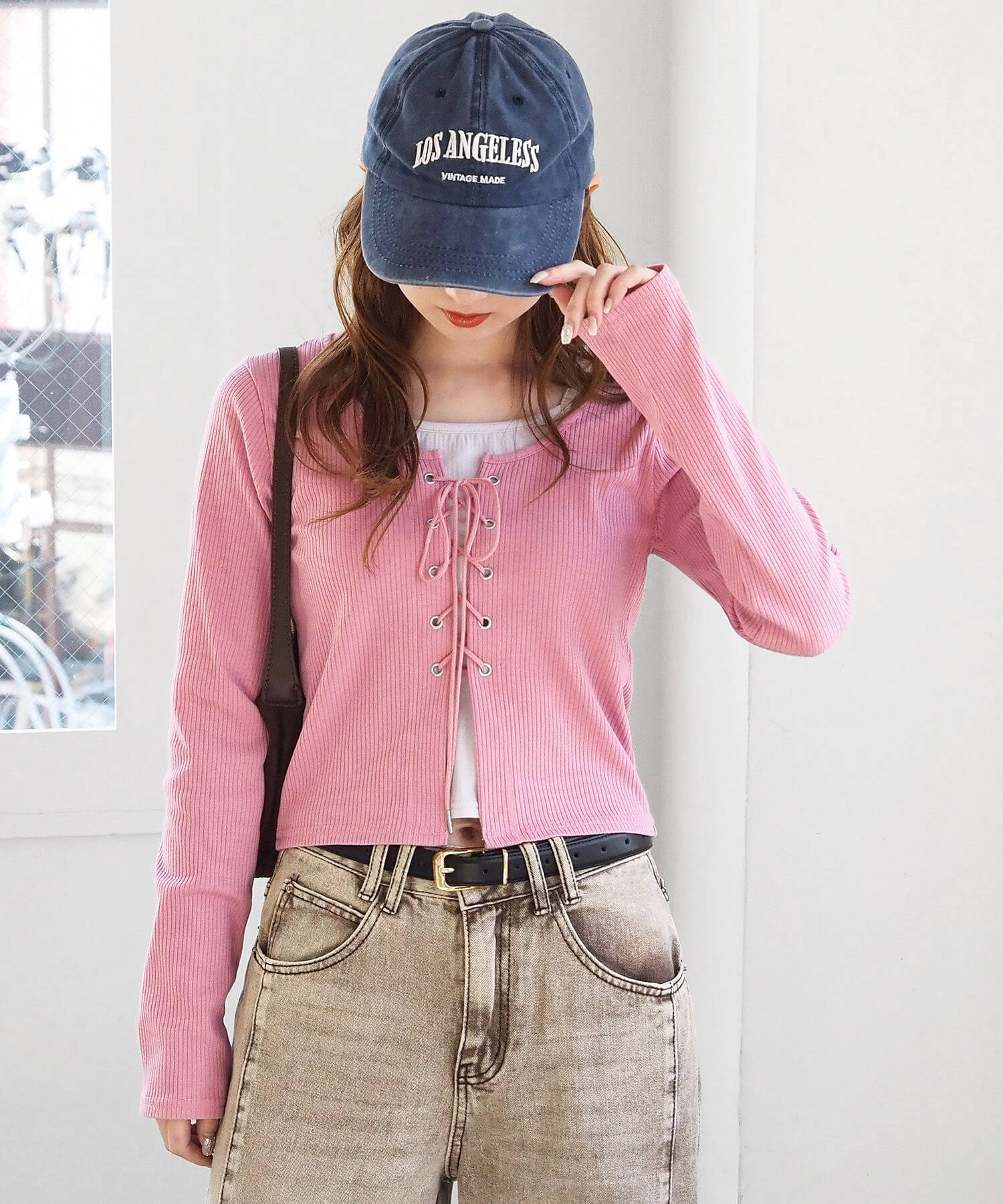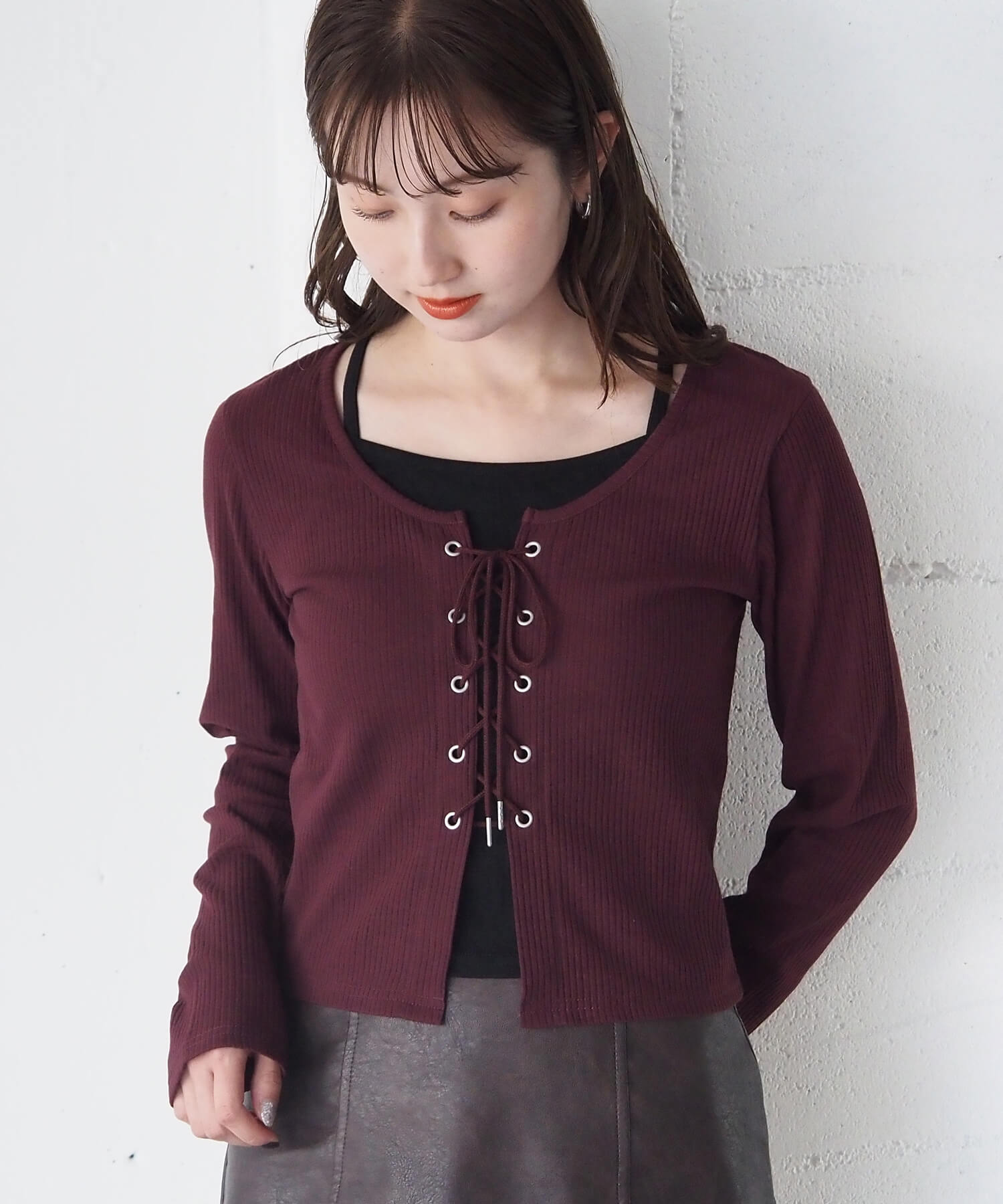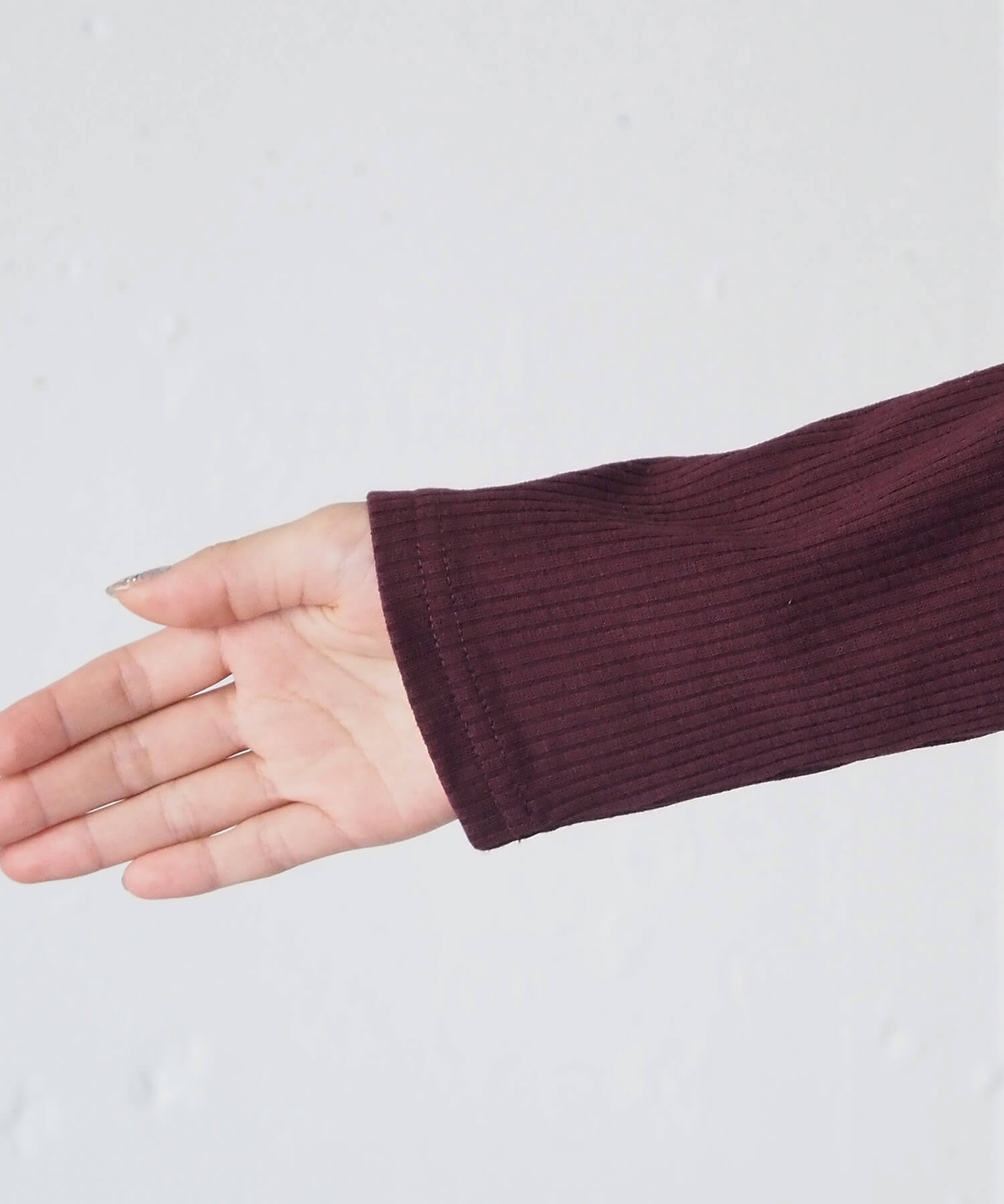 ・キャミソール部分は無地生地、長袖部分はテレコ生地を使用。異なる風合いの生地がこなれ感を演出します。