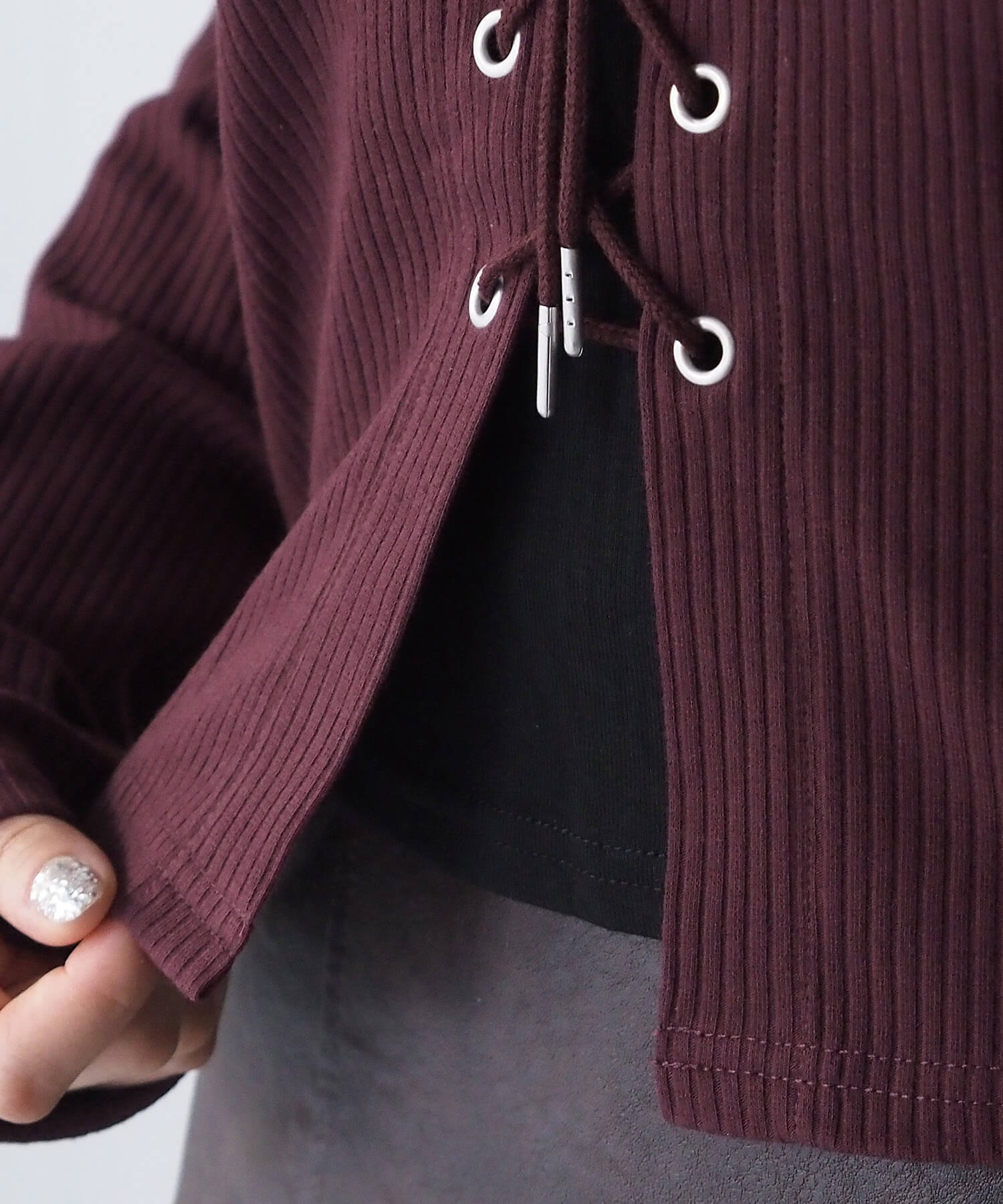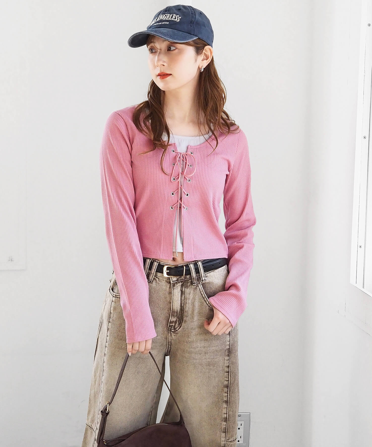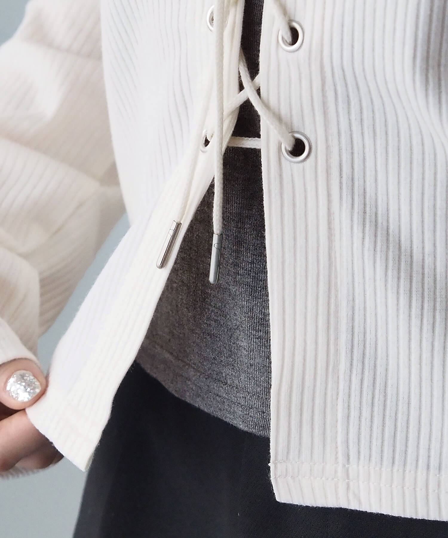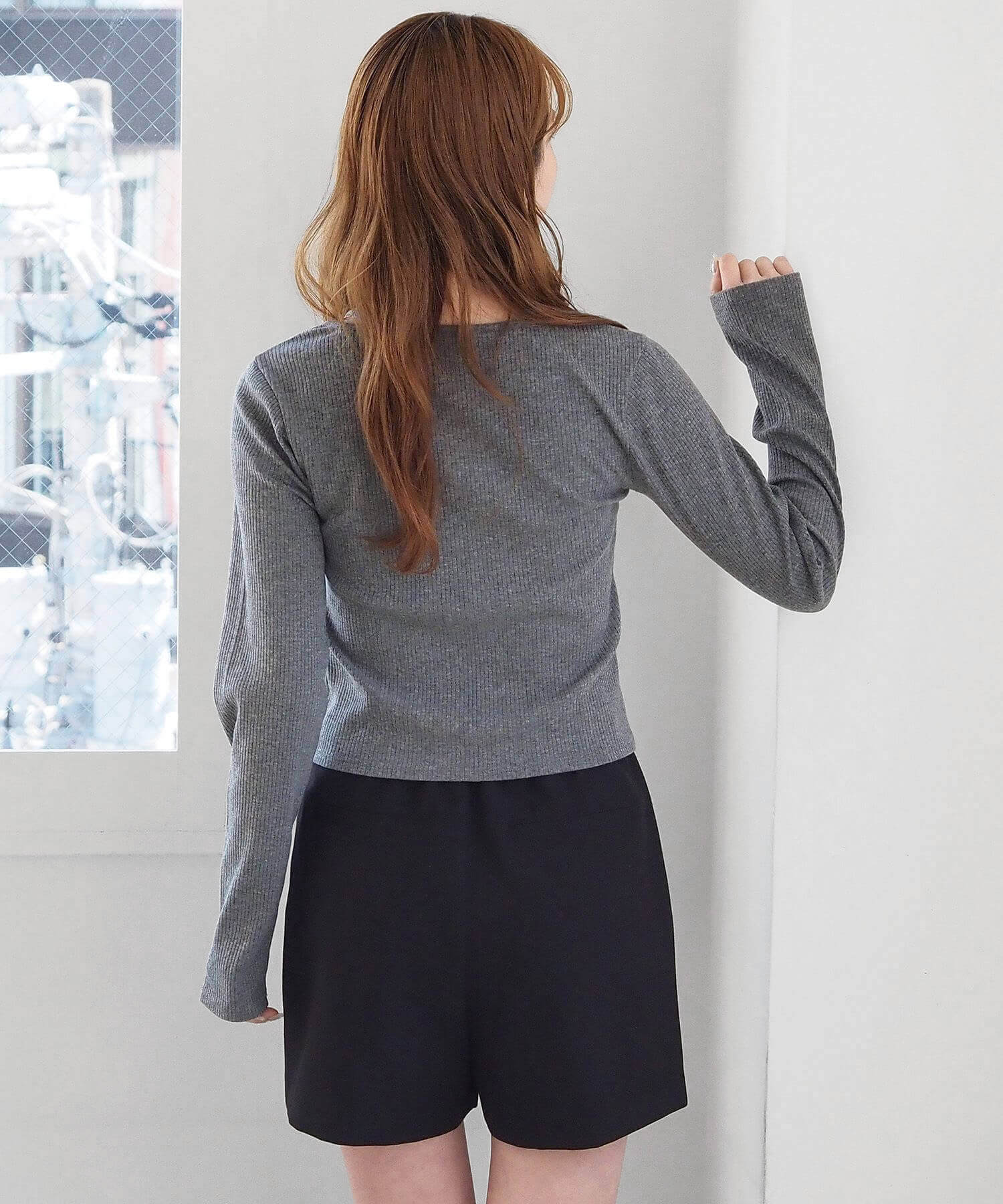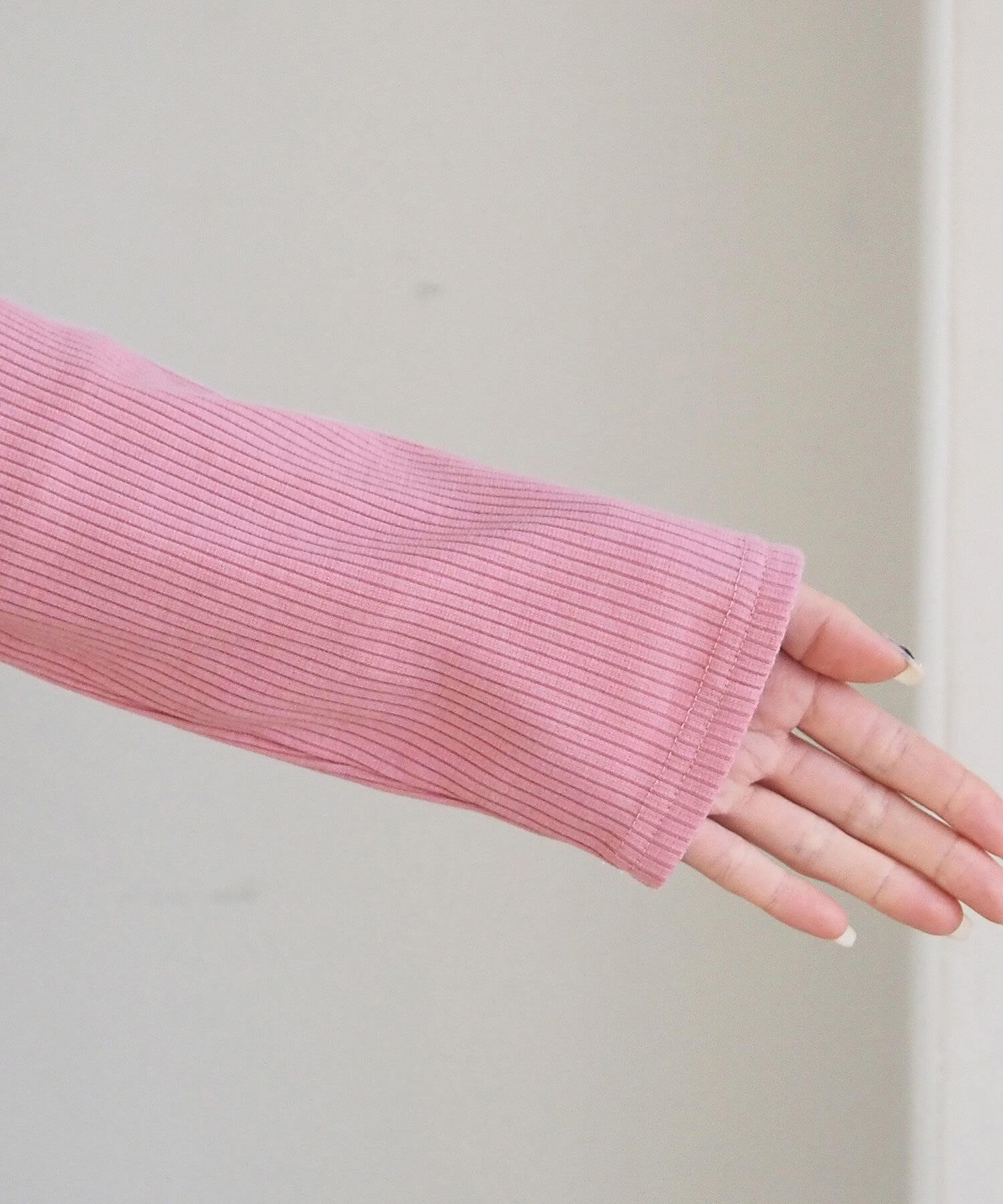 ・キャミソール部分は無地生地、長袖部分はテレコ生地を使用。異なる風合いの生地がこなれ感を演出します。