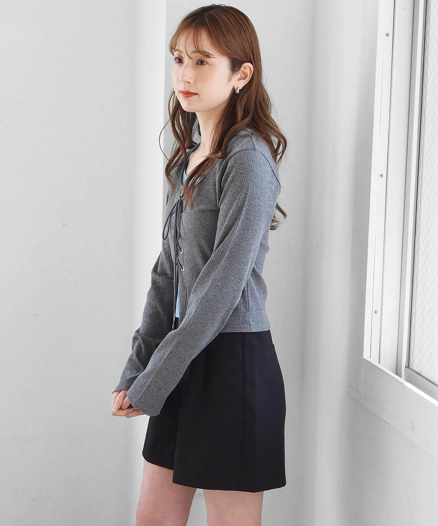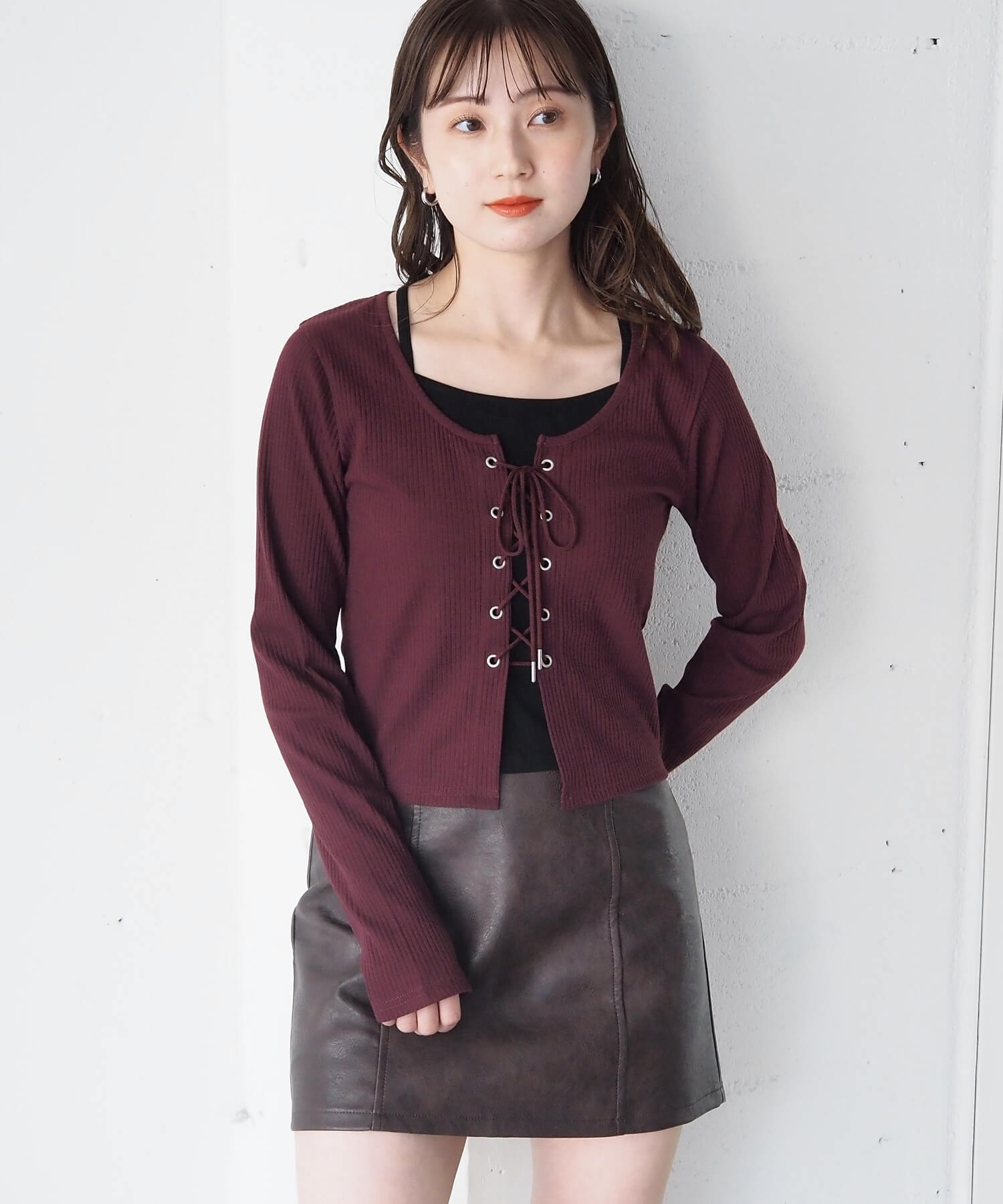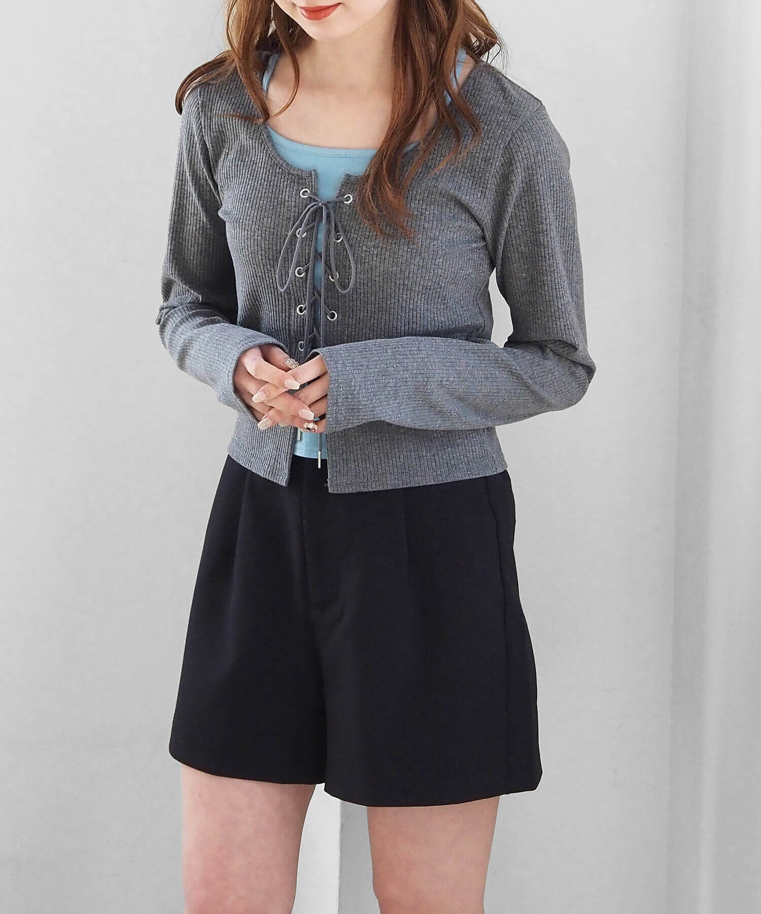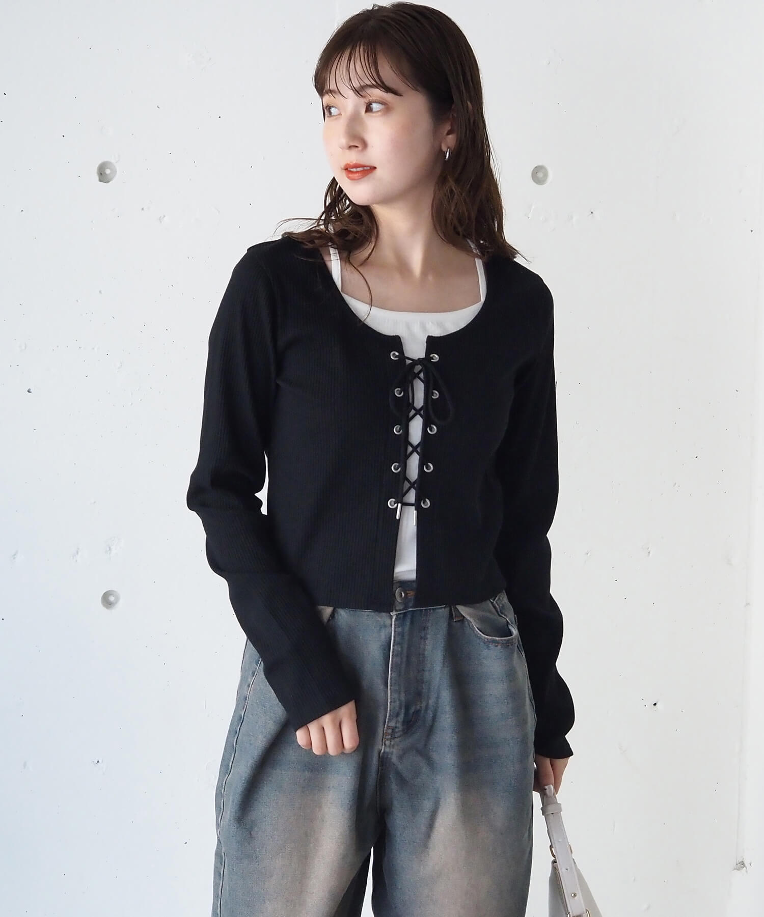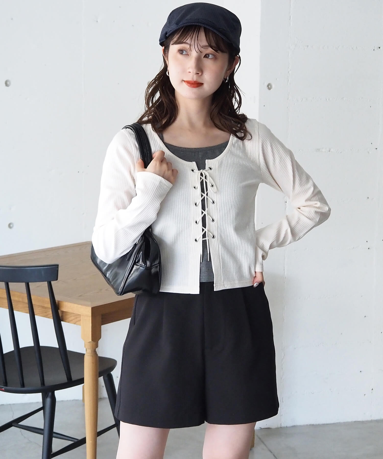 ・前身ごろはキャミソールにカーディガンを羽織ったようなデザイン。2枚重ねているので、よりリアルな着こなしが楽しめます。
