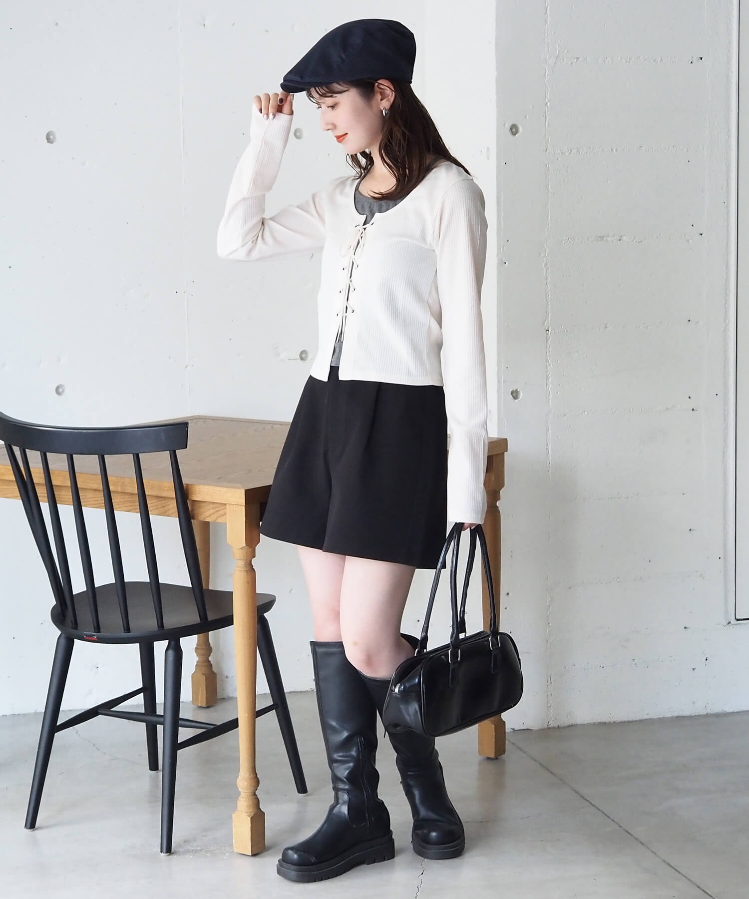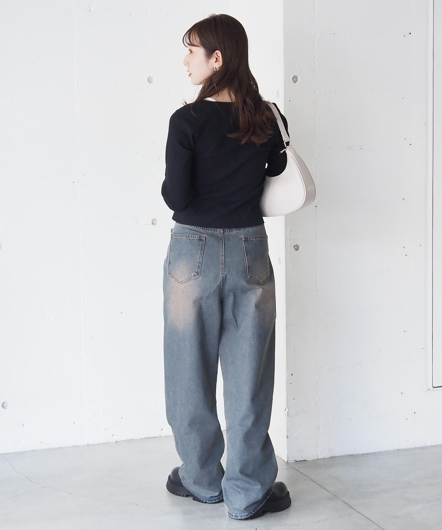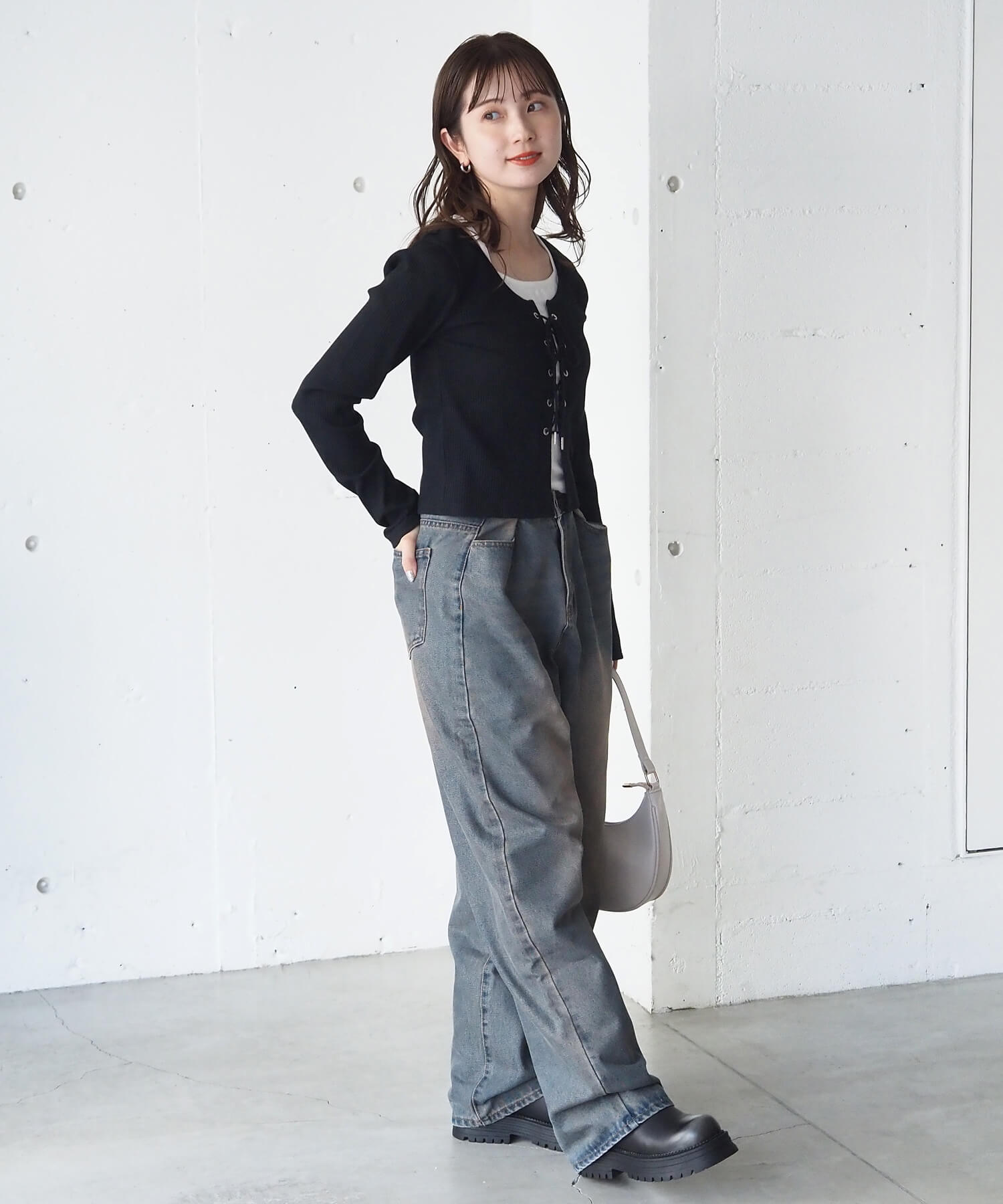 ・コンパクトな着こなしが叶うショート丈なので、ルーズデニムやワイドパンツと好相性です。