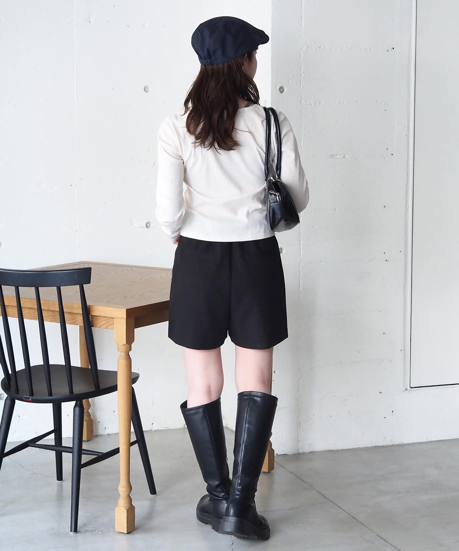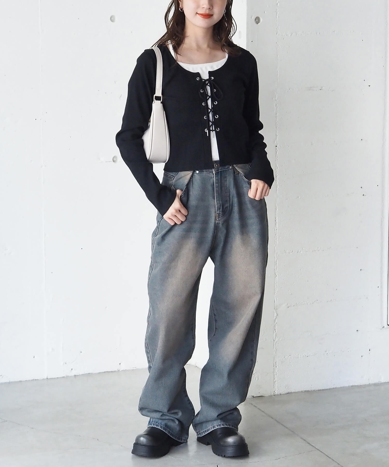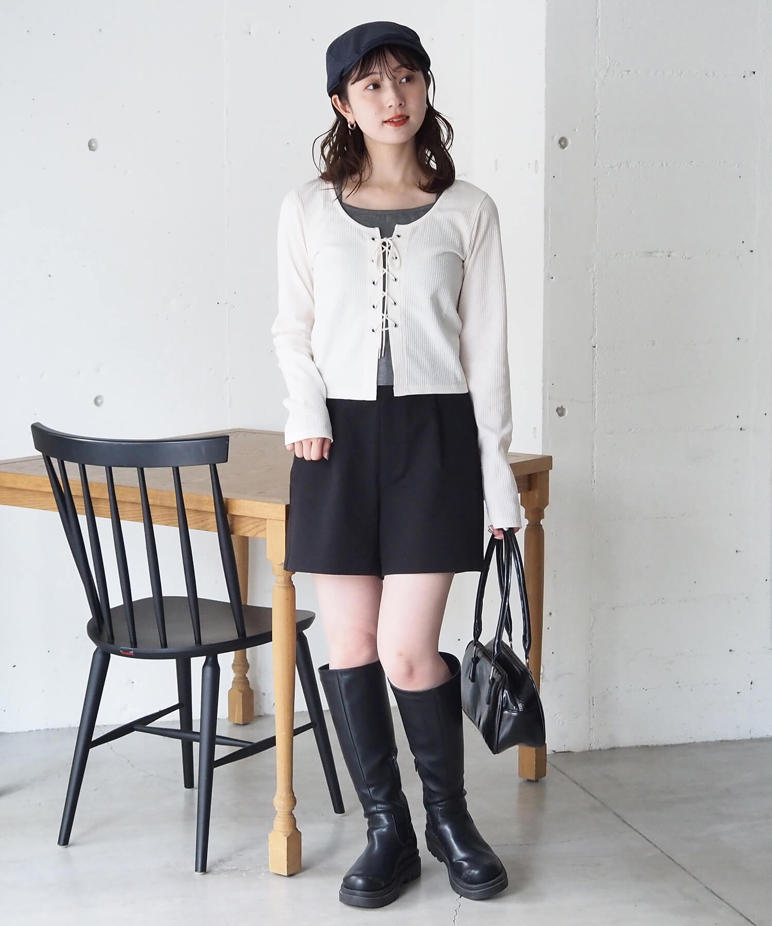 ・コンパクトな着こなしが叶うショート丈なので、ルーズデニムやワイドパンツと好相性です。