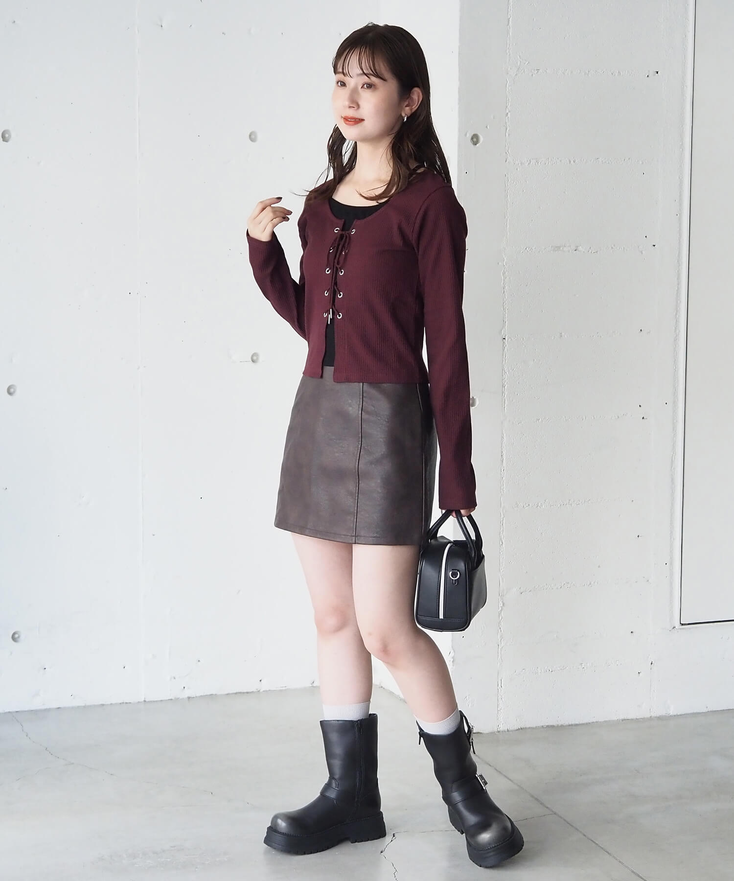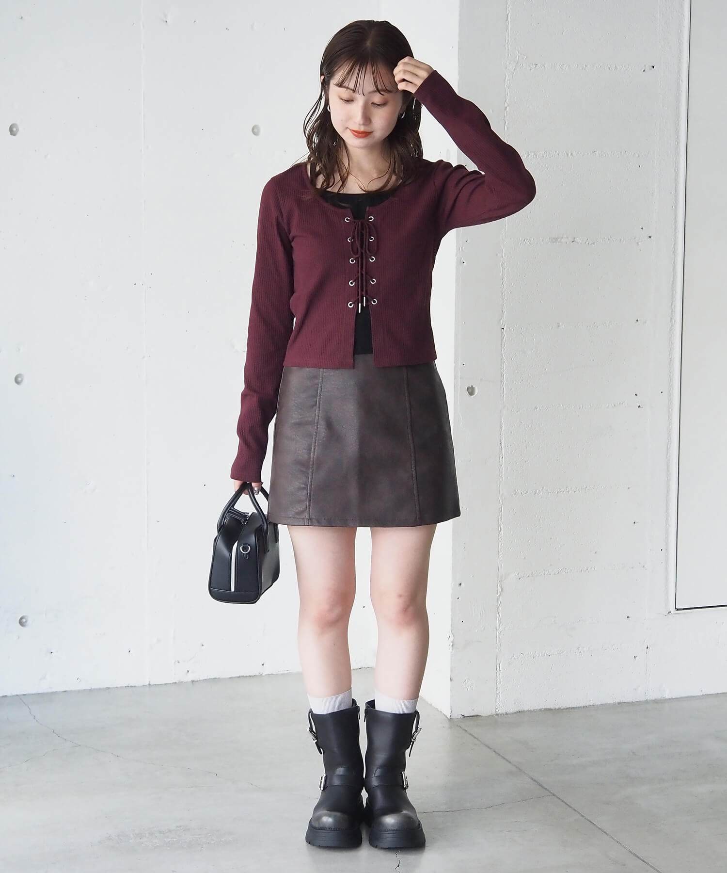 ・秋冬も注目のミニスカートでガーリーカジュアルに。ソックスやブーツでボリュームを追加してスタイルアップを狙うのもおすすめです。