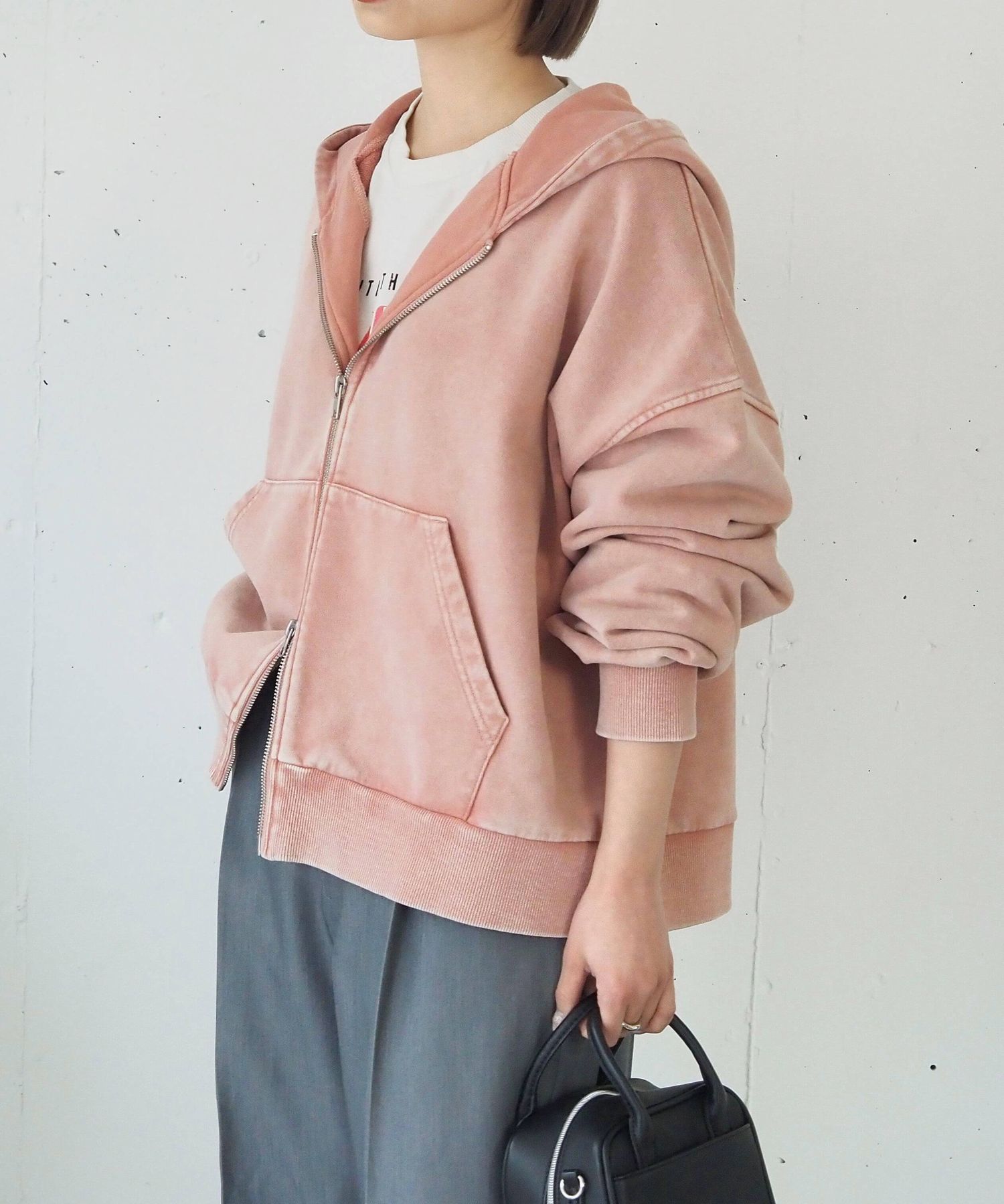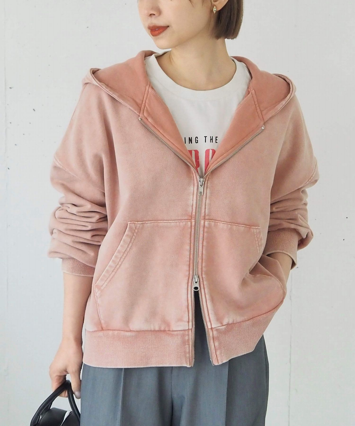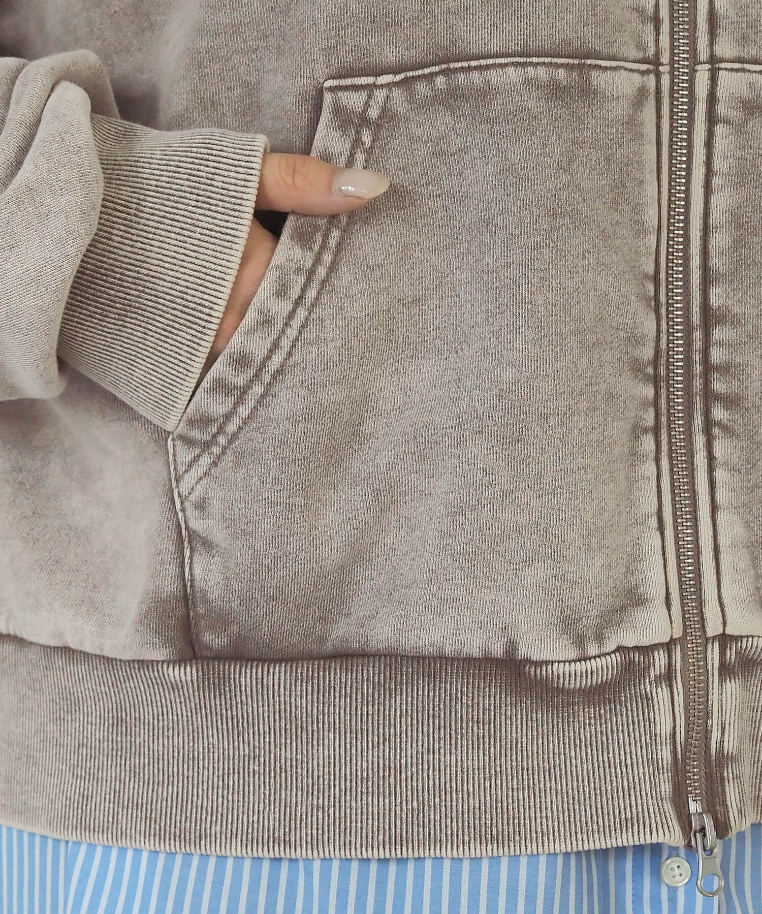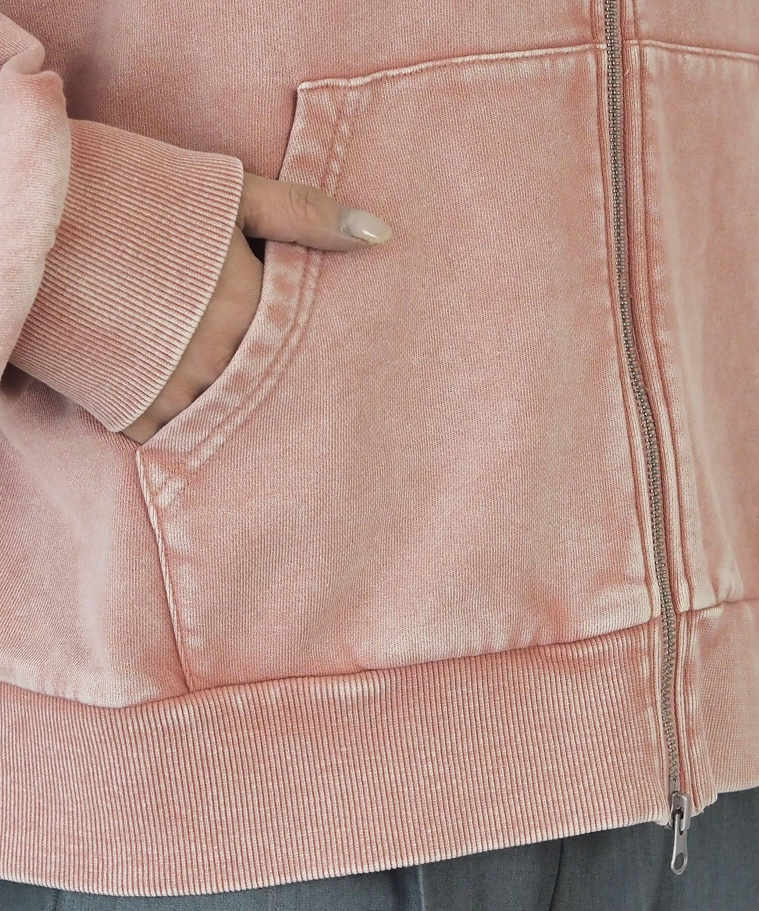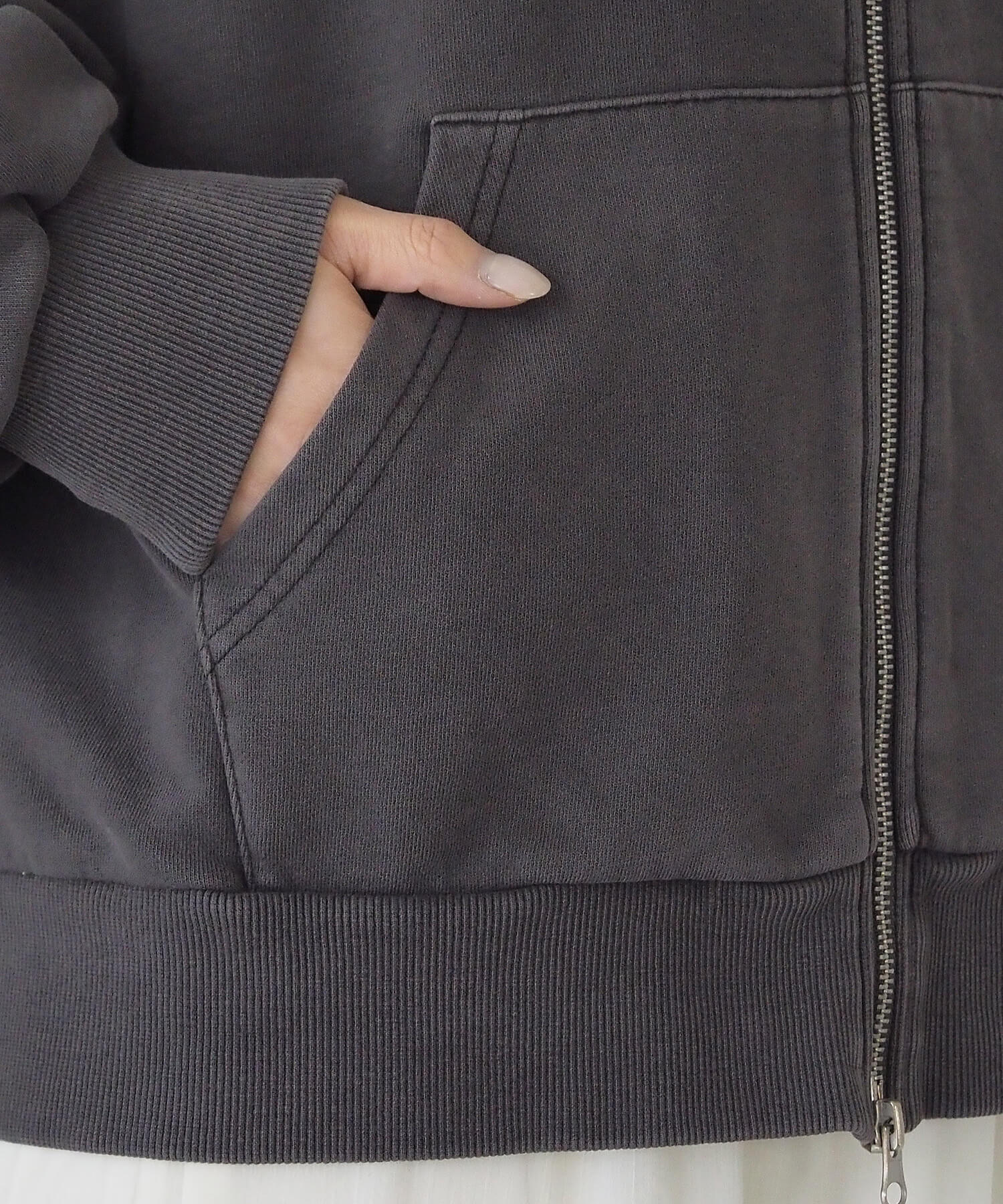 ・古着風のヴィンテージ加工が魅力のジップパーカーです。