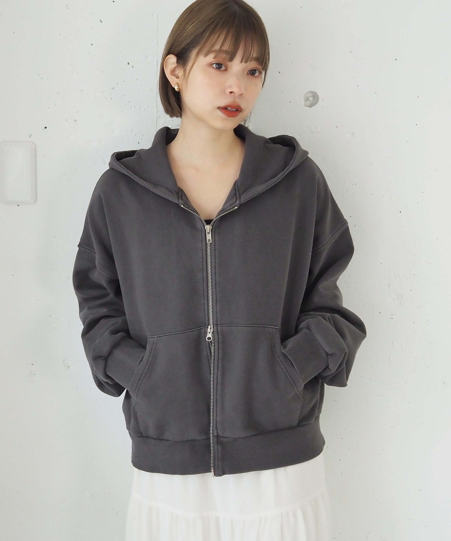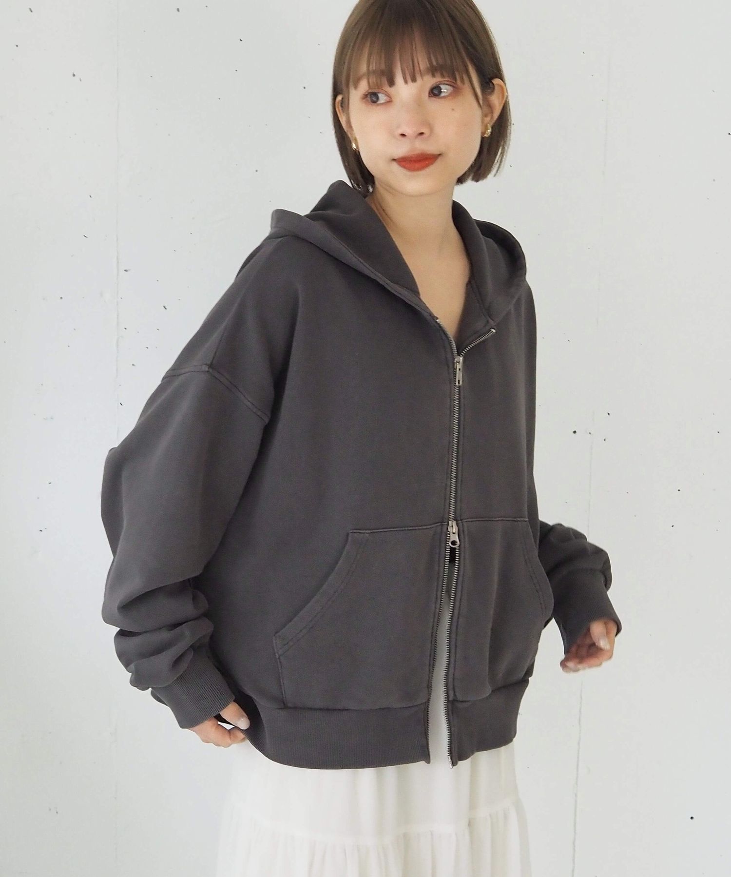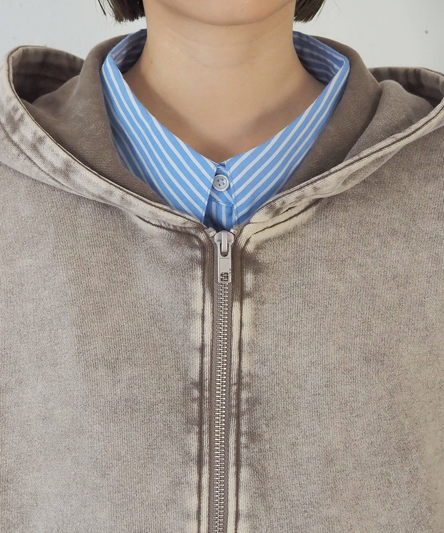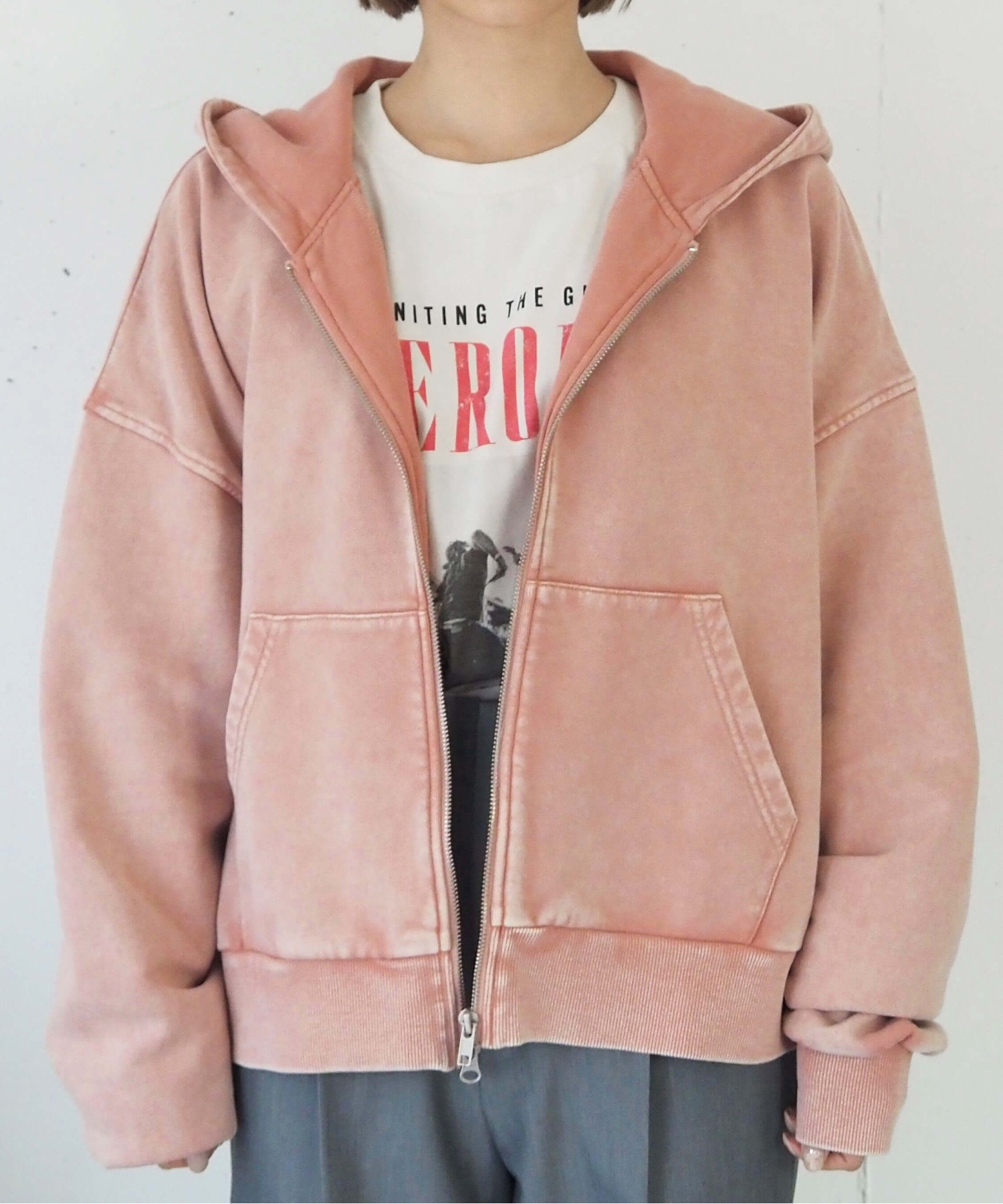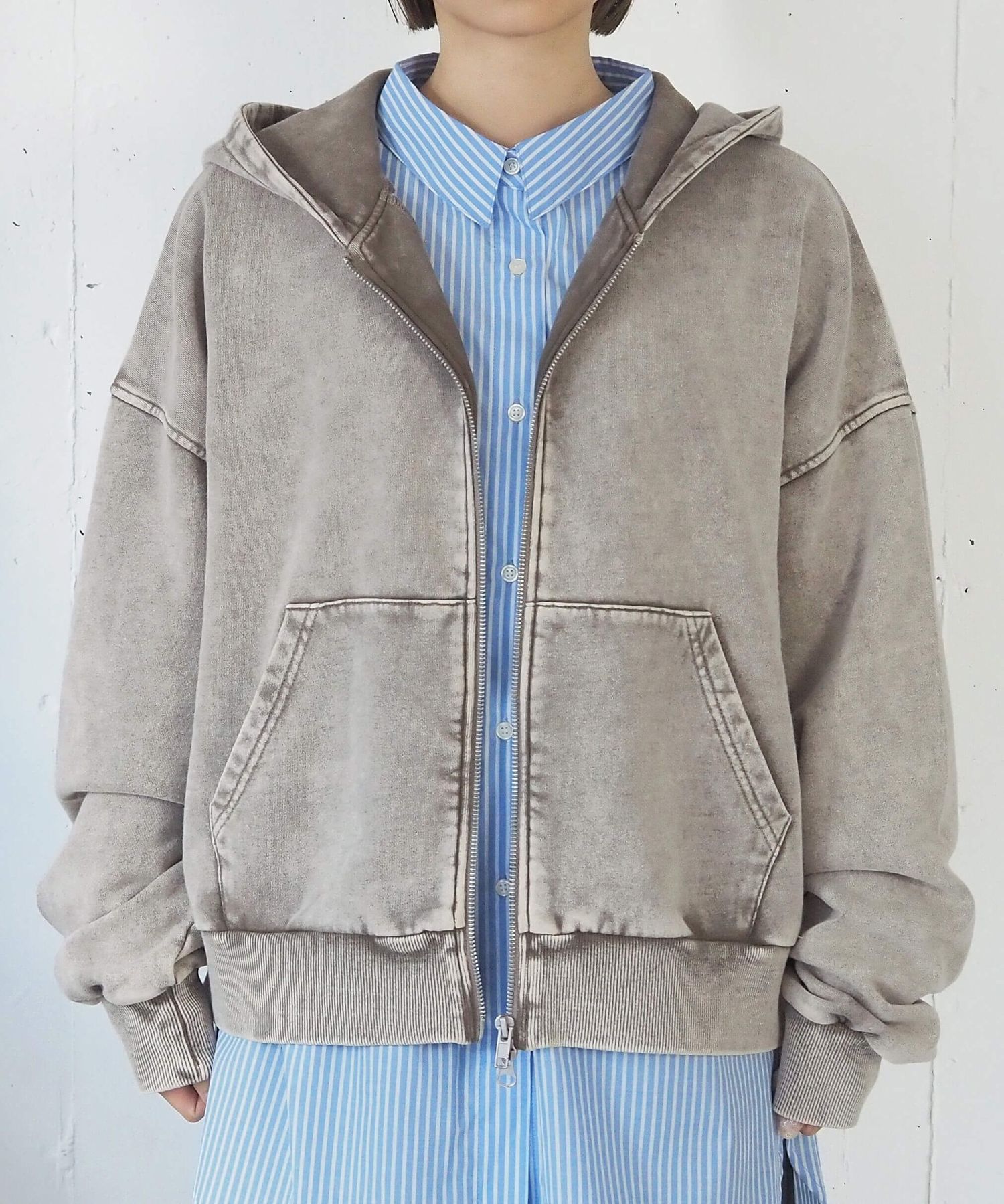 ・古着風のヴィンテージ加工が魅力のジップパーカーです。
