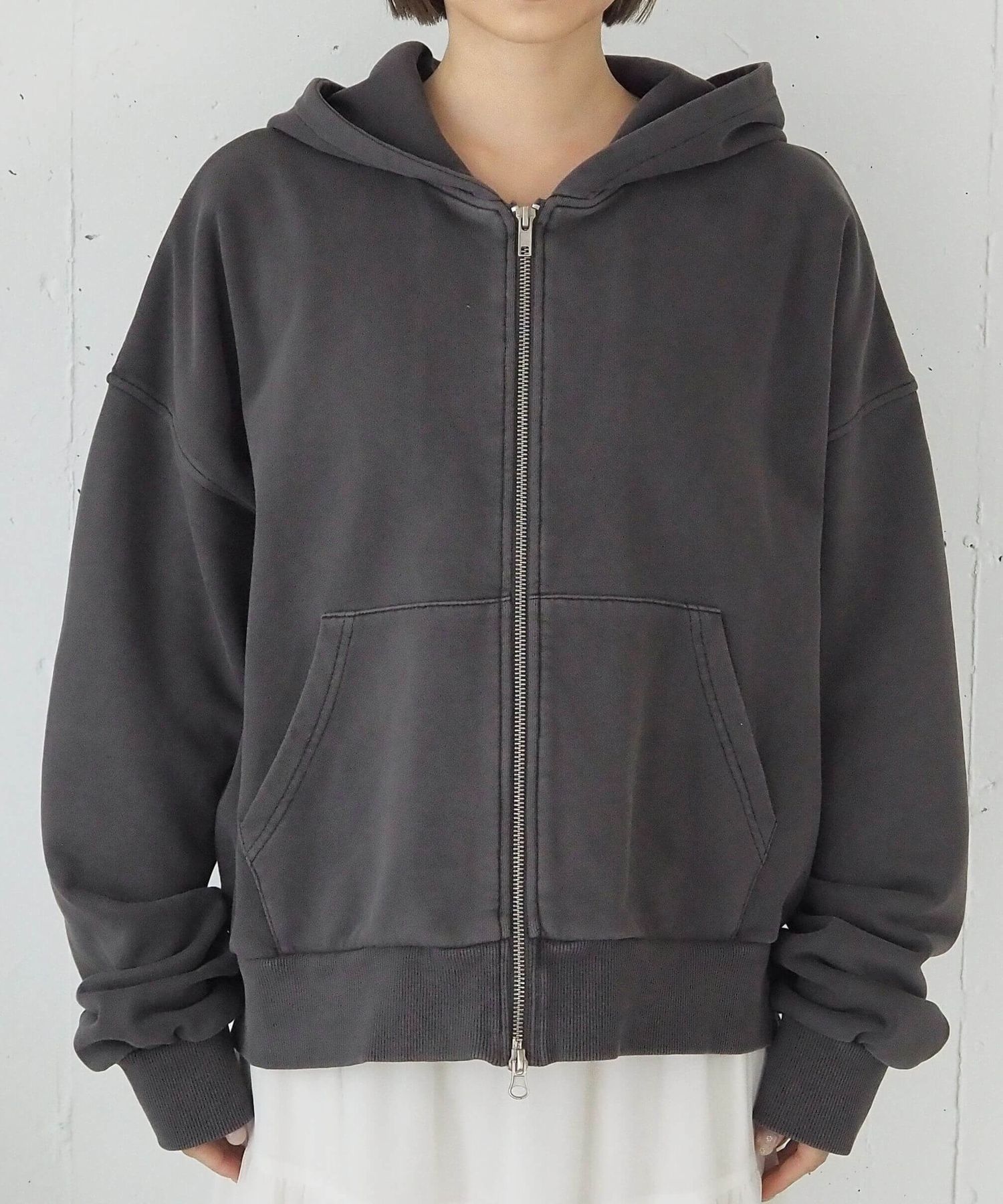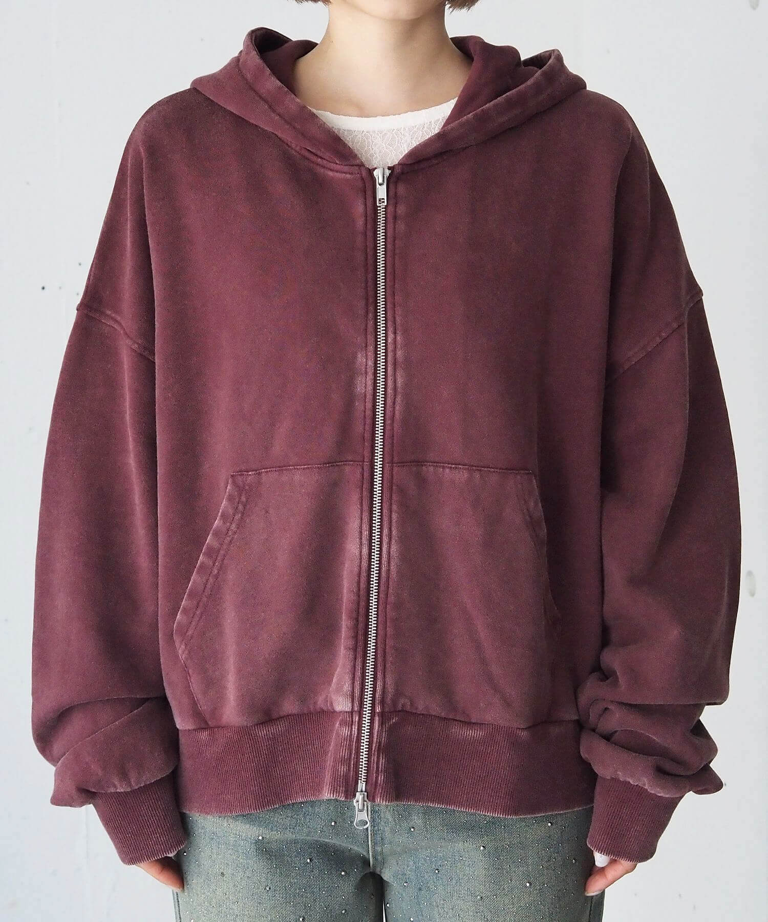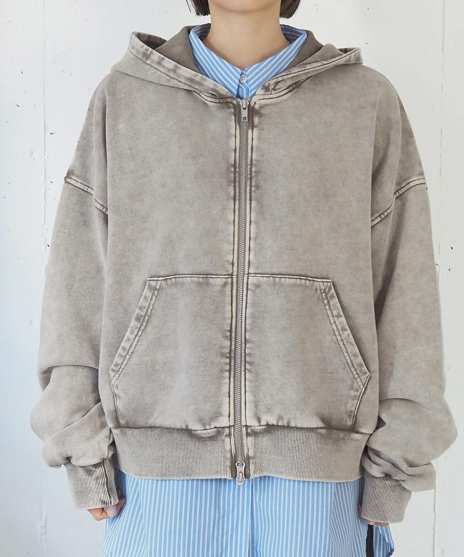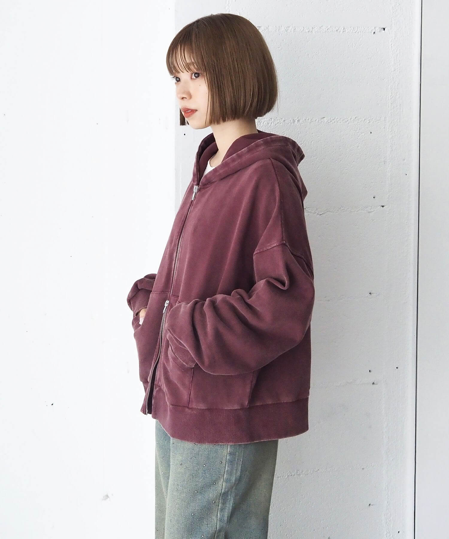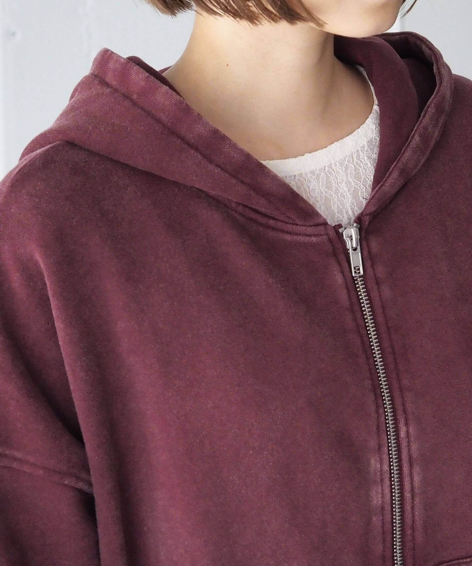 ・古着風のヴィンテージ加工が魅力のジップパーカーです。