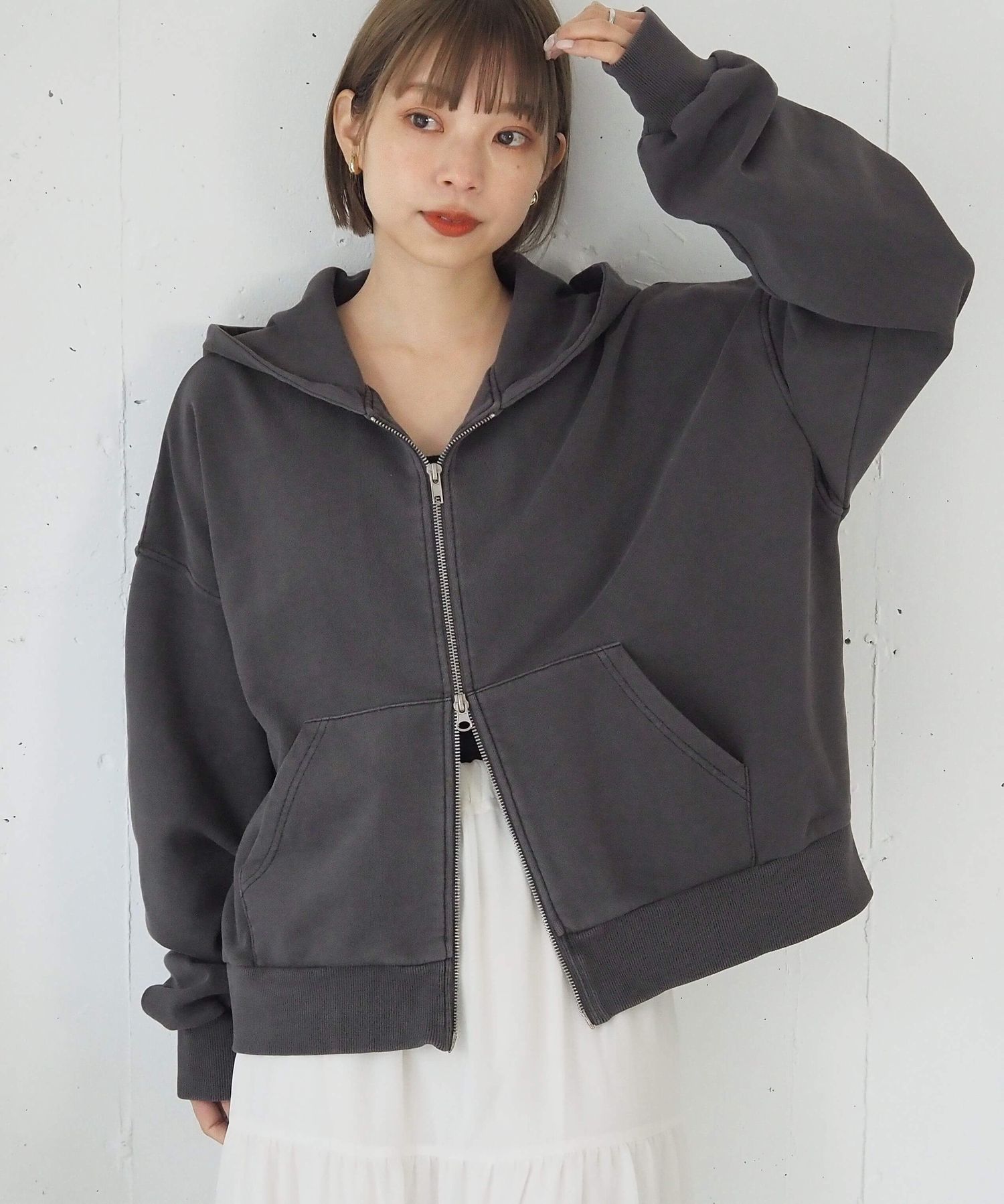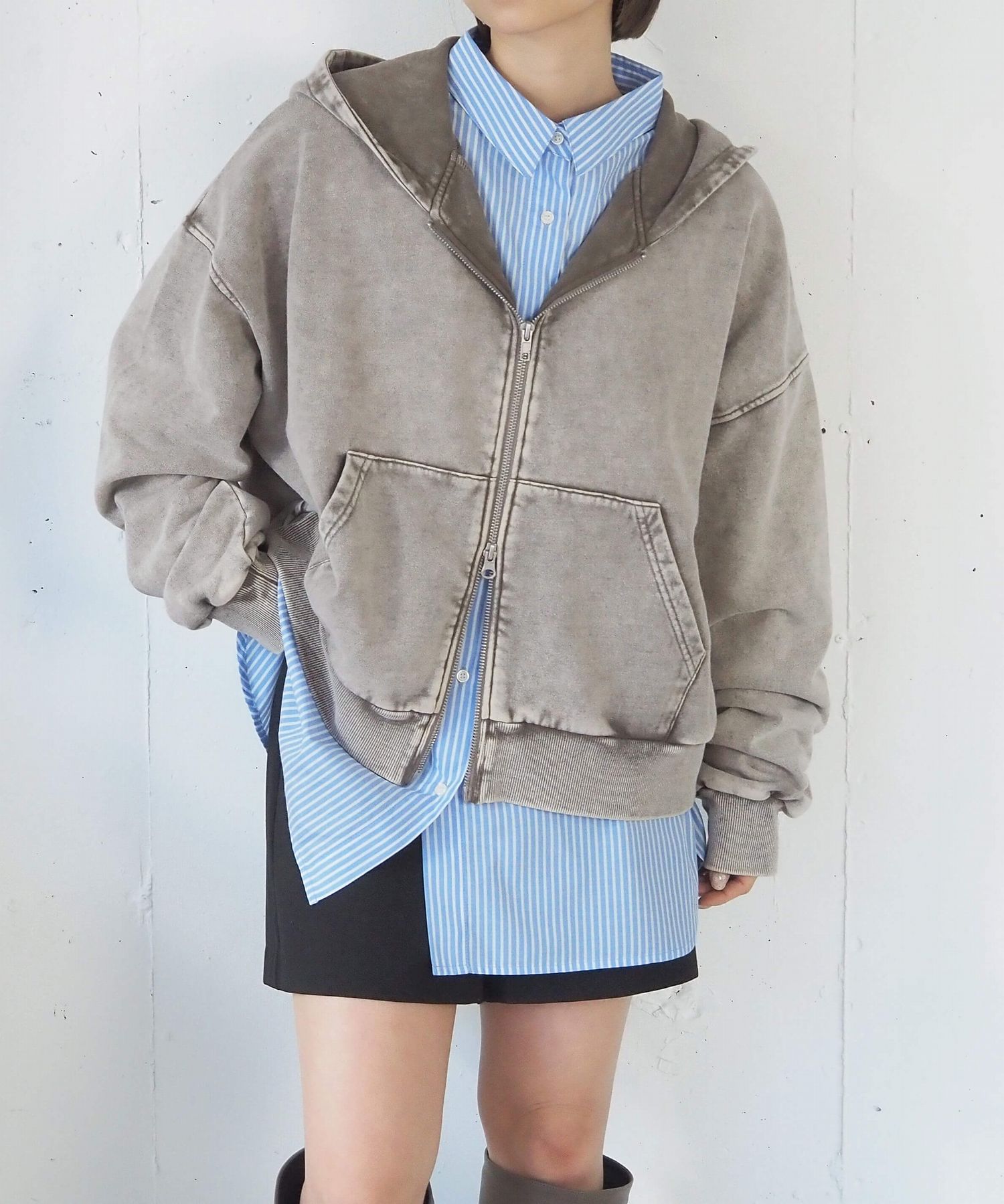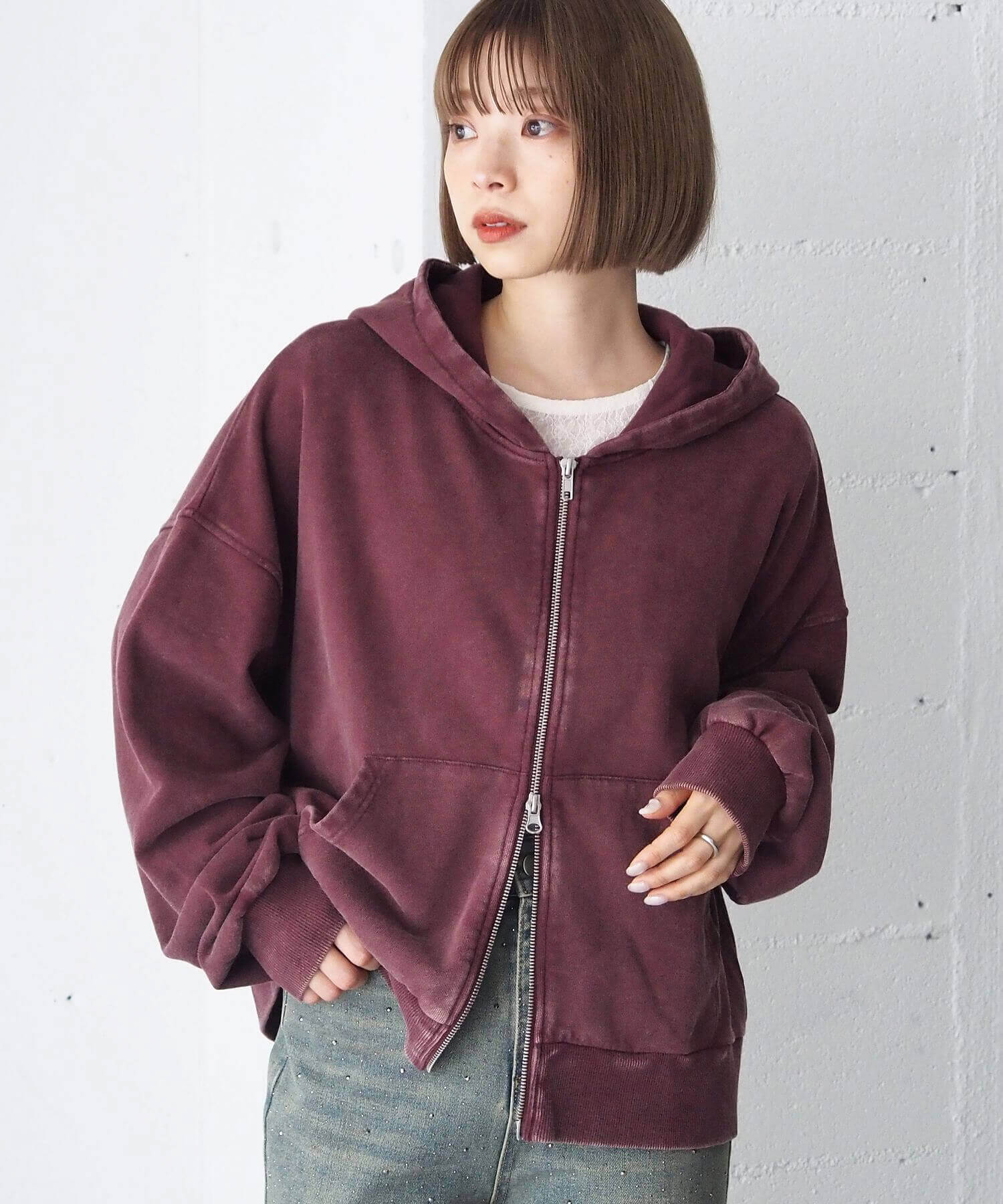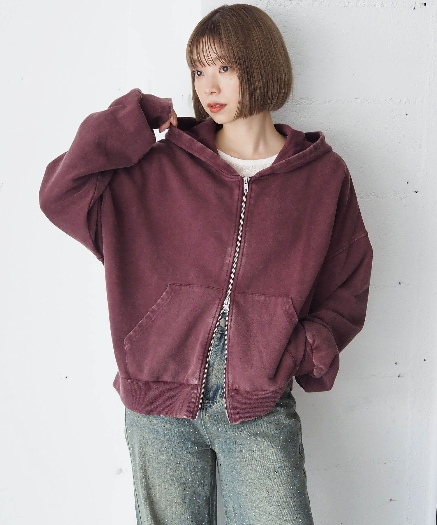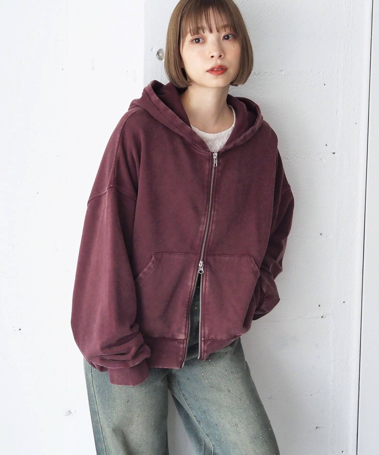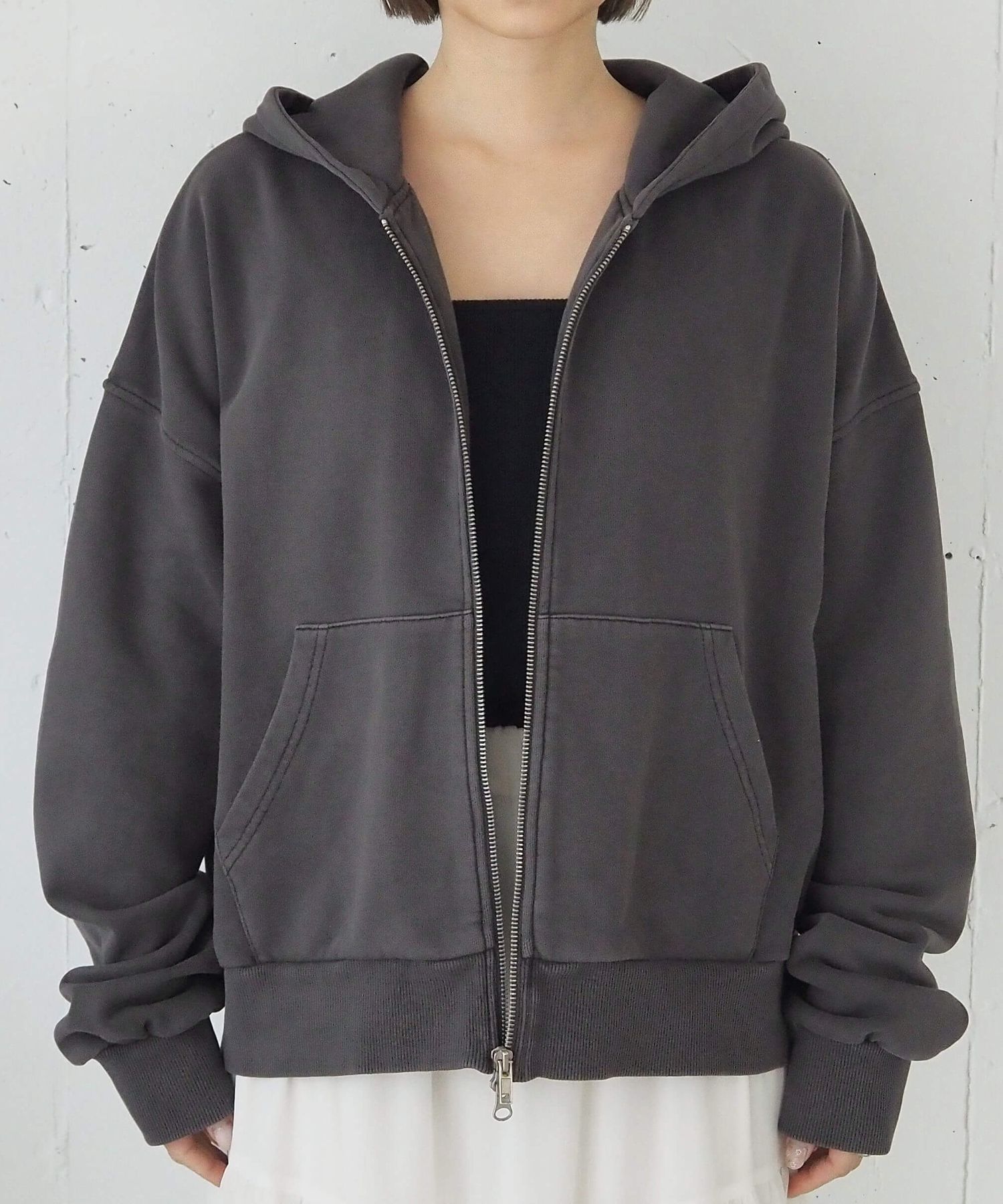 ・古着風のヴィンテージ加工が魅力のジップパーカーです。