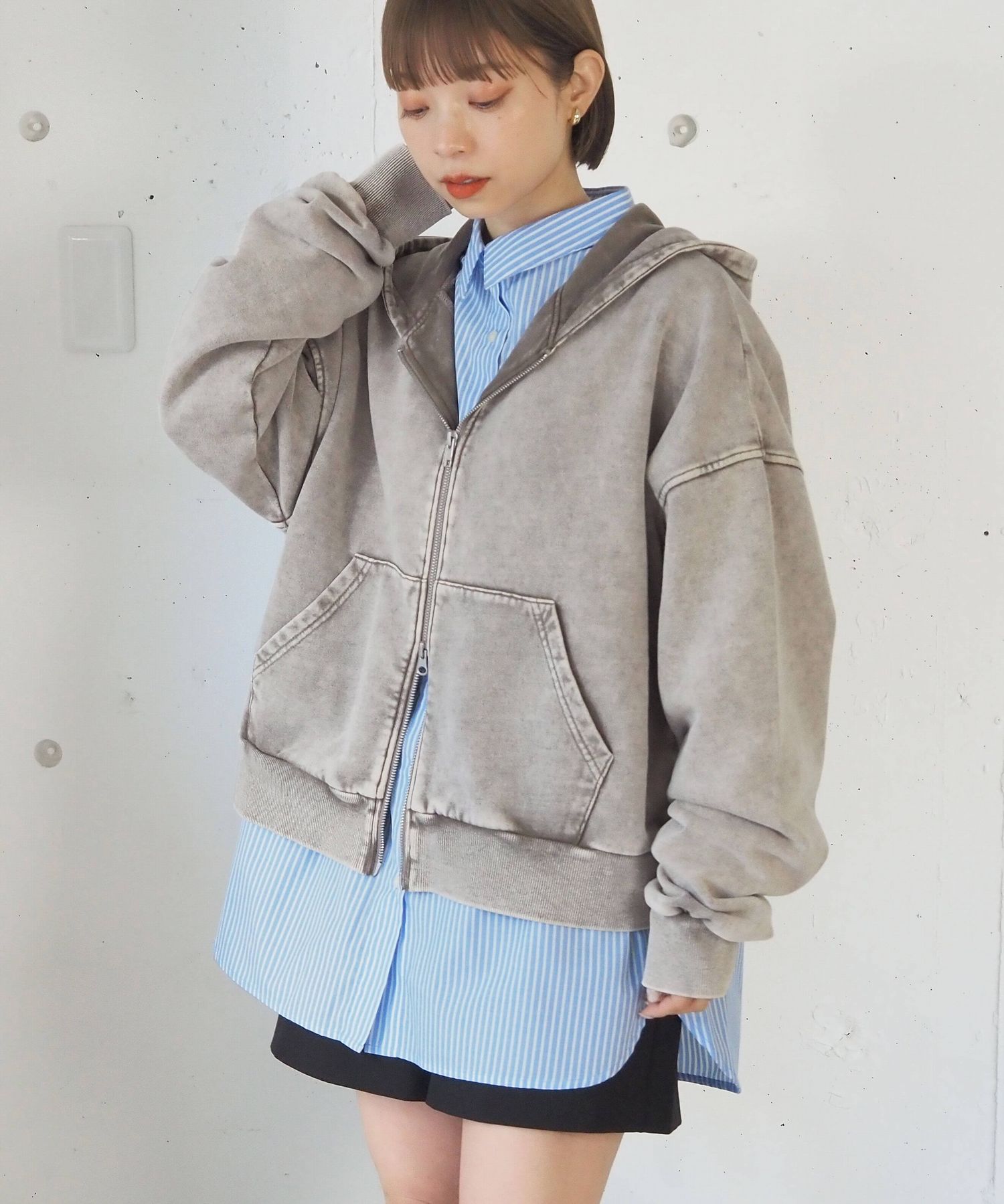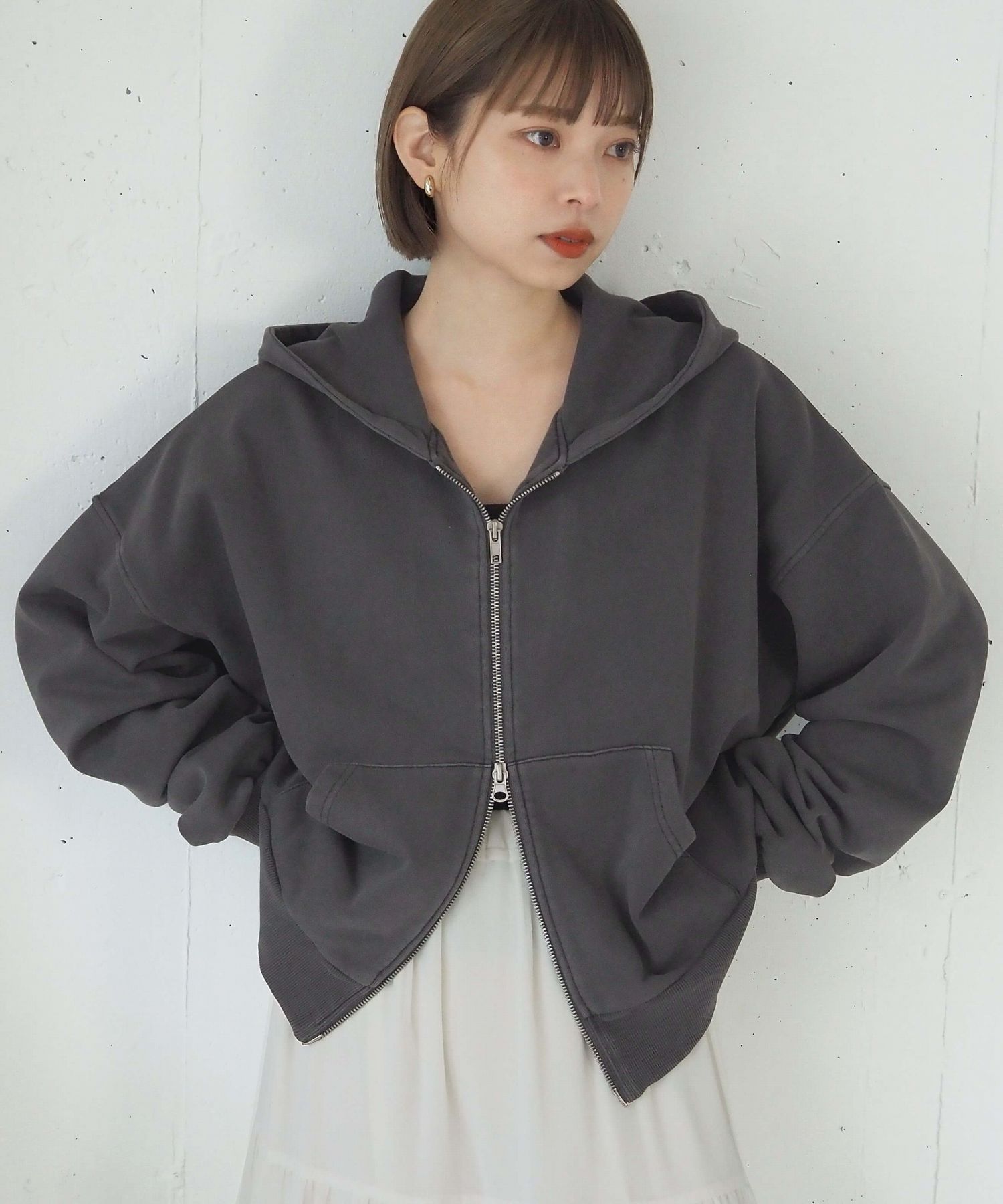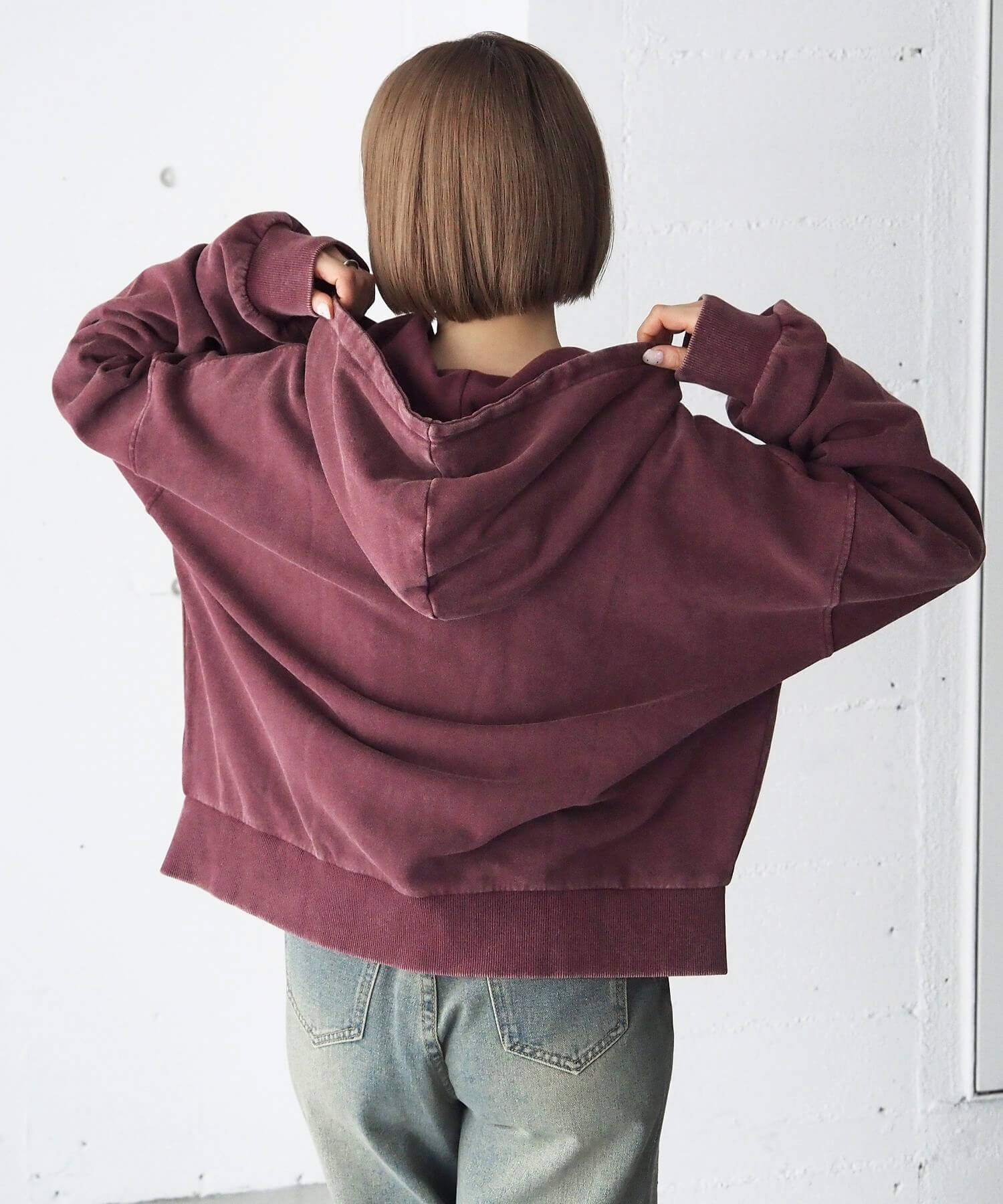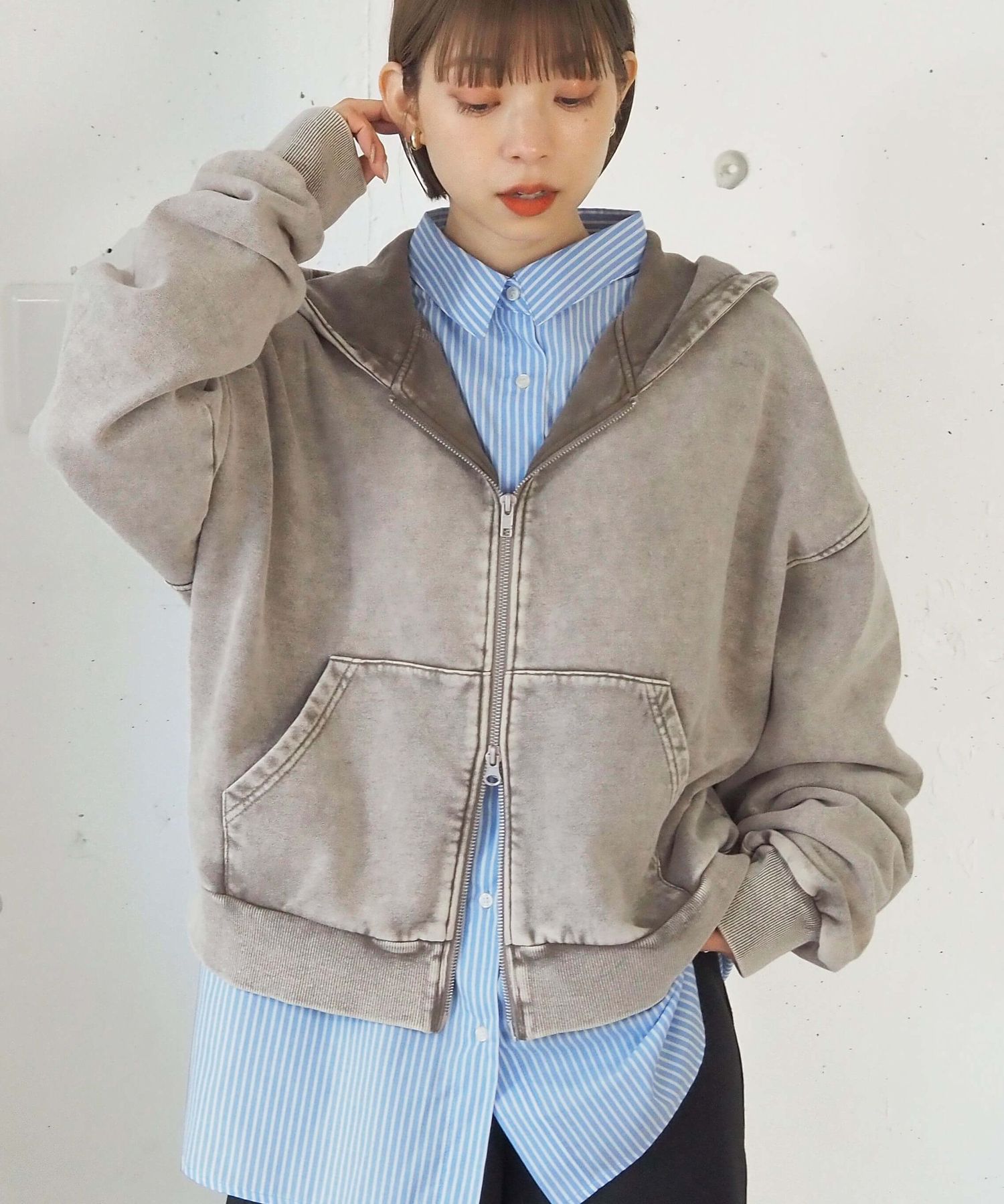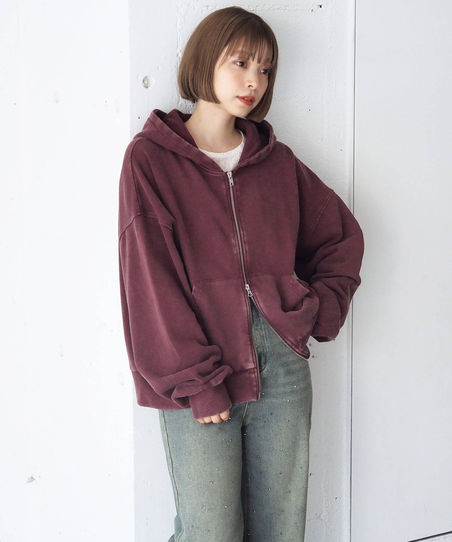 ・古着風のヴィンテージ加工が魅力のジップパーカーです。