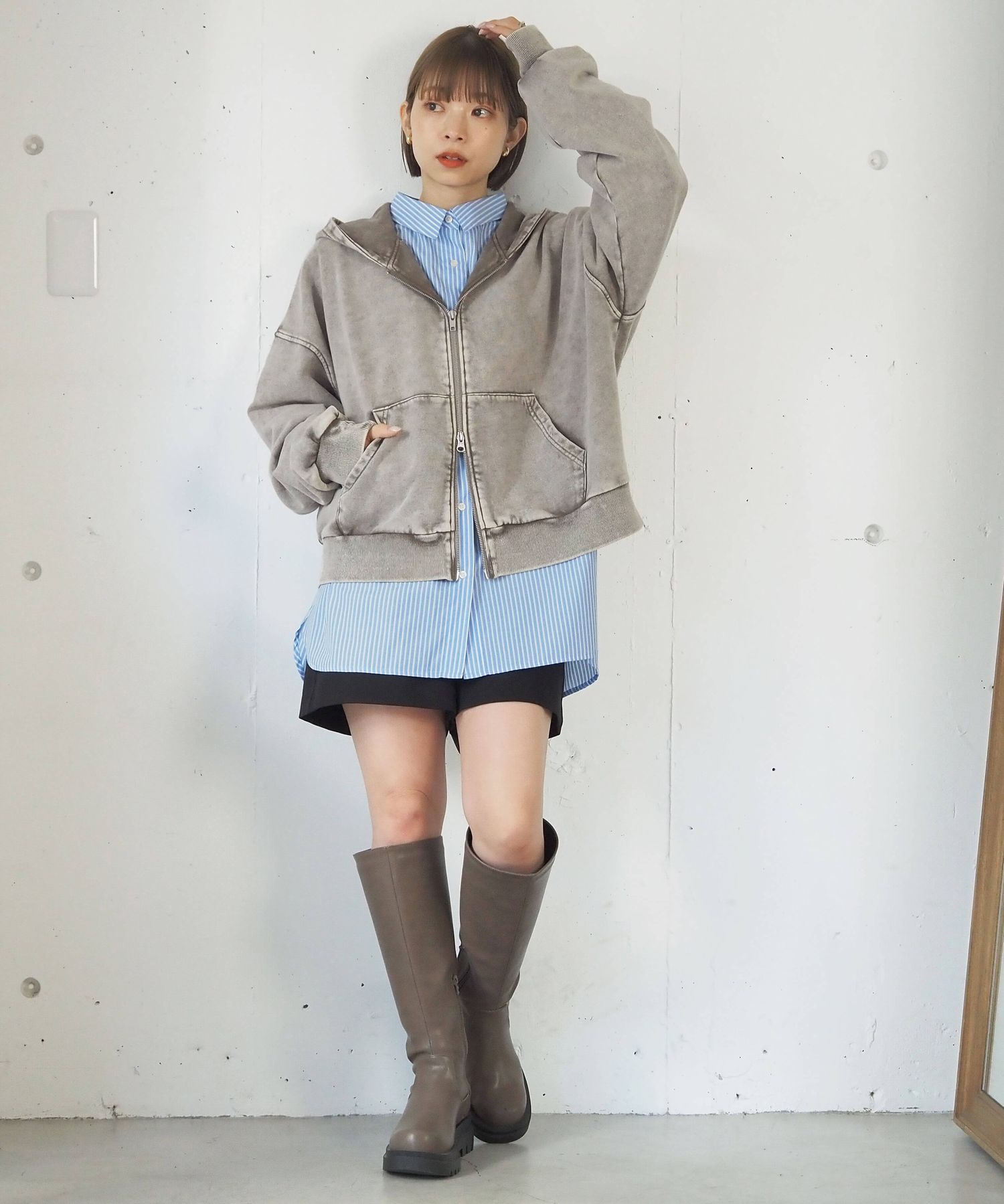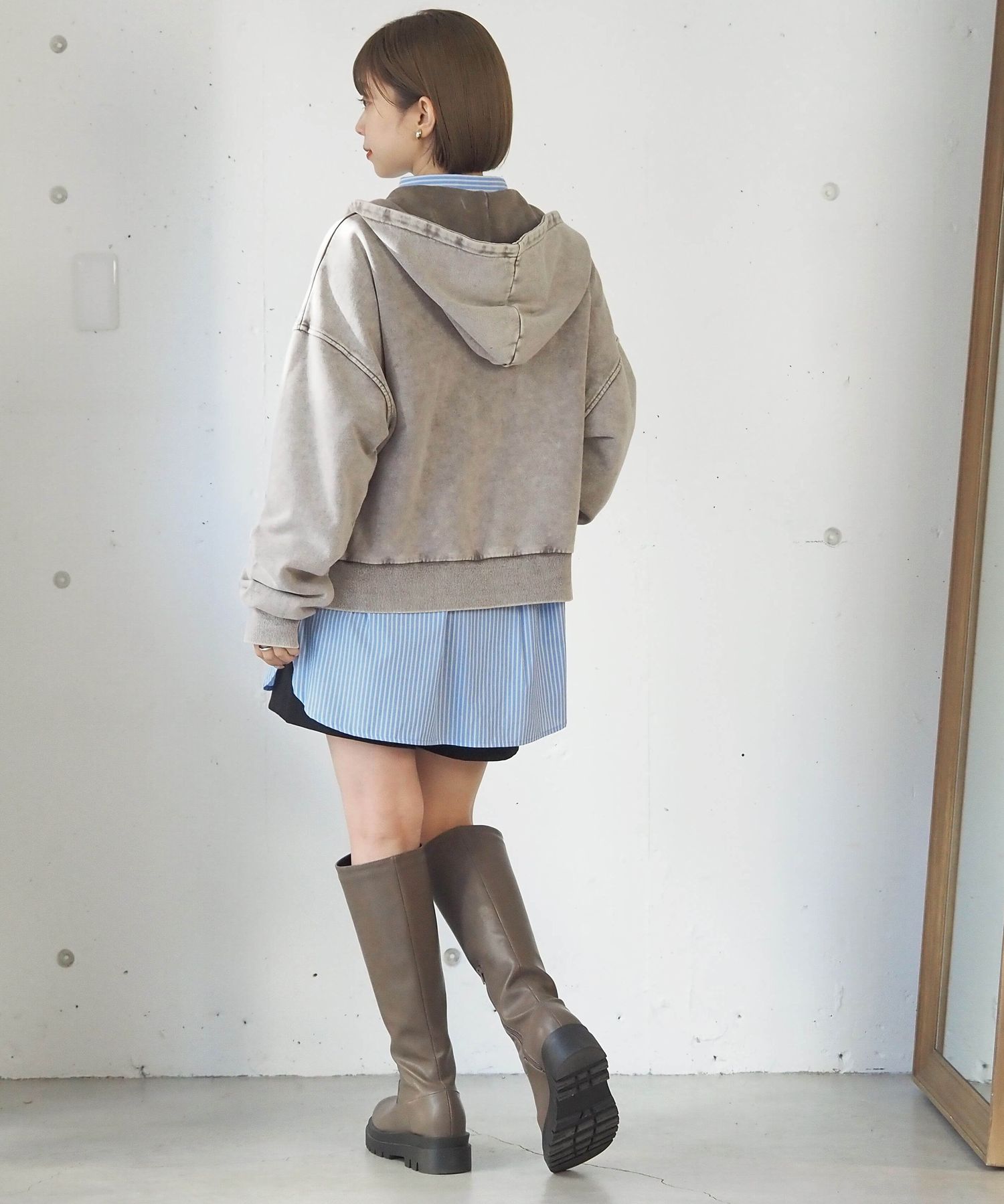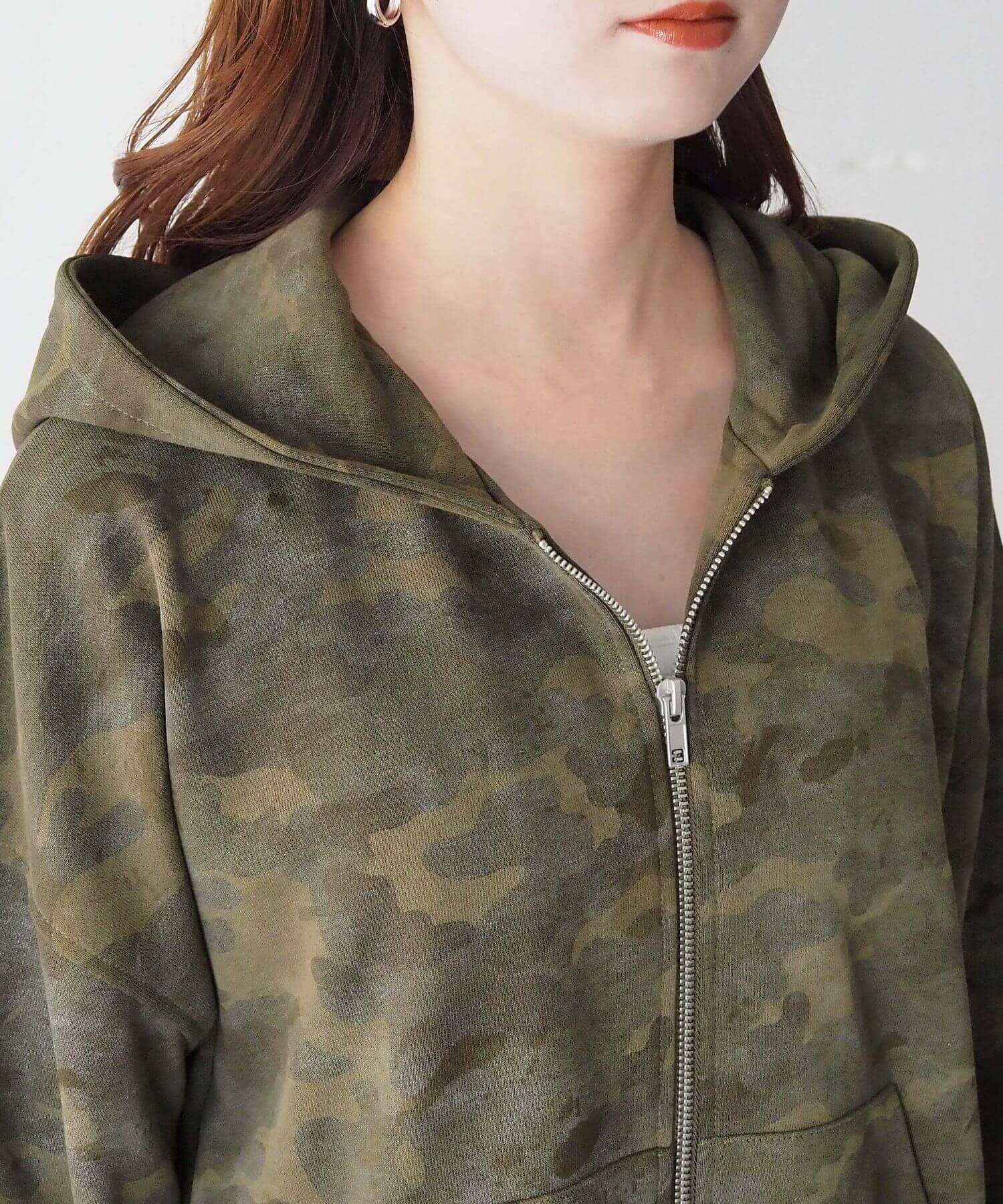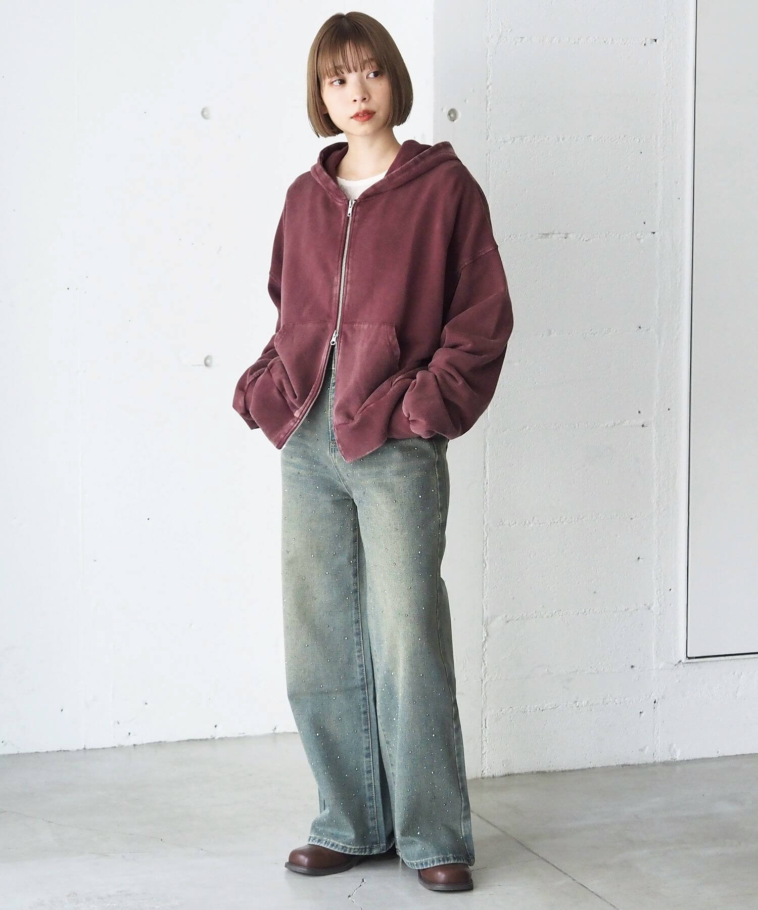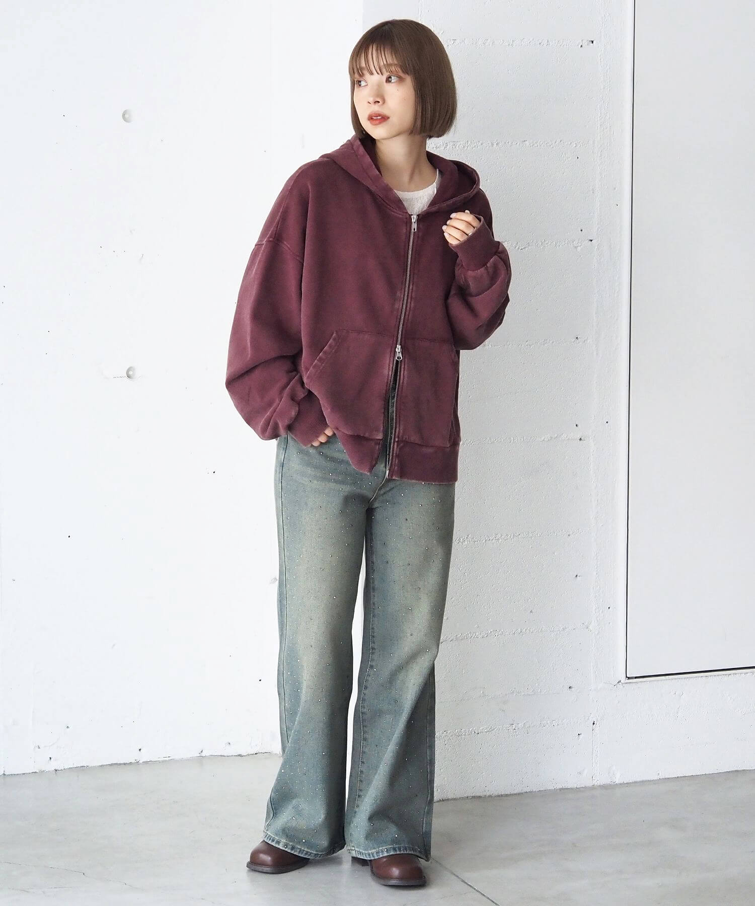 ・古着風のヴィンテージ加工が魅力のジップパーカーです。