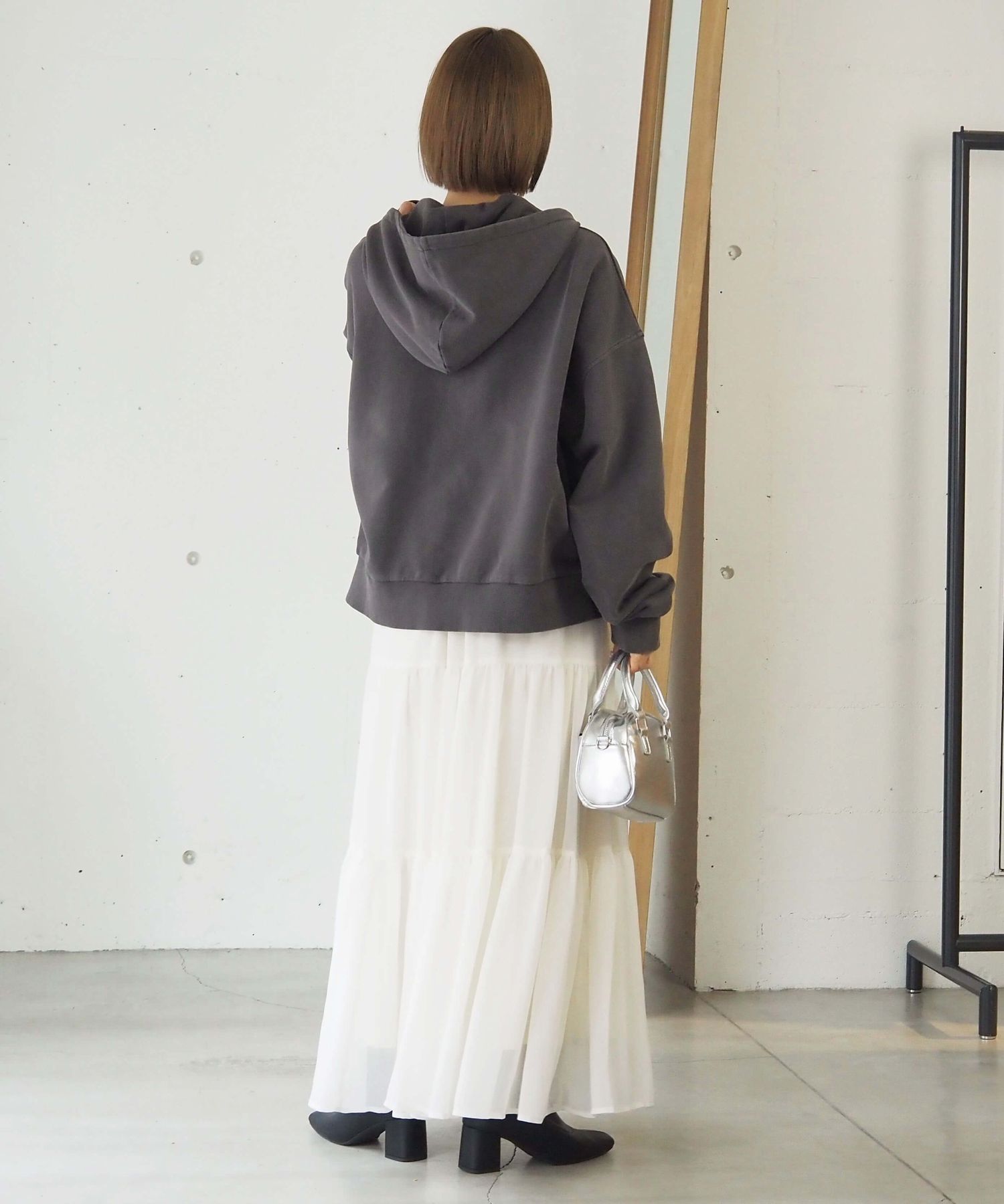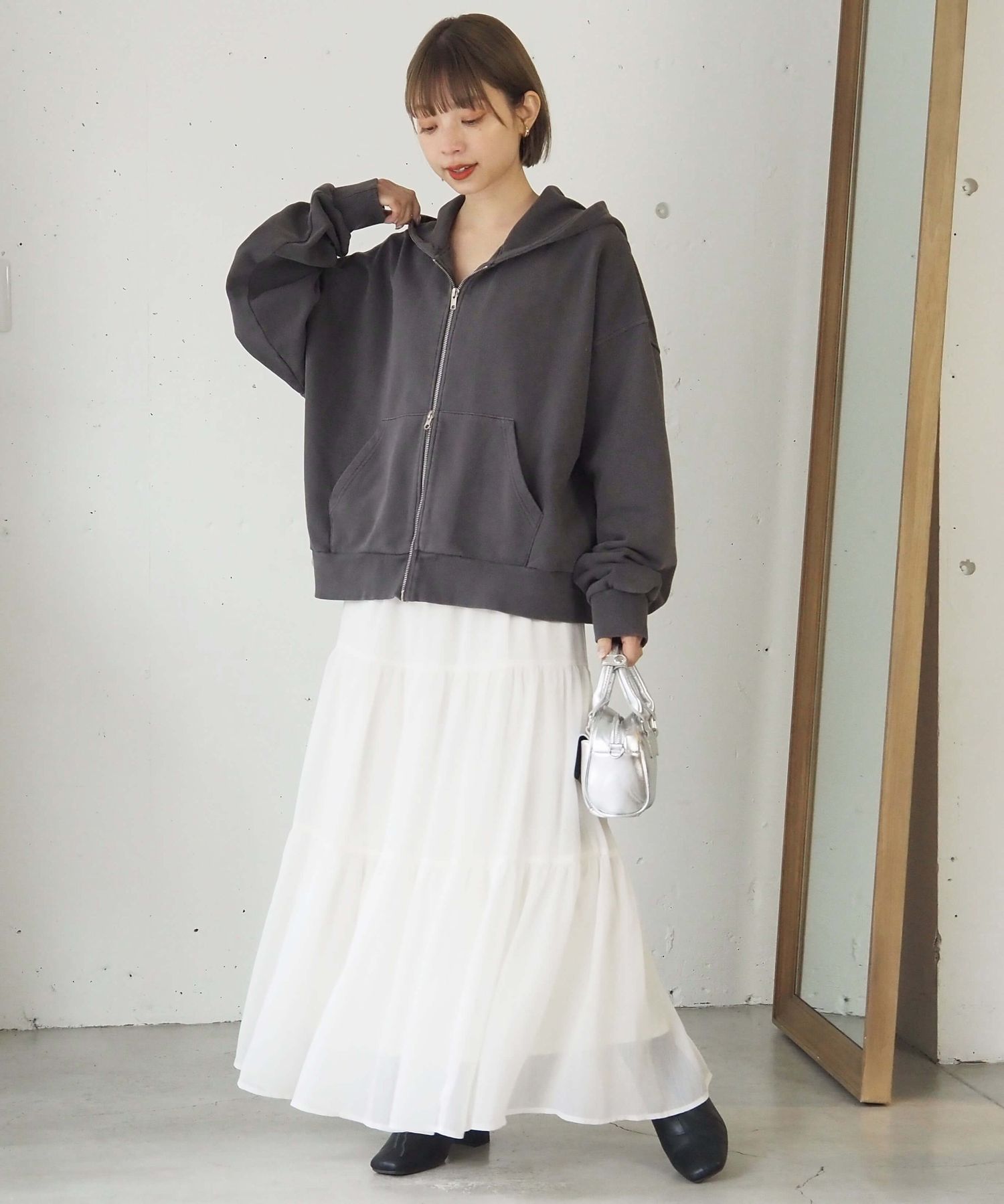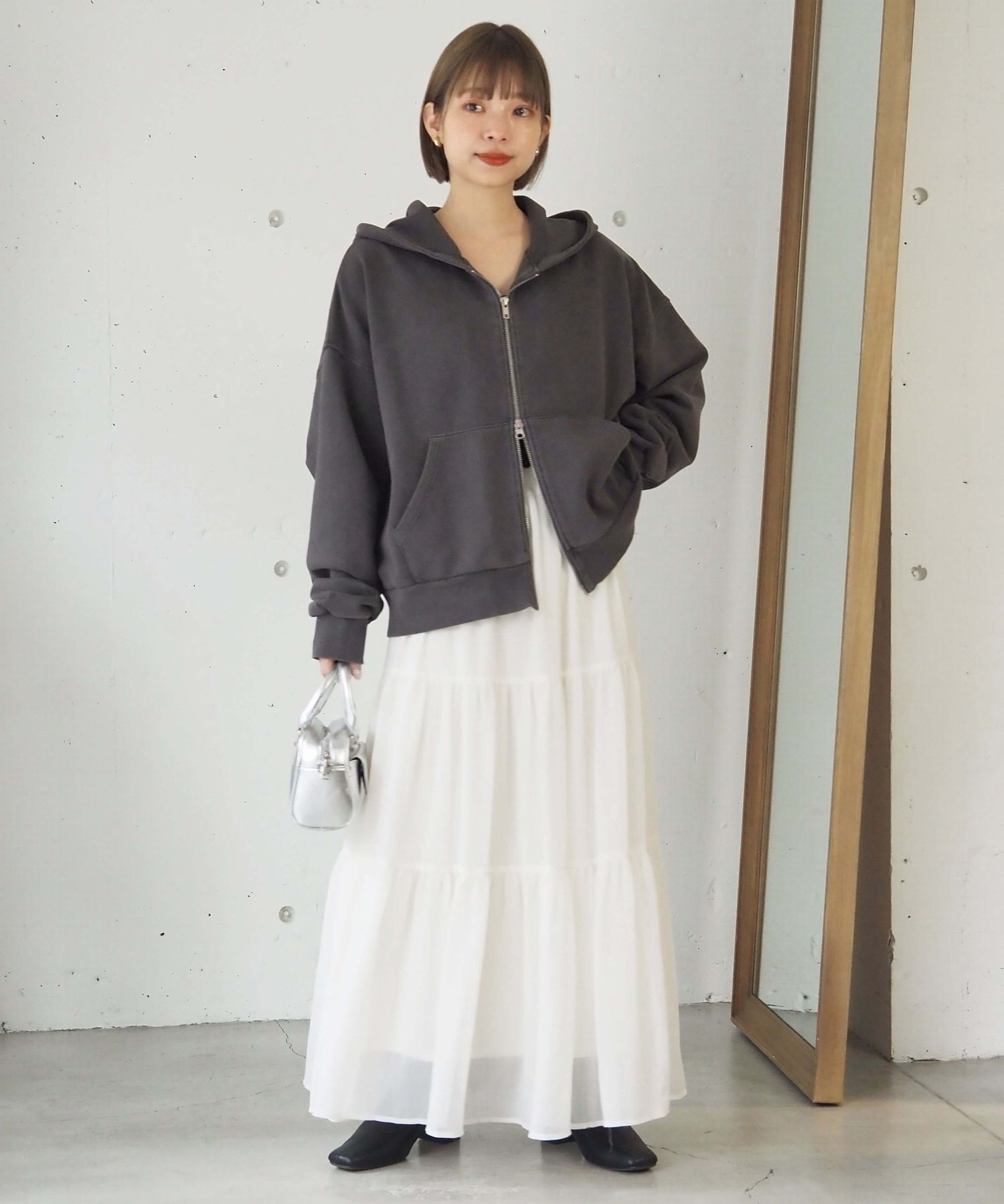・シフォンやレースなど、軽やかな素材のスカートで今っぽく。ダブルジップなのでロングスカートを好バランスに着こなせます。