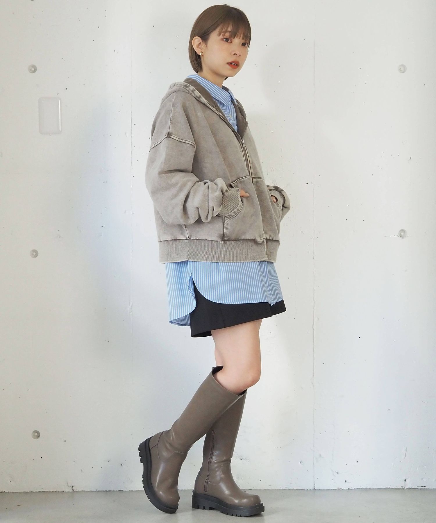 ・程よくゆったりとしたサイズ感でレイヤードもしやすく、ボトムスを選ばない丈もポイント。