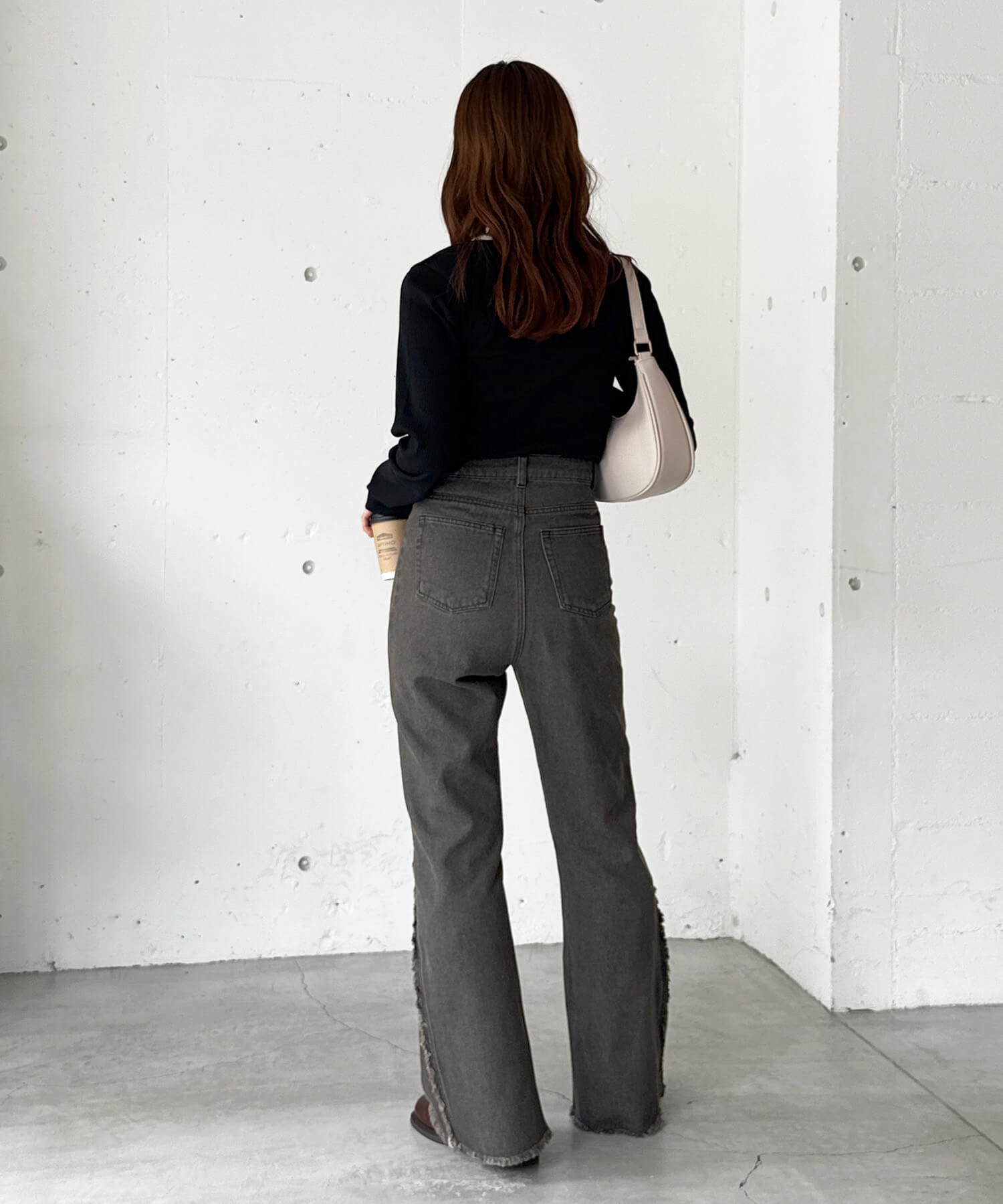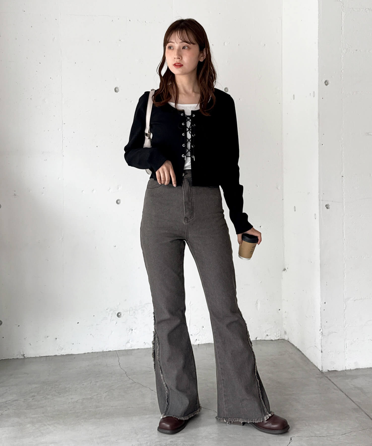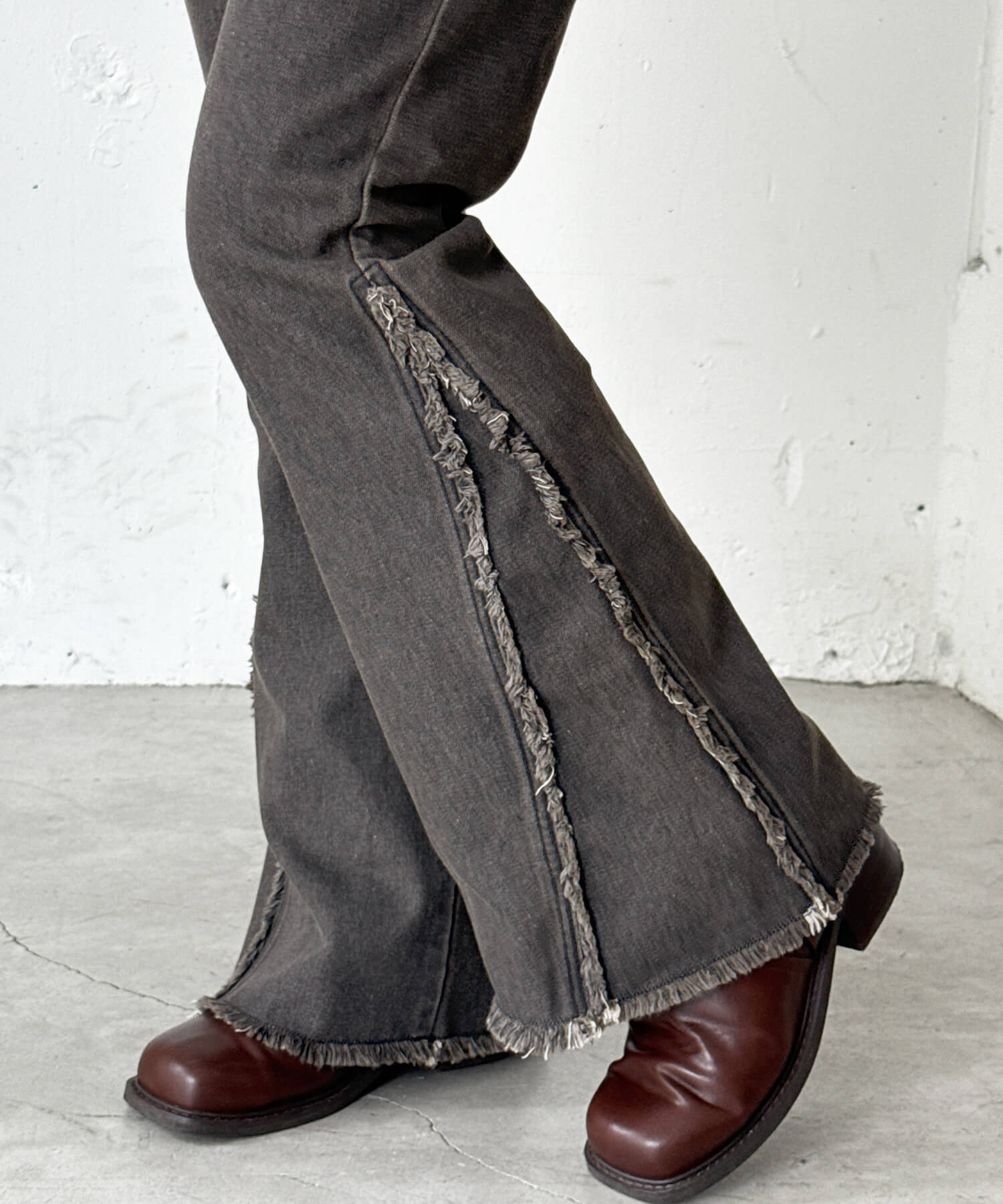 ・縦ラインを強調する切り替えと美脚効果が狙えるフレアシルエットで、履くだけで旬の着こなしが叶います。