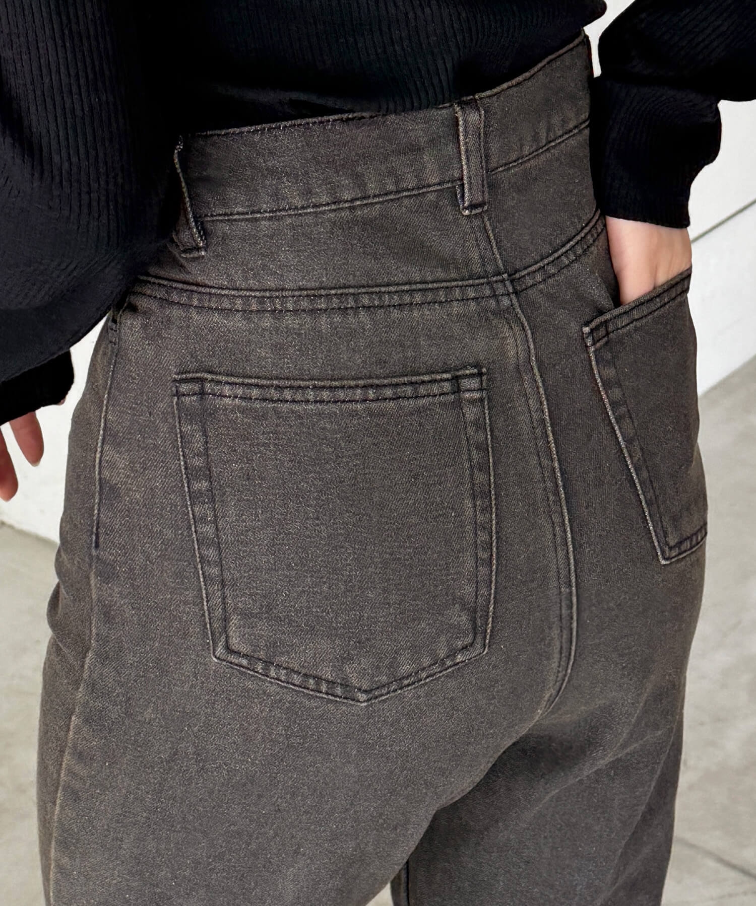 ・ハイウェストなので、ショート丈やコンパクトなトップスとのコーディネートで更に脚長効果が狙えます♪