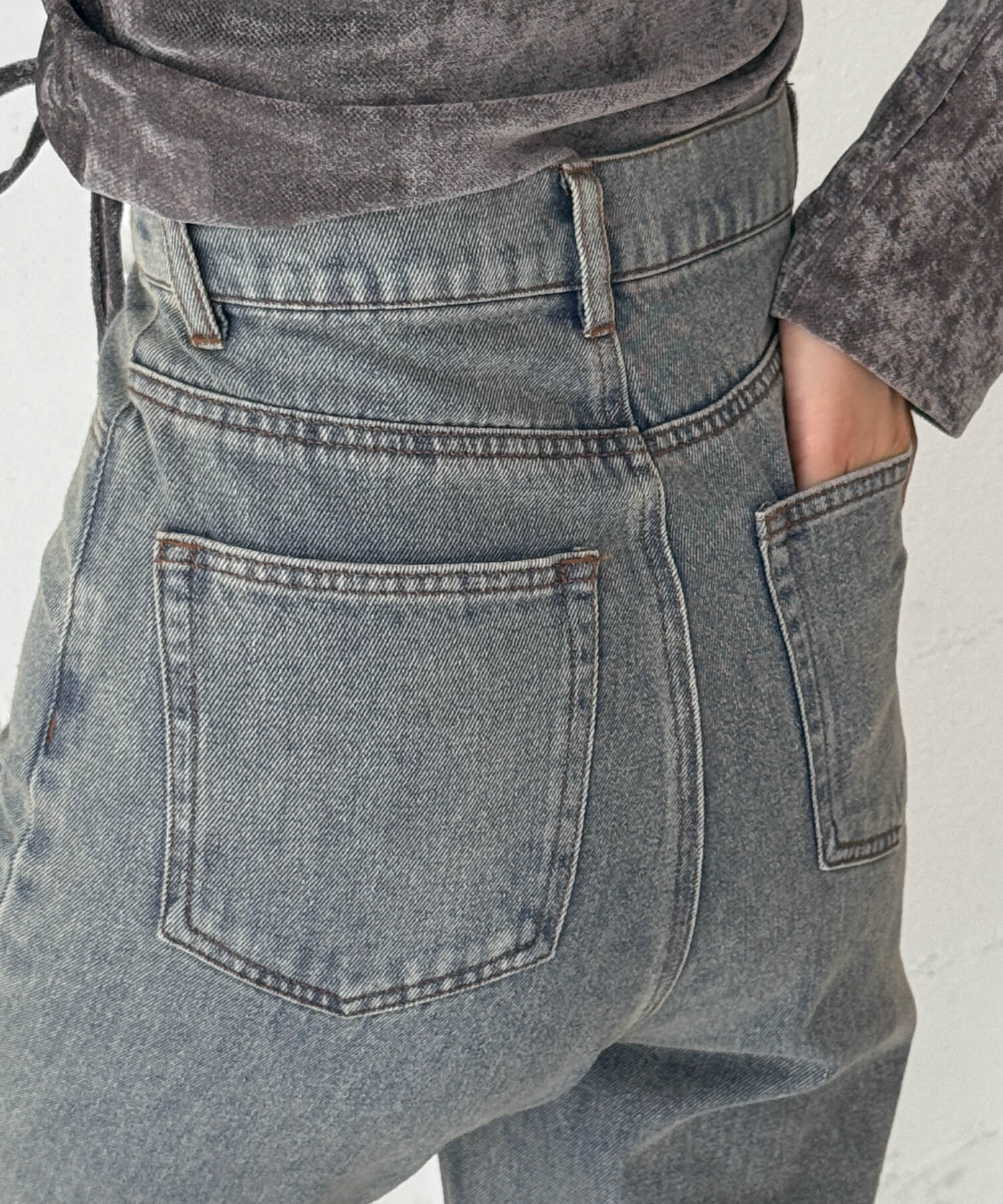 ・柔らかいデニム生地なので、旬のボトムレイヤードにも最適です。