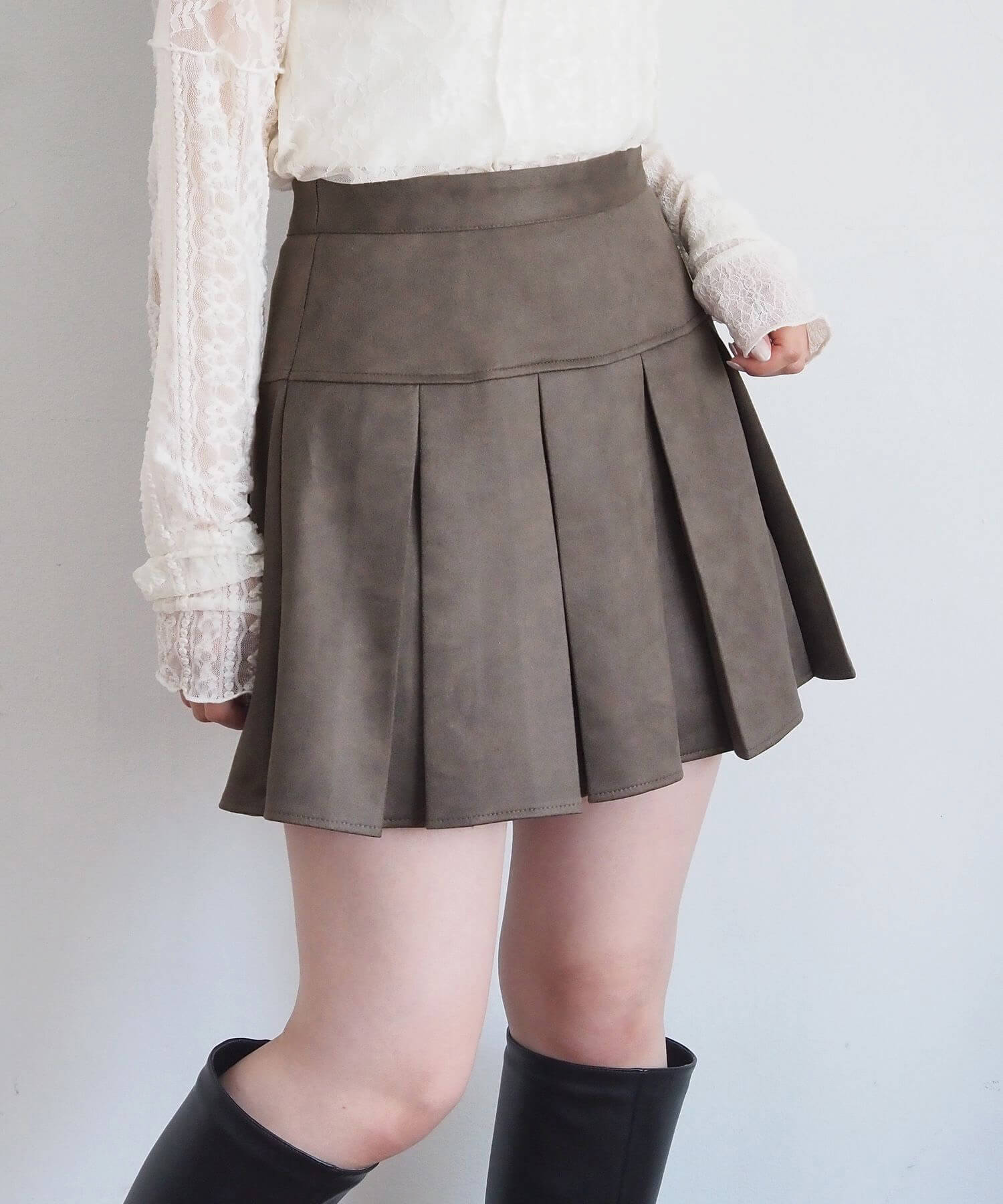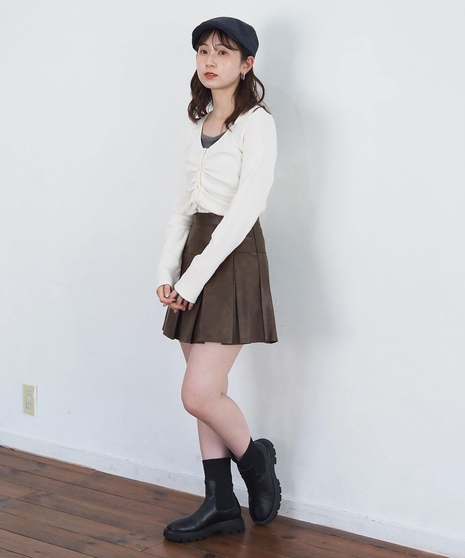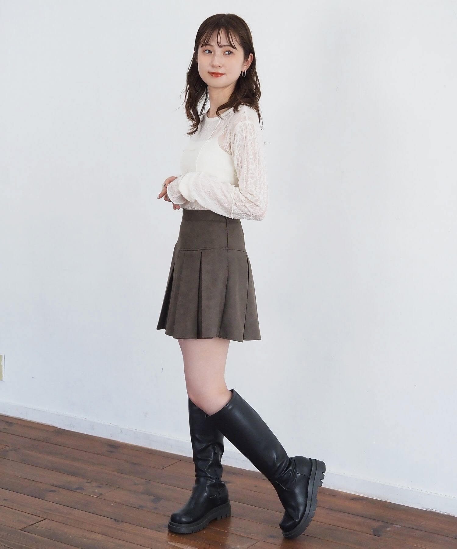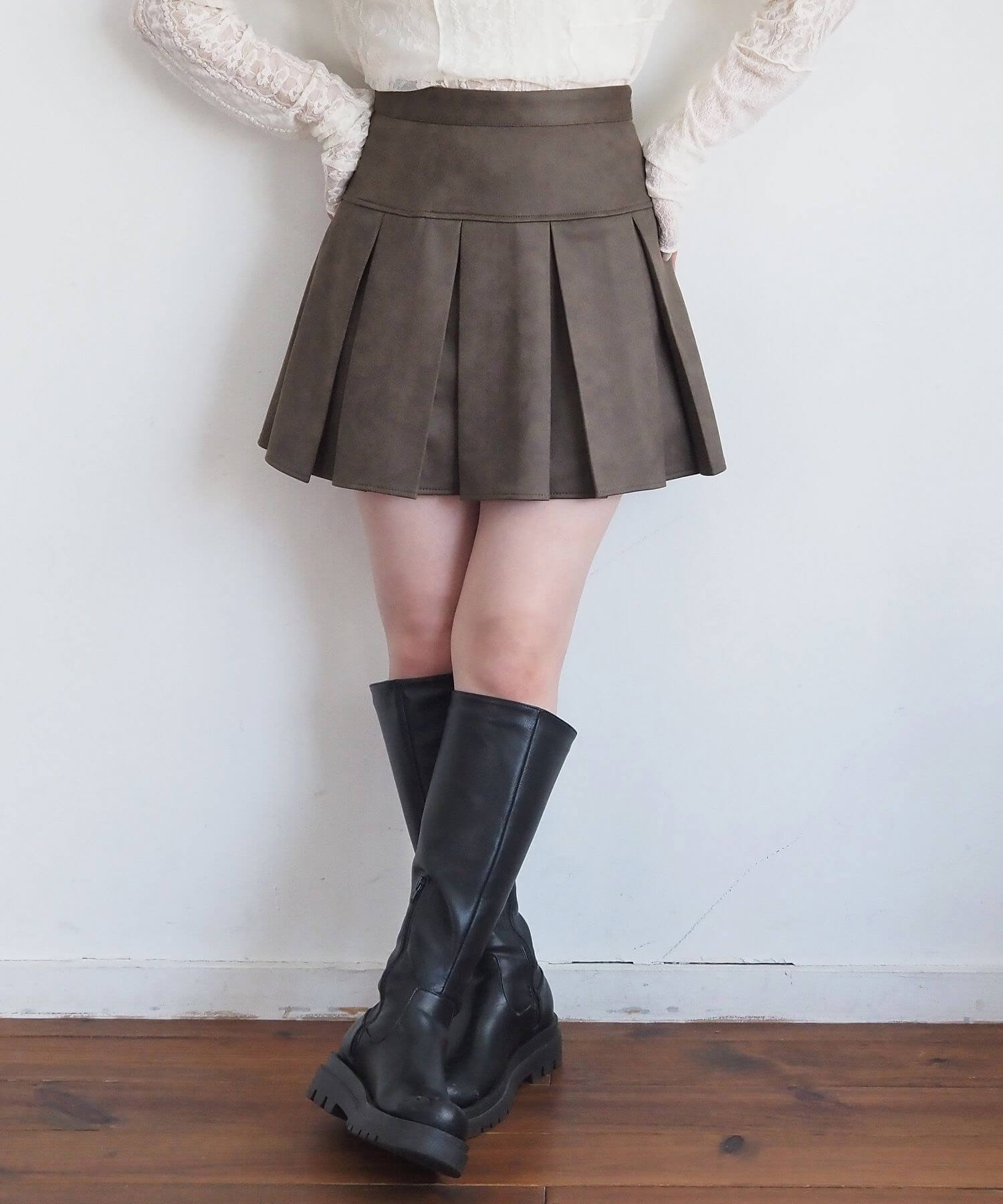 ・オーバーサイズのニットやパーカーからプリーツをチラ見せであざと可愛いコーディネートにも最適です。