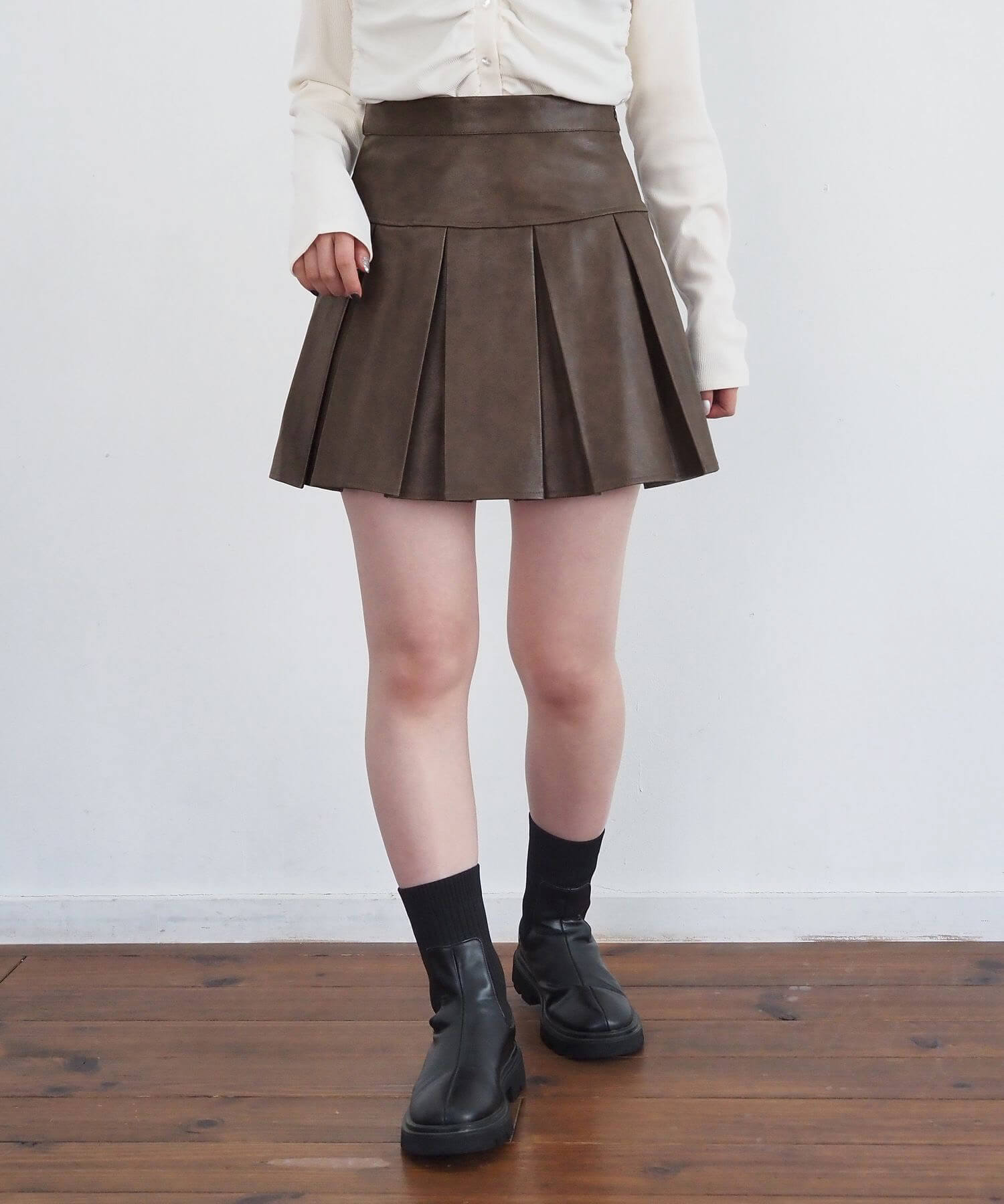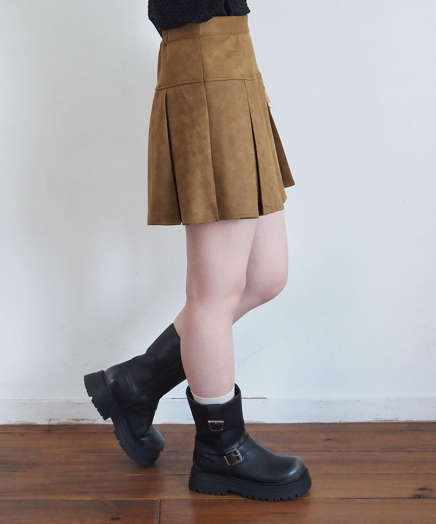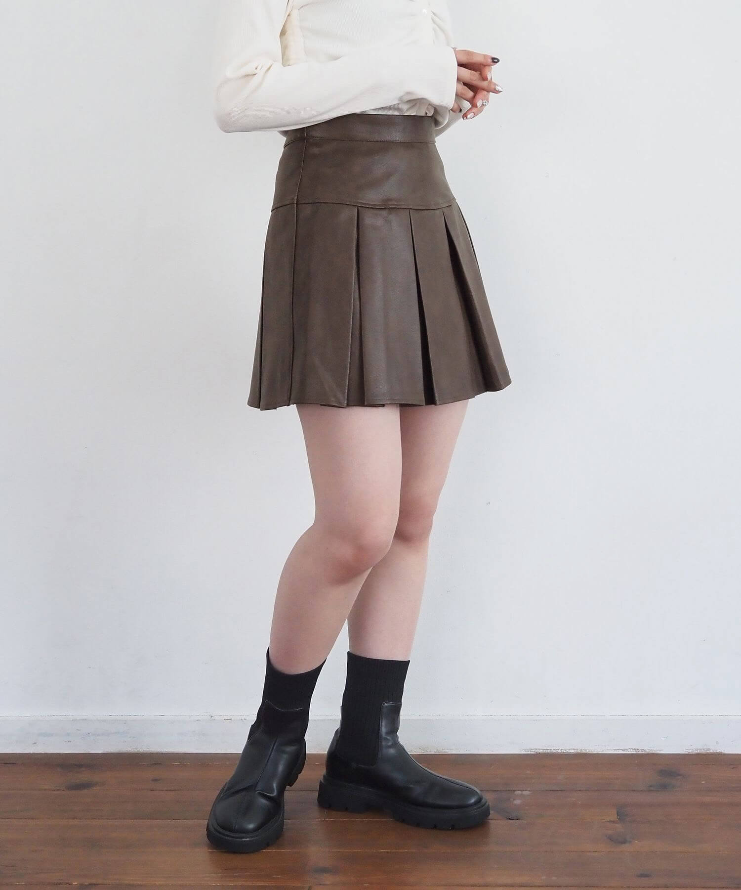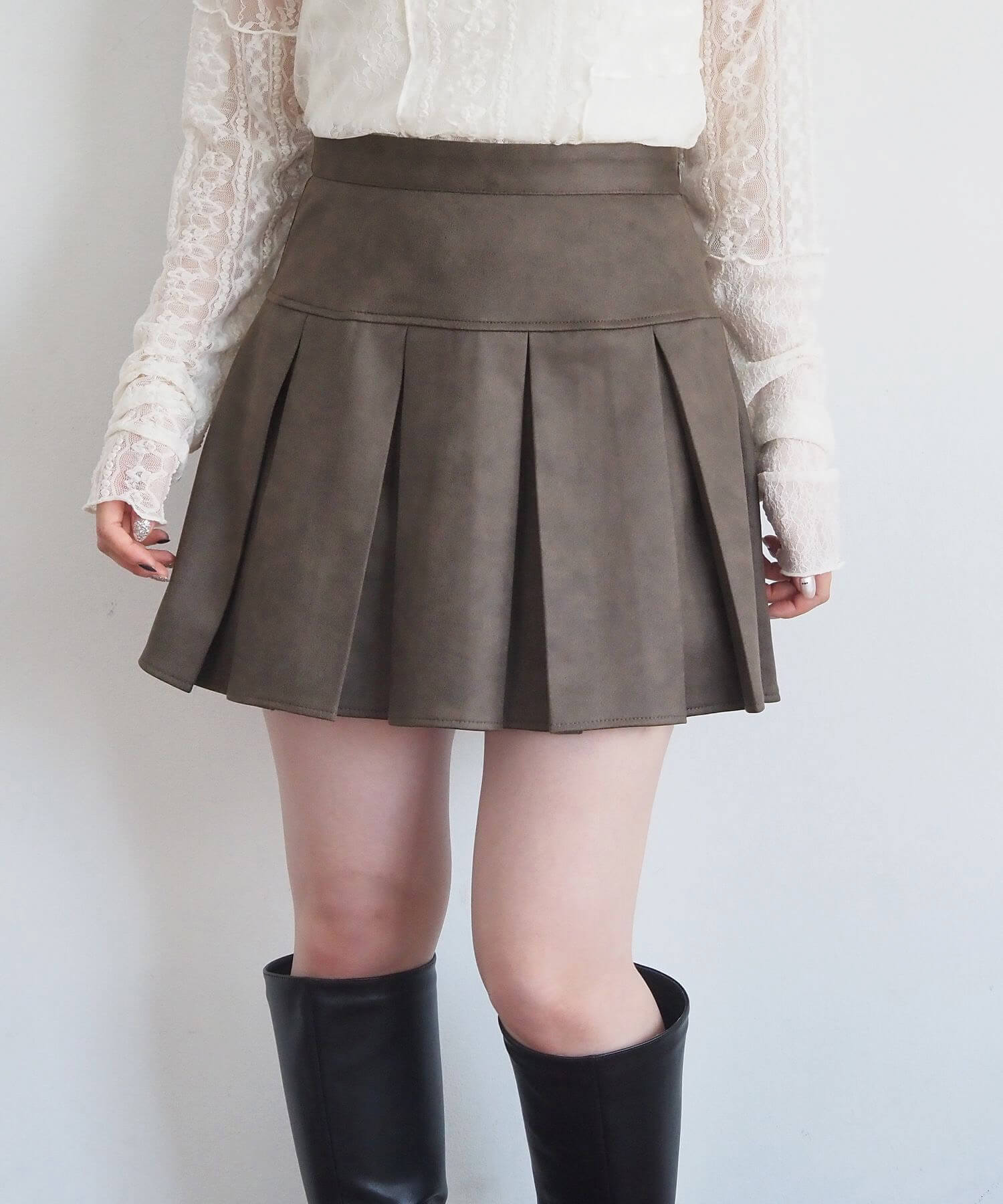 ・オーバーサイズのニットやパーカーからプリーツをチラ見せであざと可愛いコーディネートにも最適です。