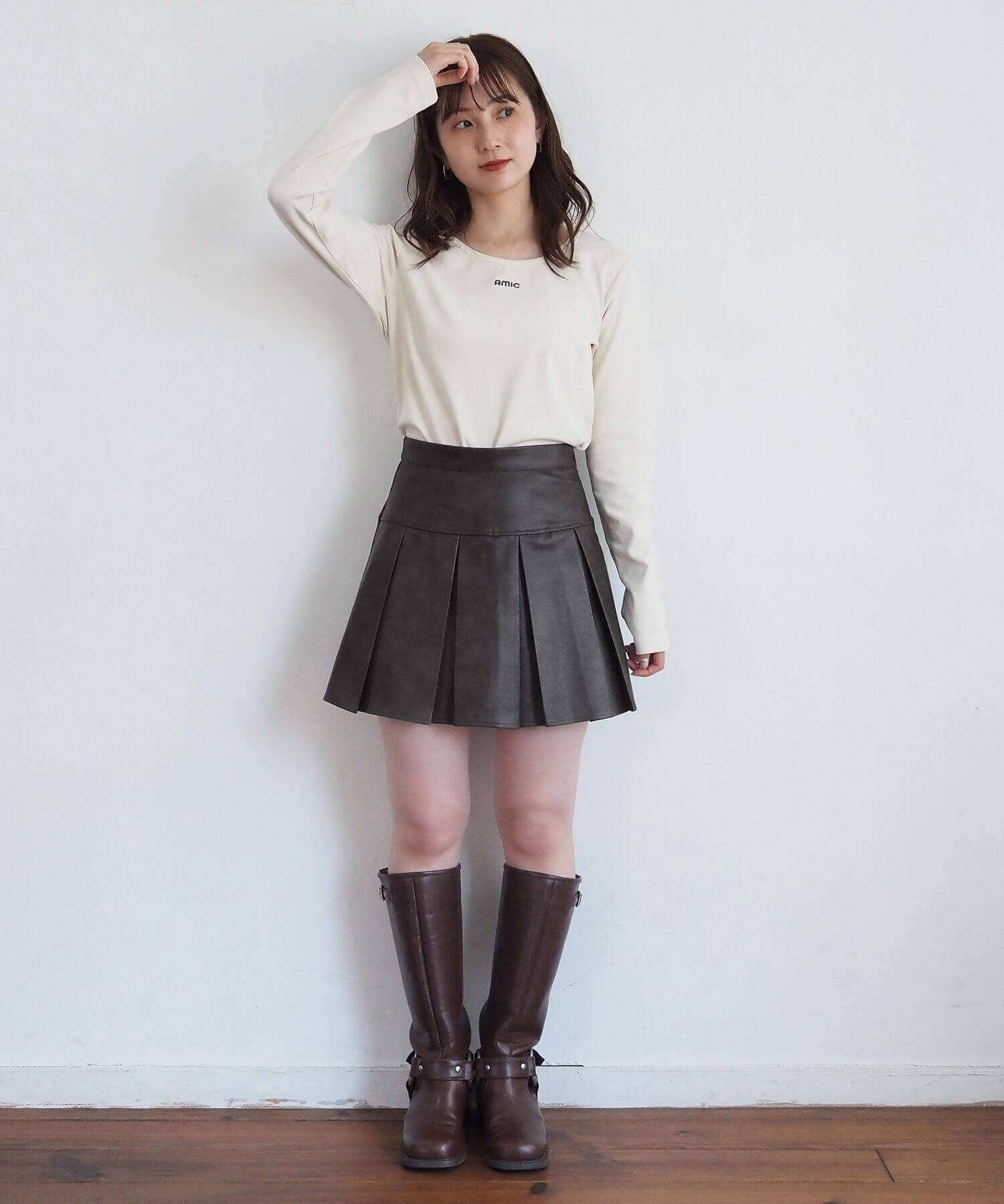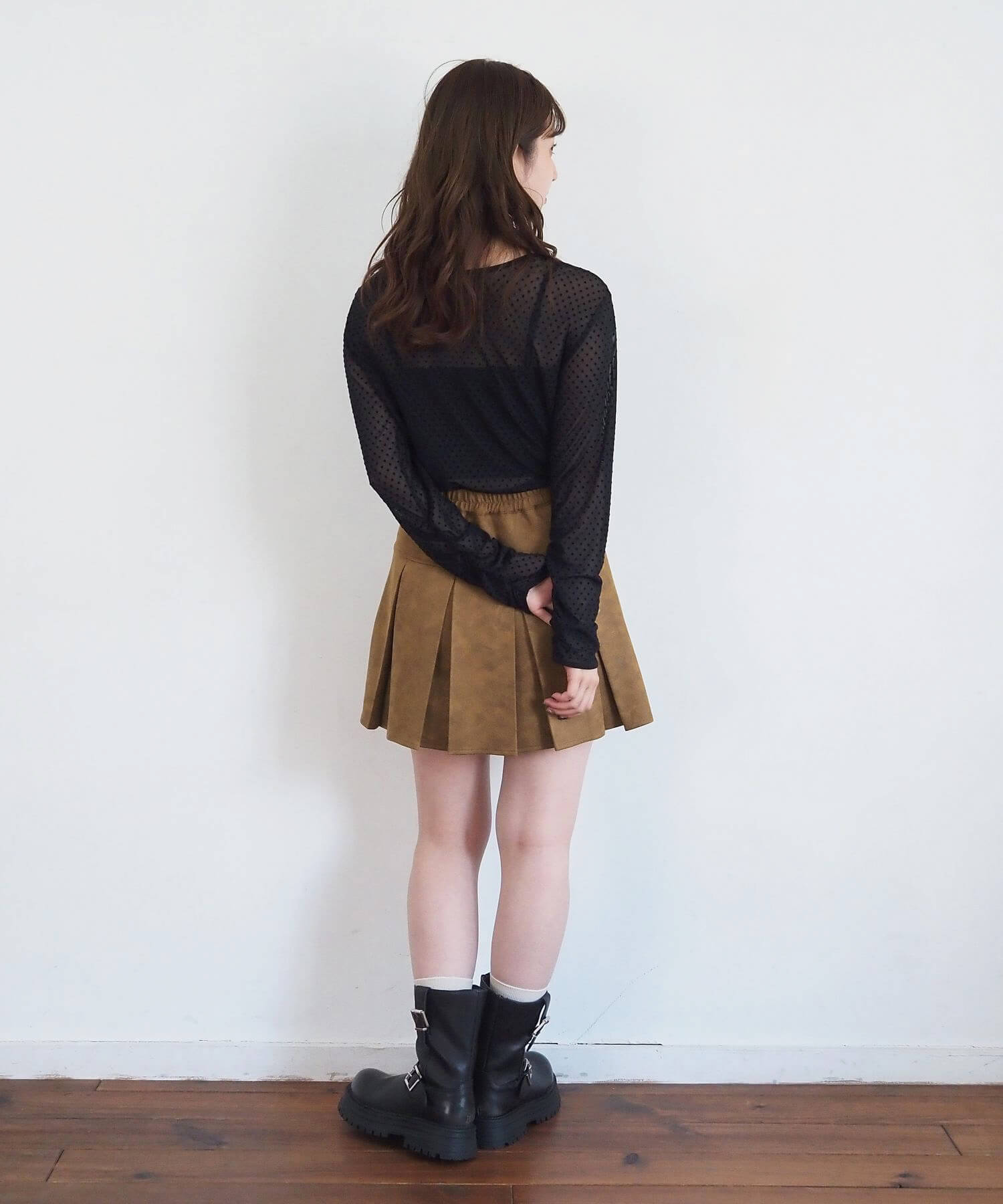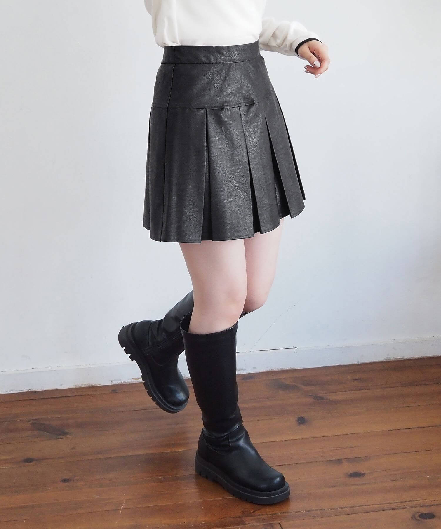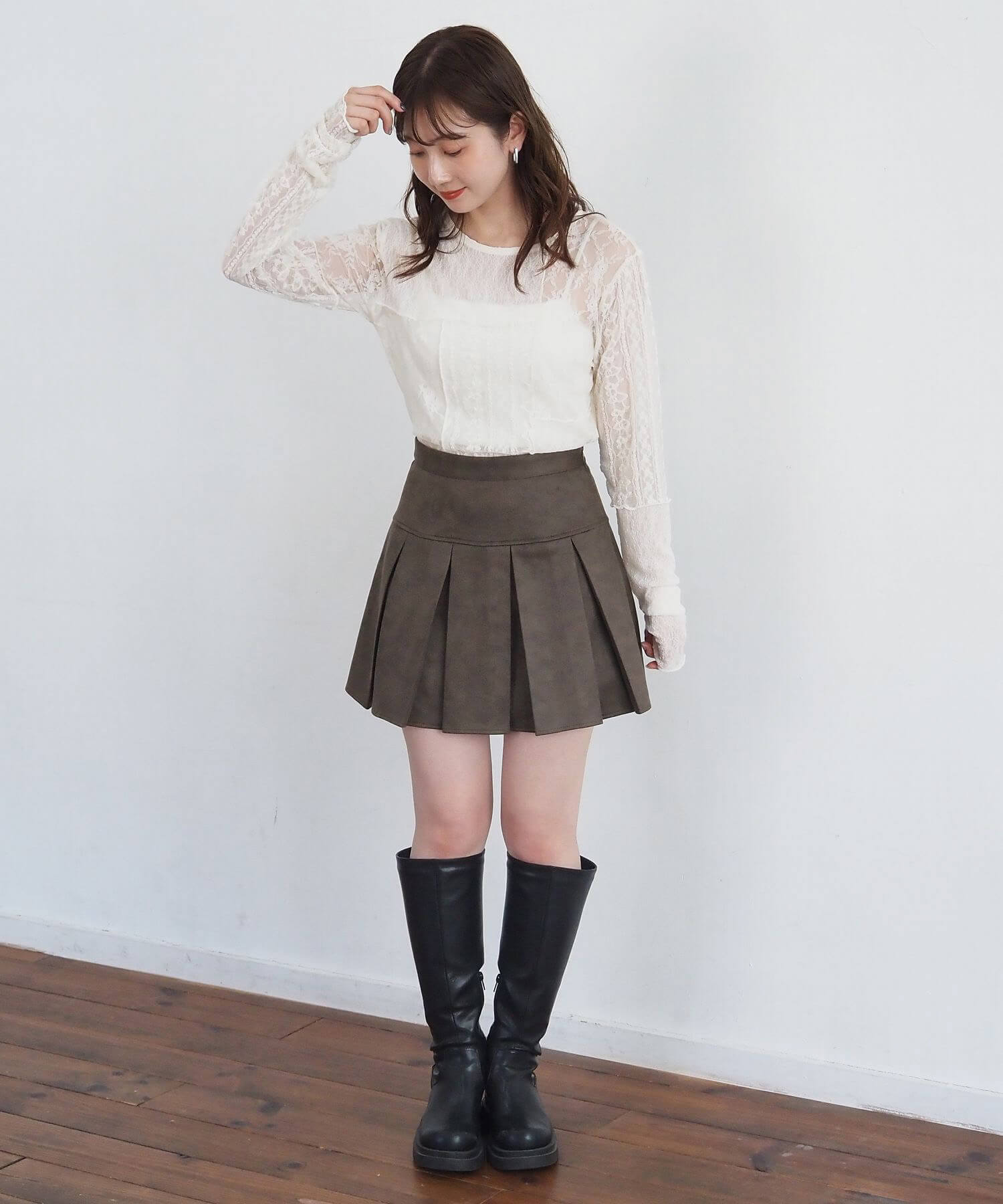 ・オーバーサイズのニットやパーカーからプリーツをチラ見せであざと可愛いコーディネートにも最適です。