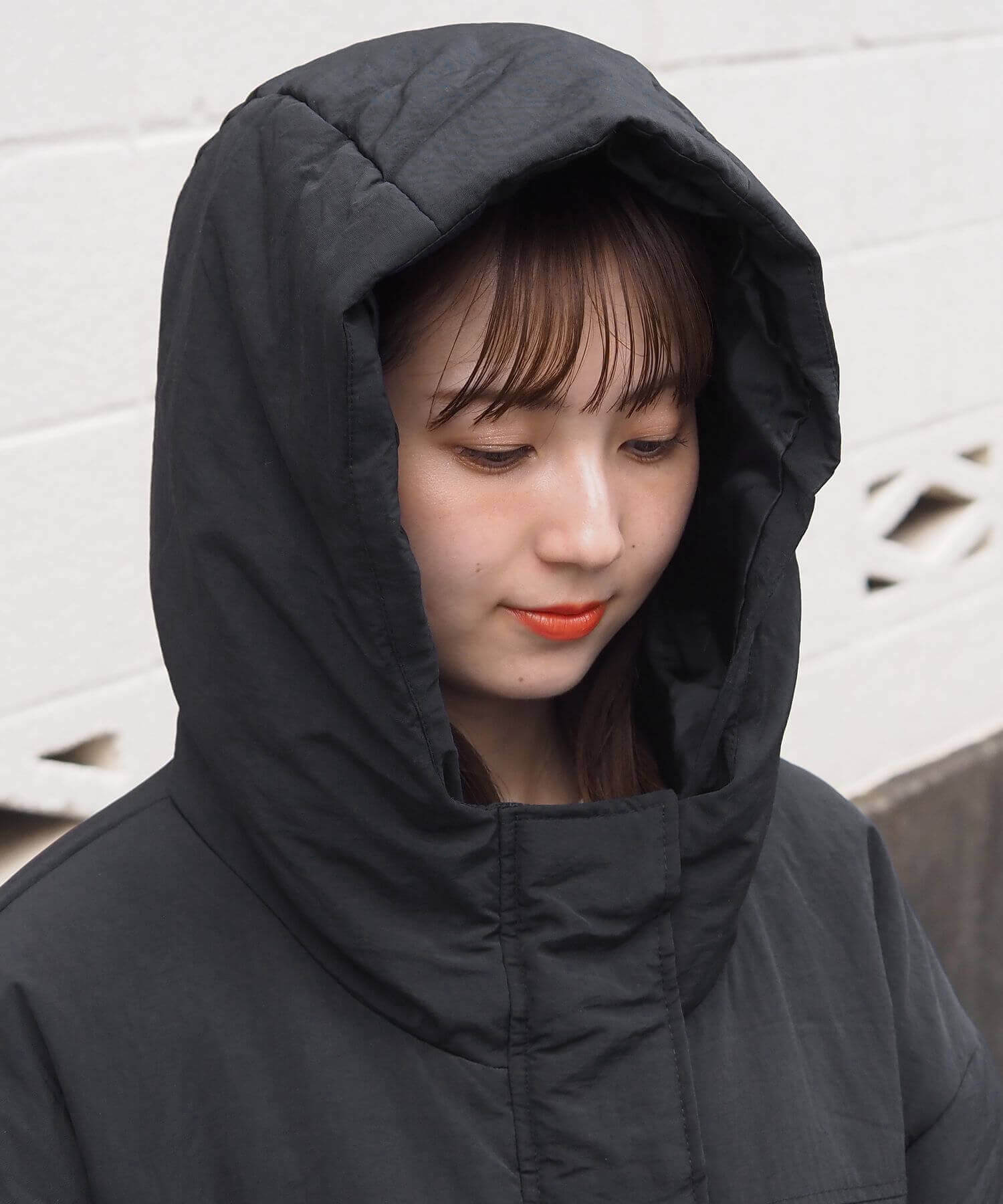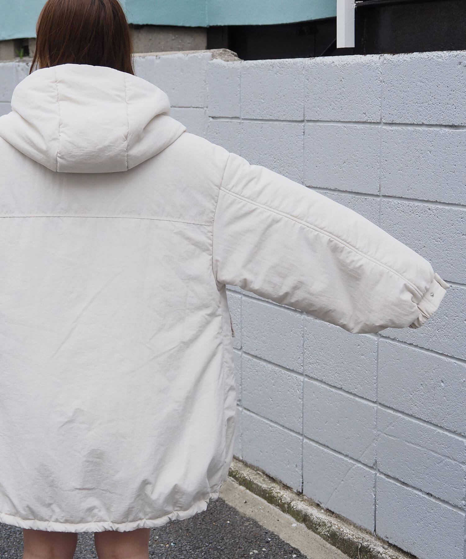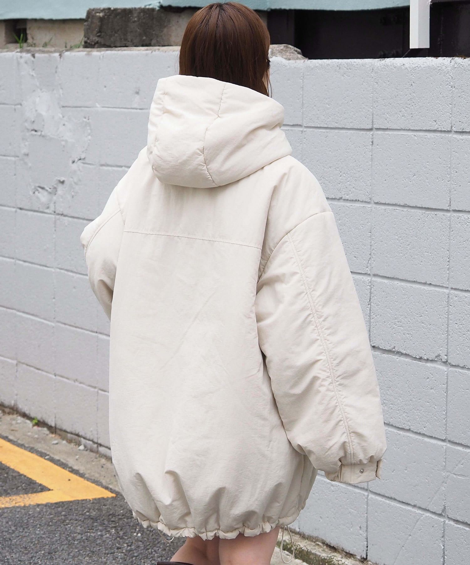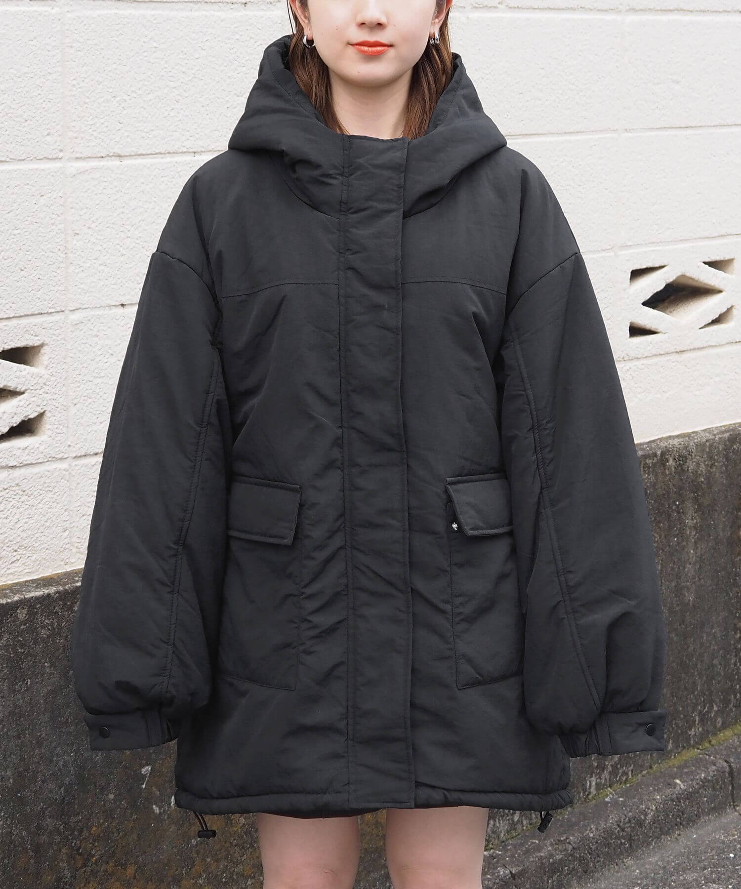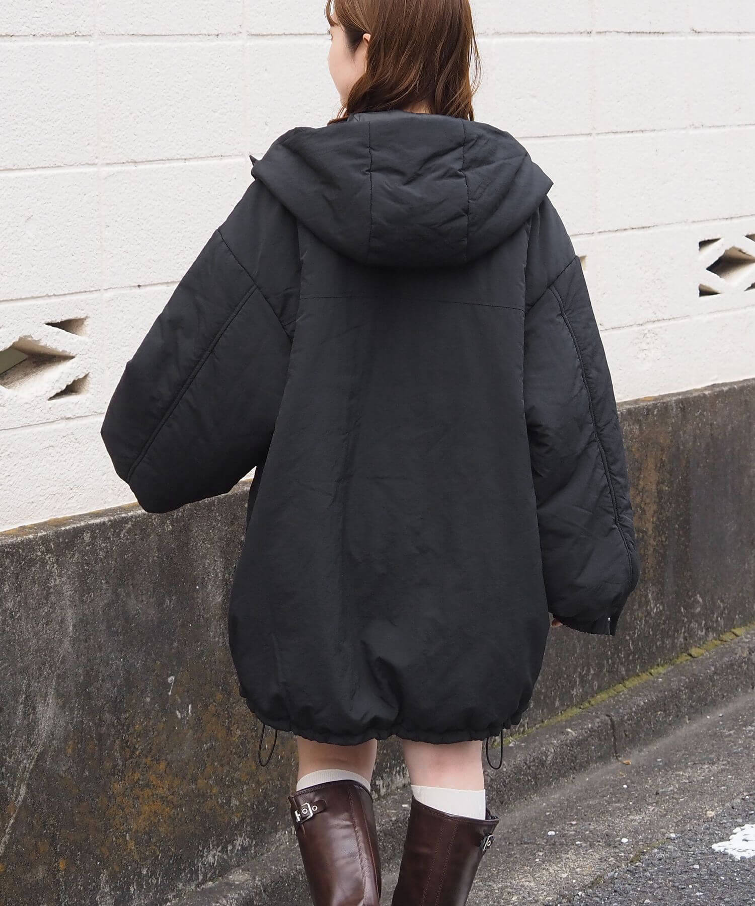 ・ビッグシルエットが魅力のフード付きブルゾンです。