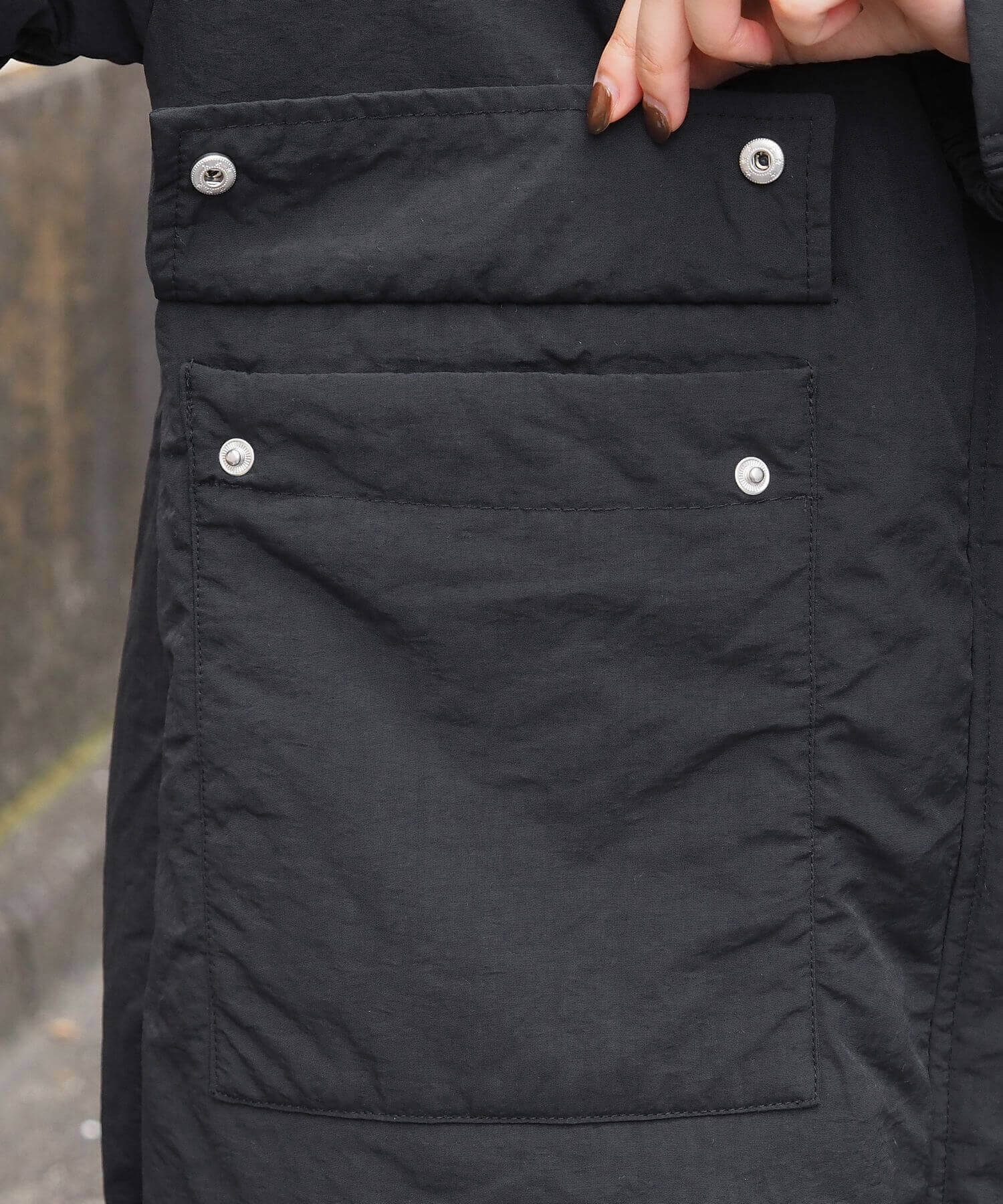 ・ロングスカートで大人っぽいコーディネートも◎落ち着いた印象のナイロン生地がキレイ目にもマッチします。