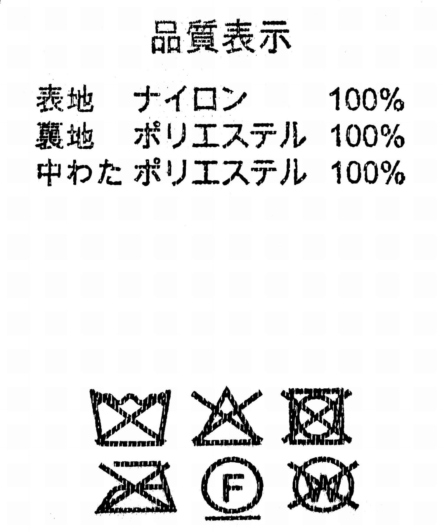 表地: ナイロン100%, 裏地: ポリエステル100%, 中わた: ポリエステル100%