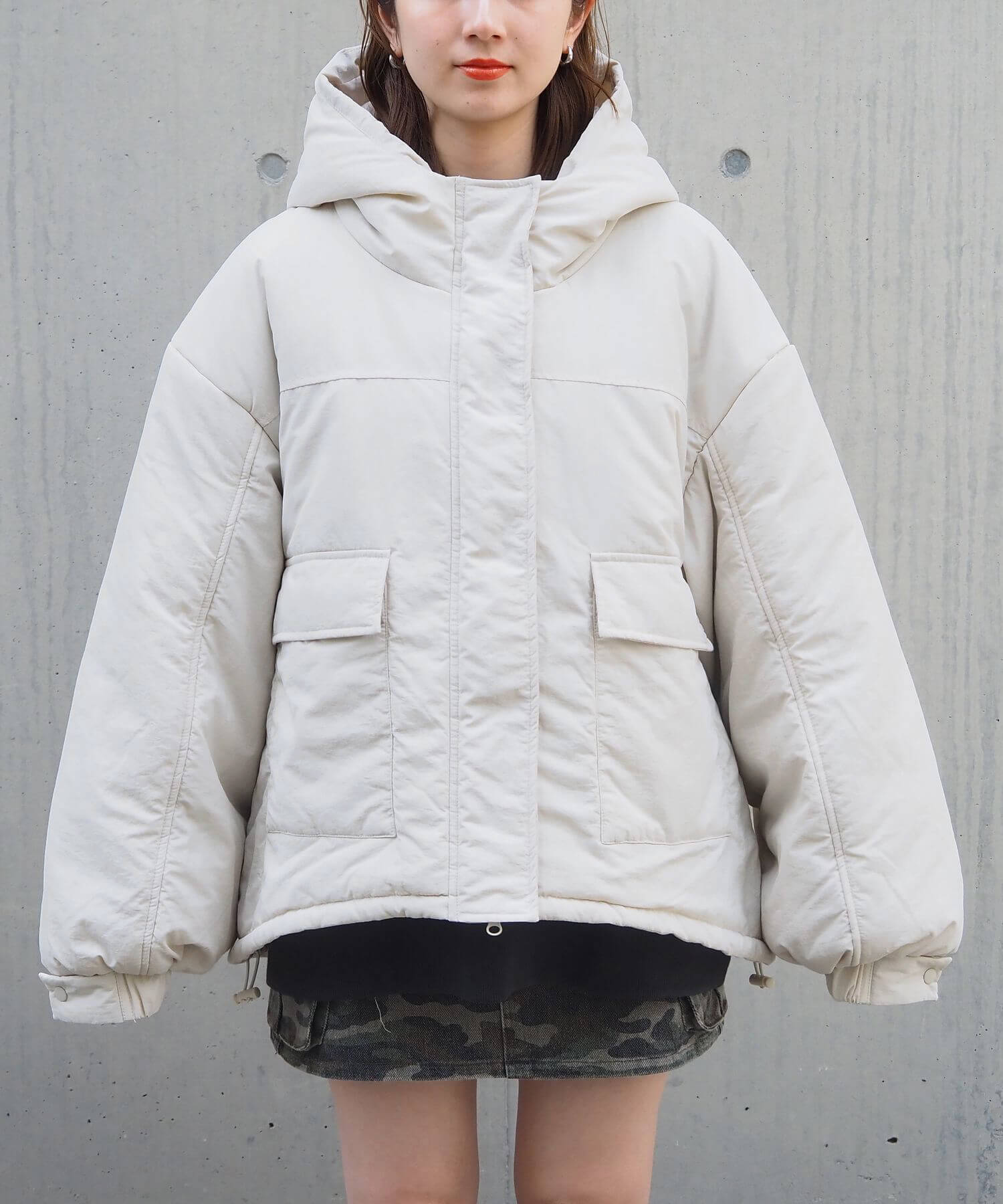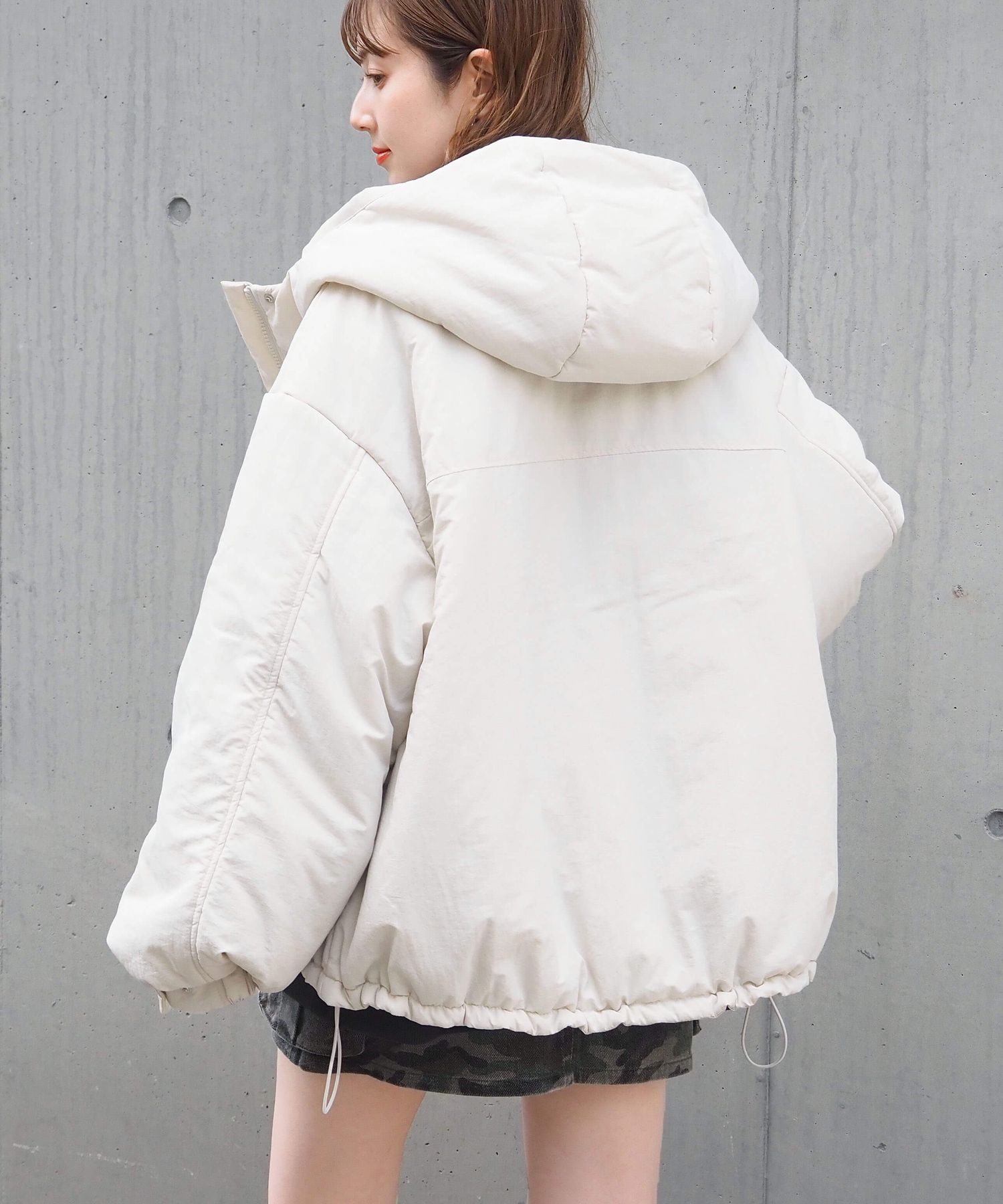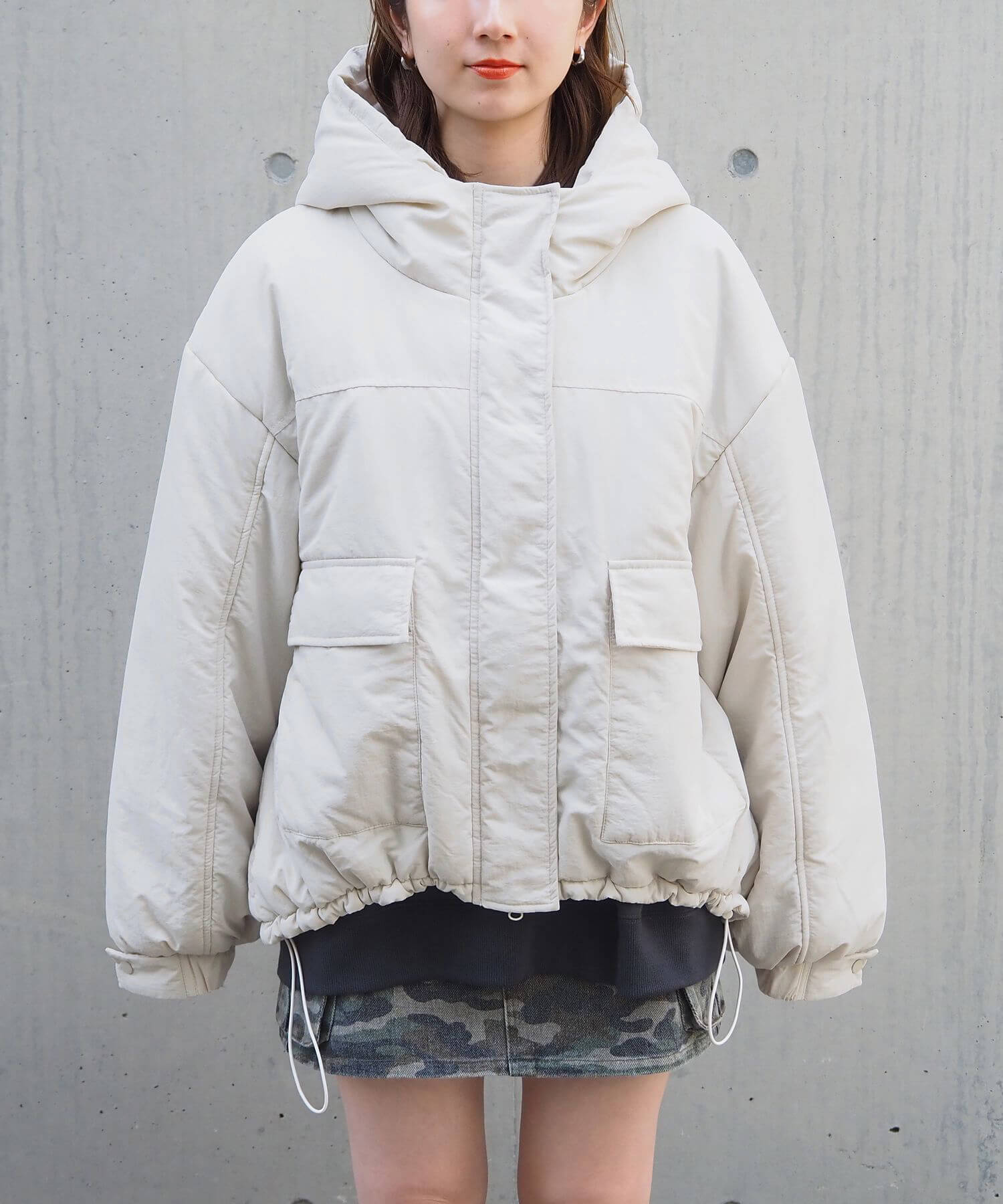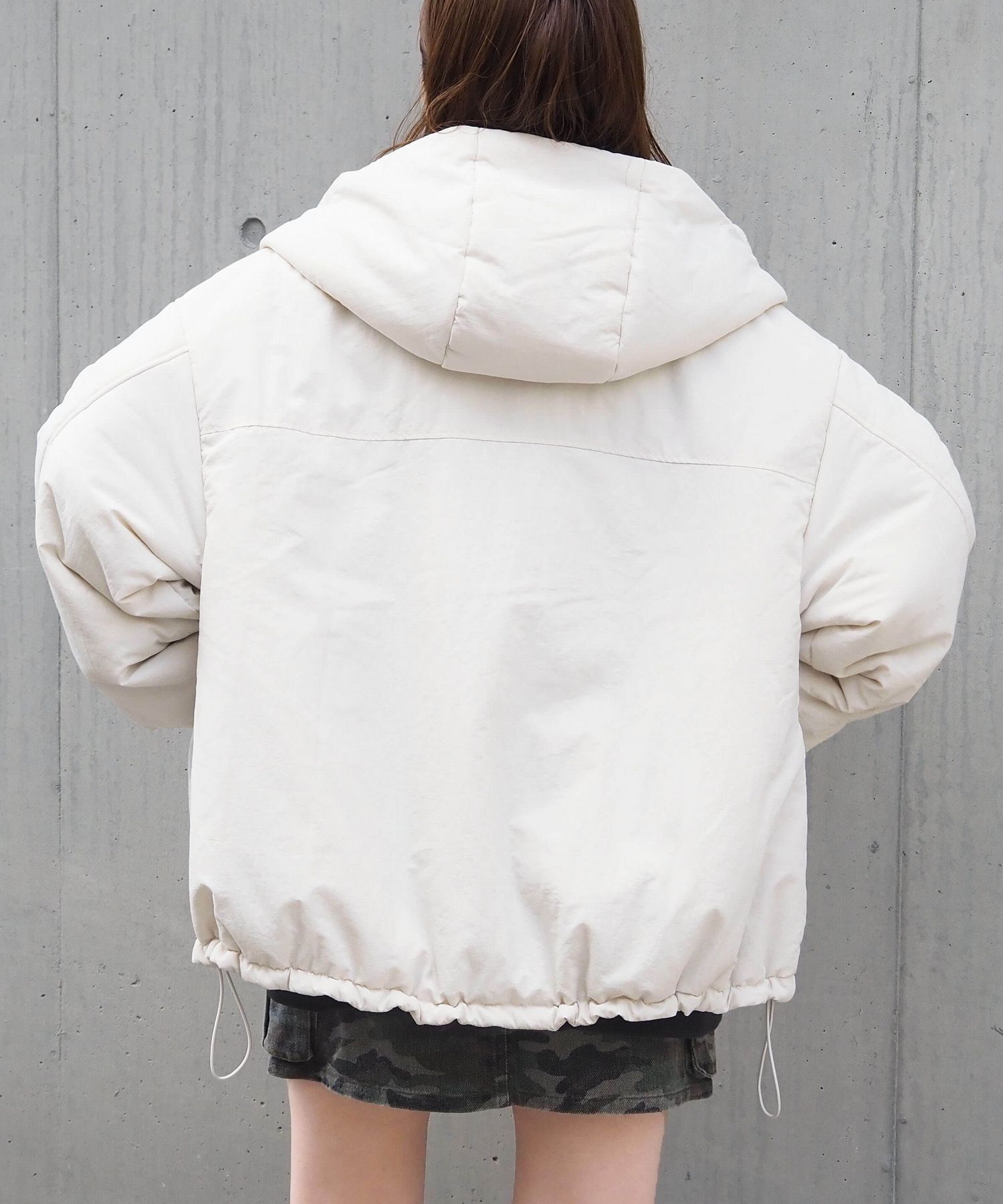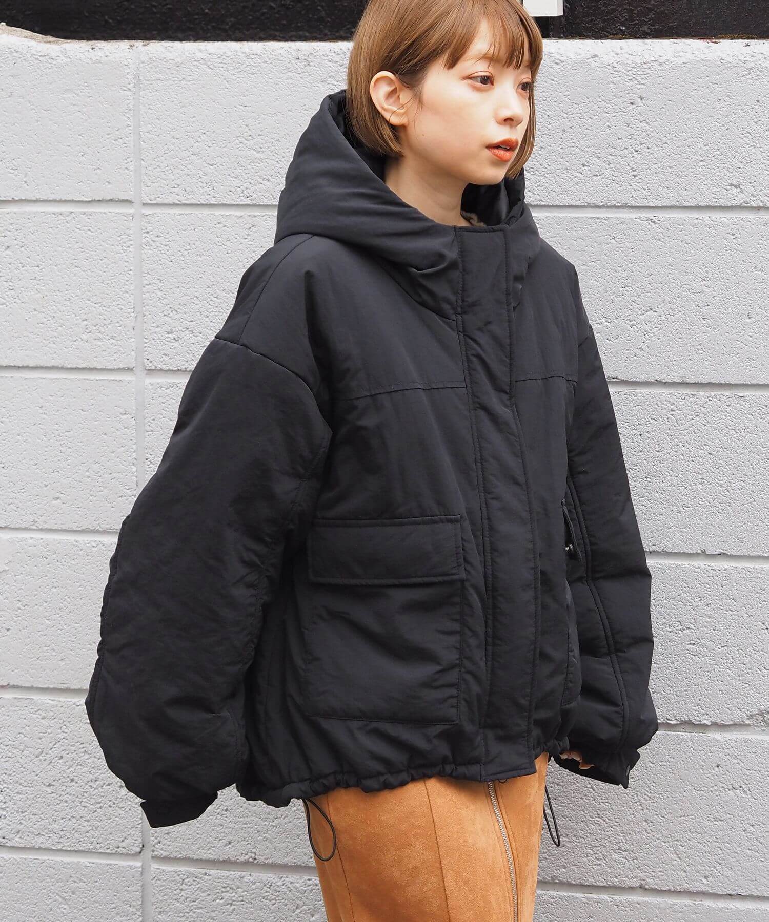 ・ビッグシルエットが魅力のフード付きブルゾンです。