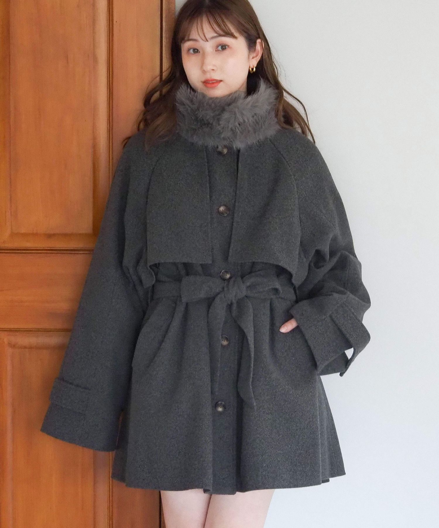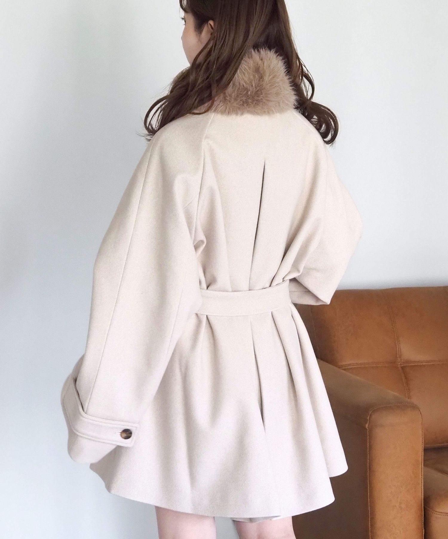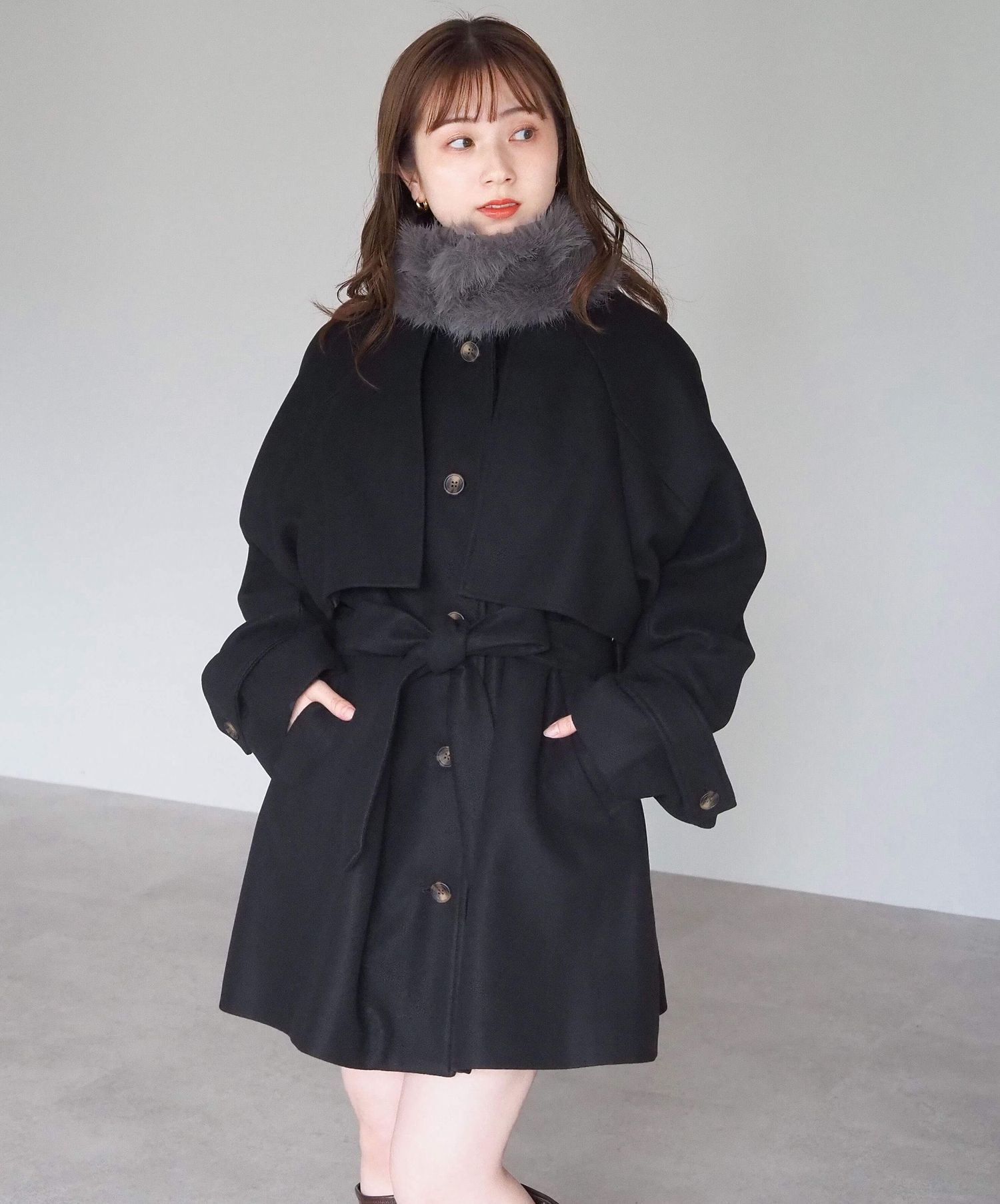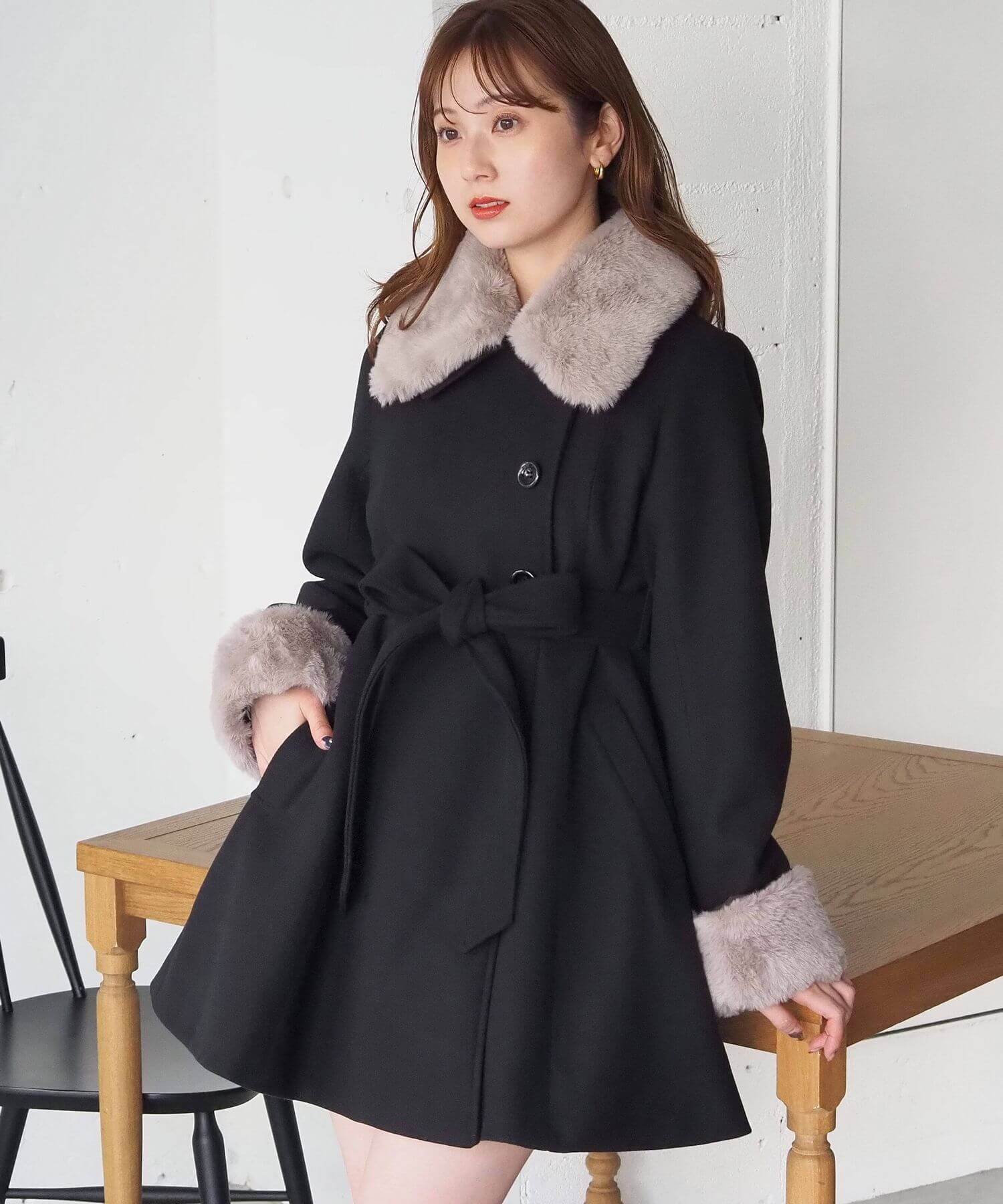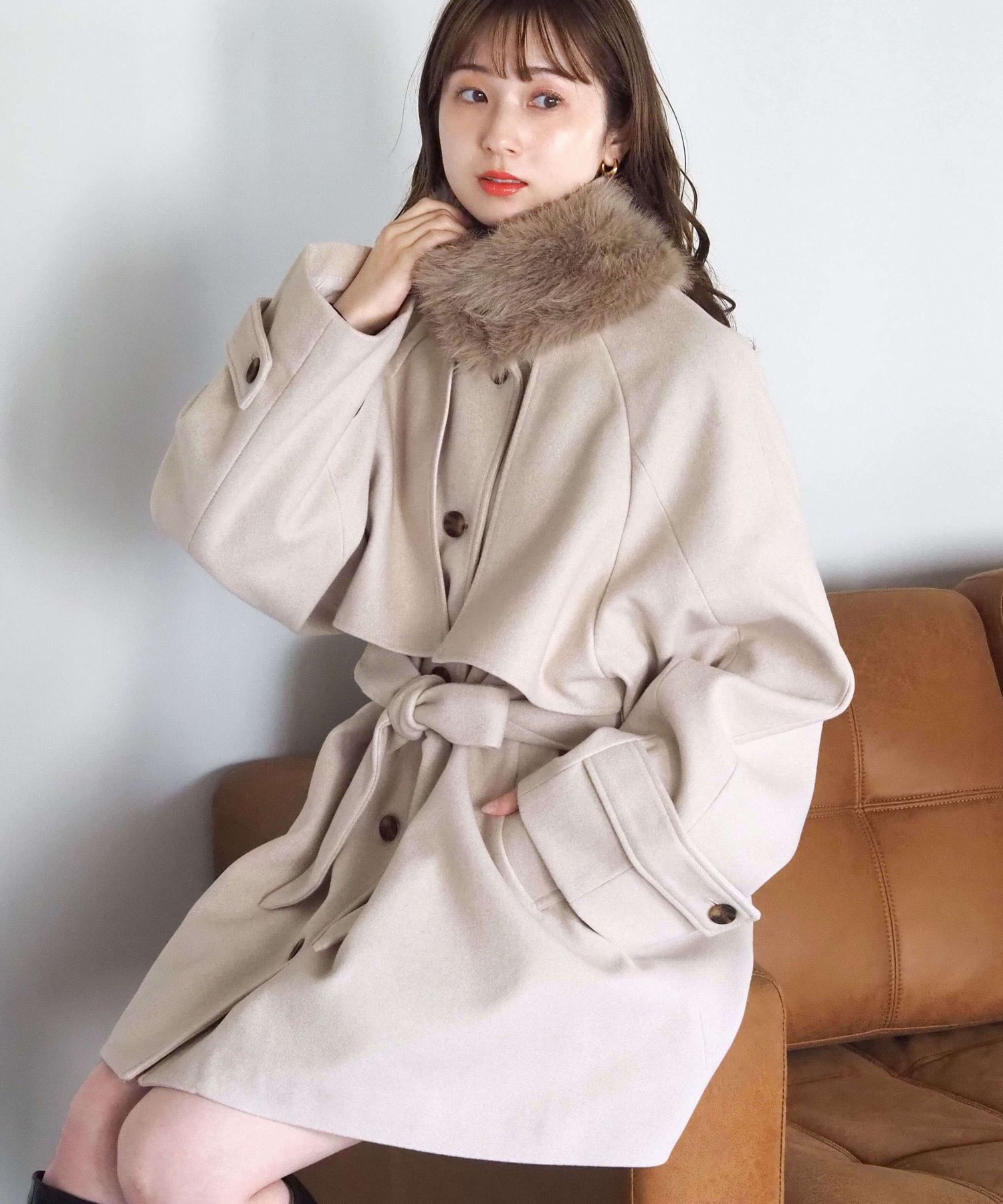 ・人気の「ミドル丈トレンチコート(品番:1360008076)」をベースに、ふわふわのファーティペットでさらに華やかで暖かくなりました♪