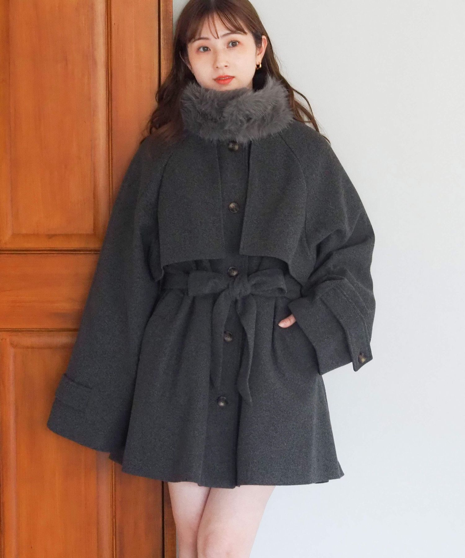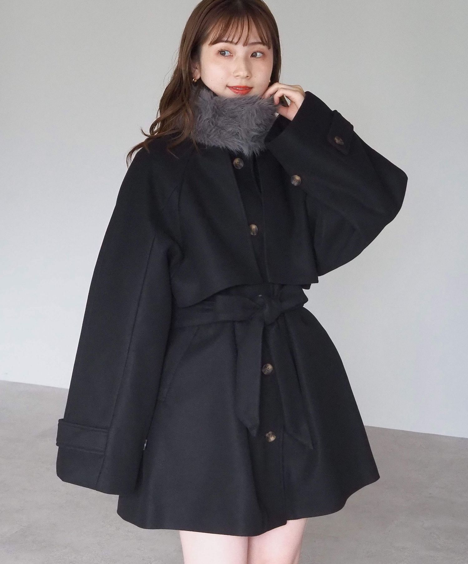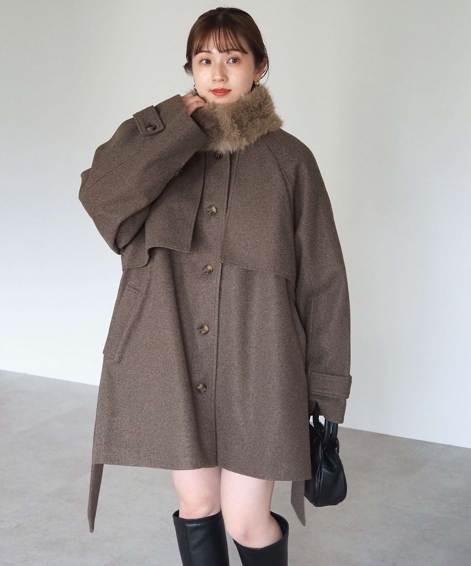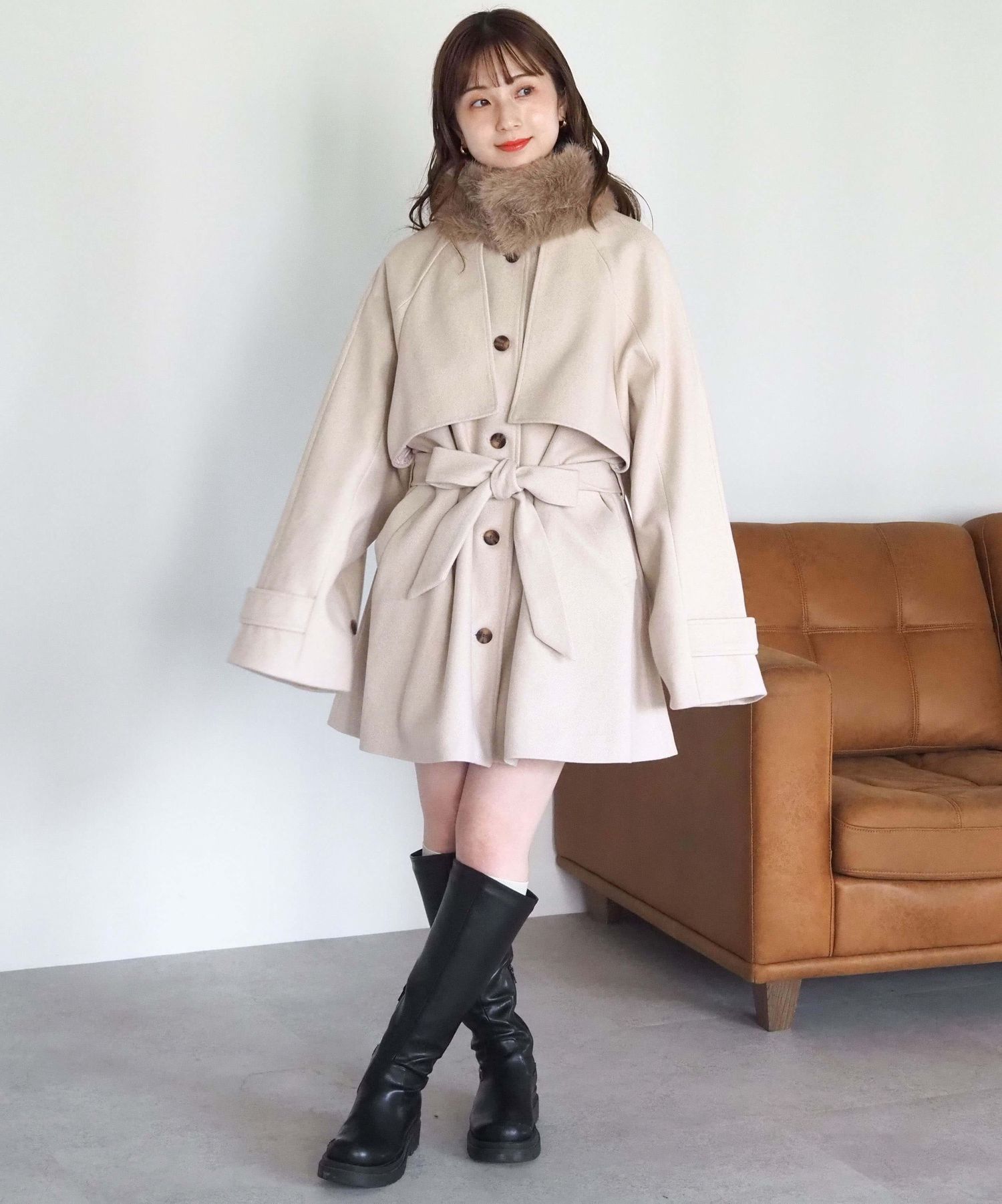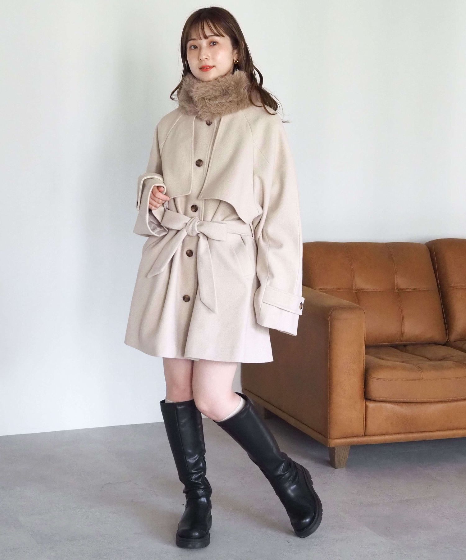 ・人気の「ミドル丈トレンチコート(品番:1360008076)」をベースに、ふわふわのファーティペットでさらに華やかで暖かくなりました♪