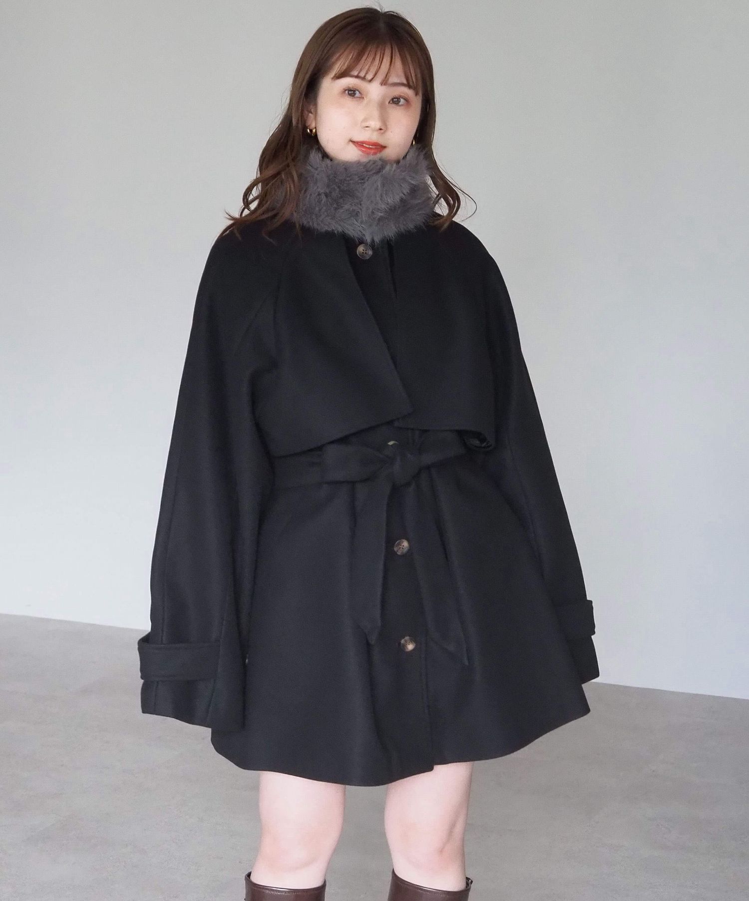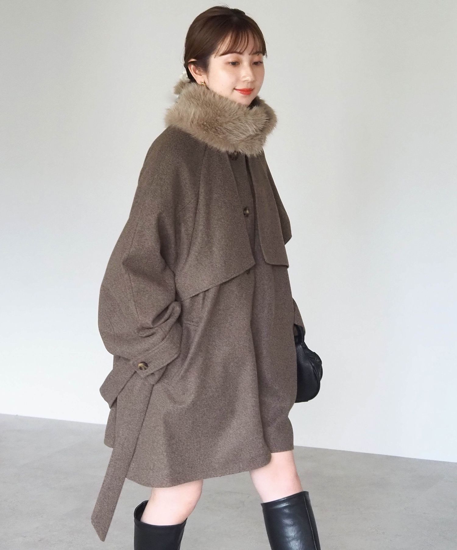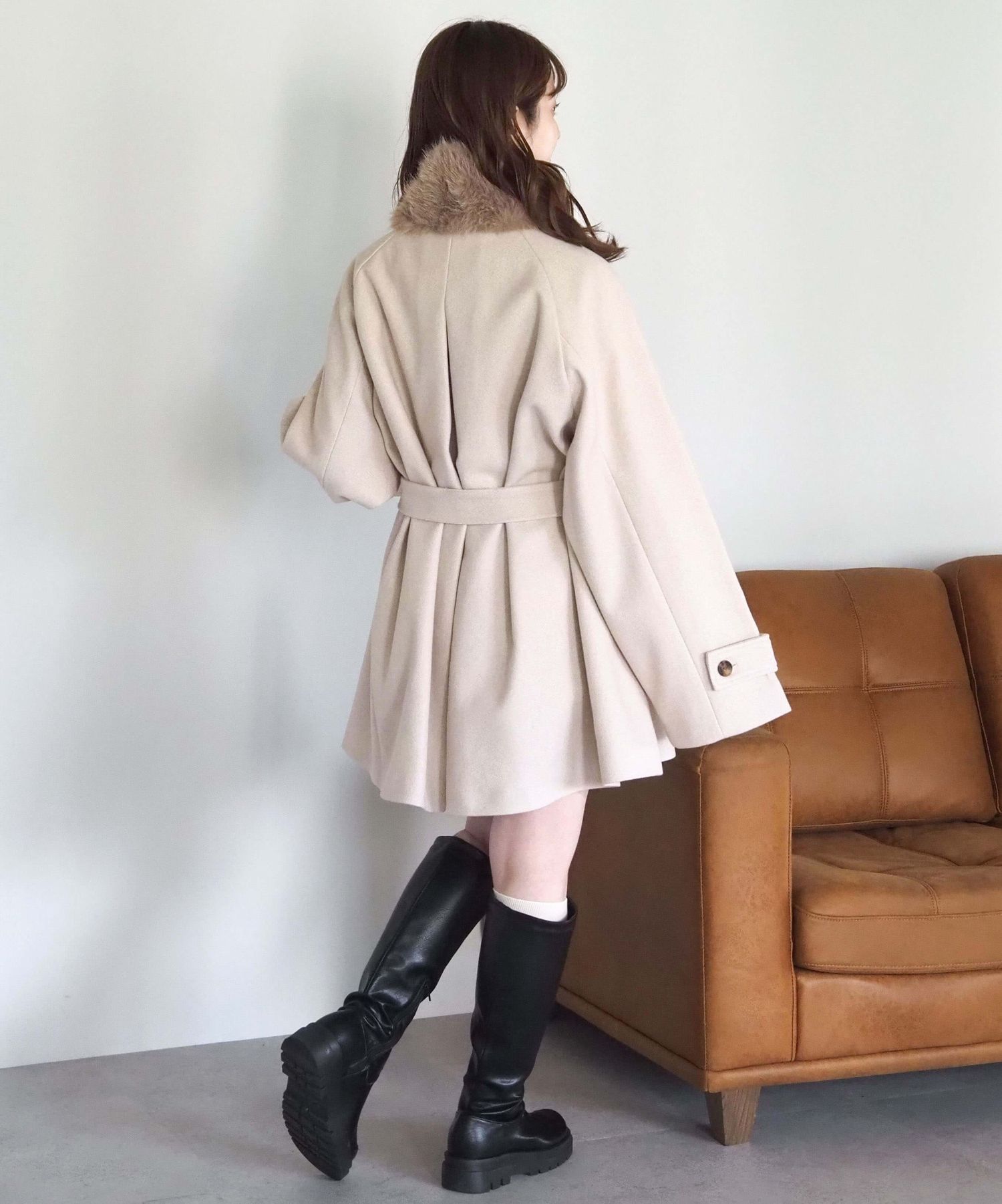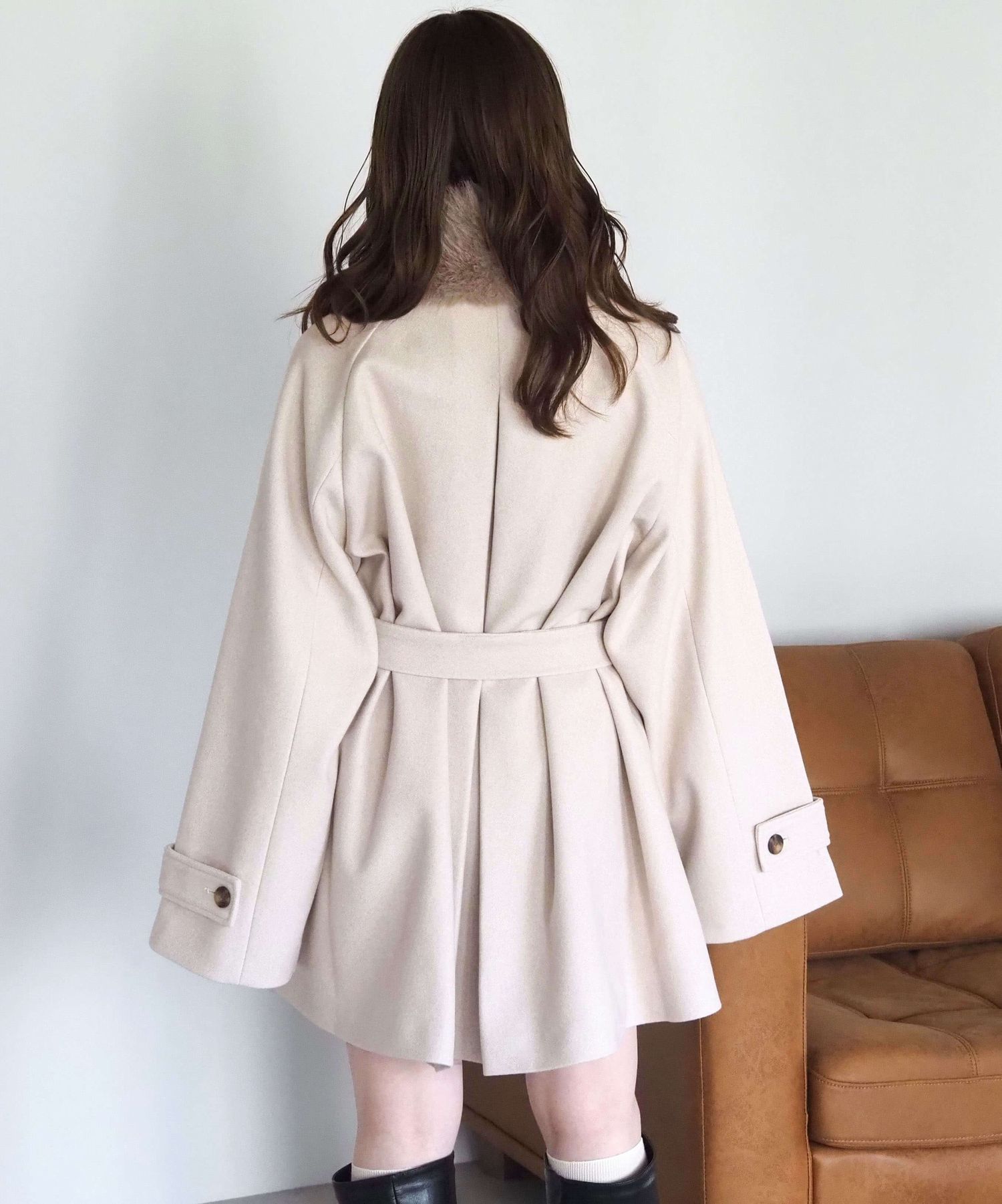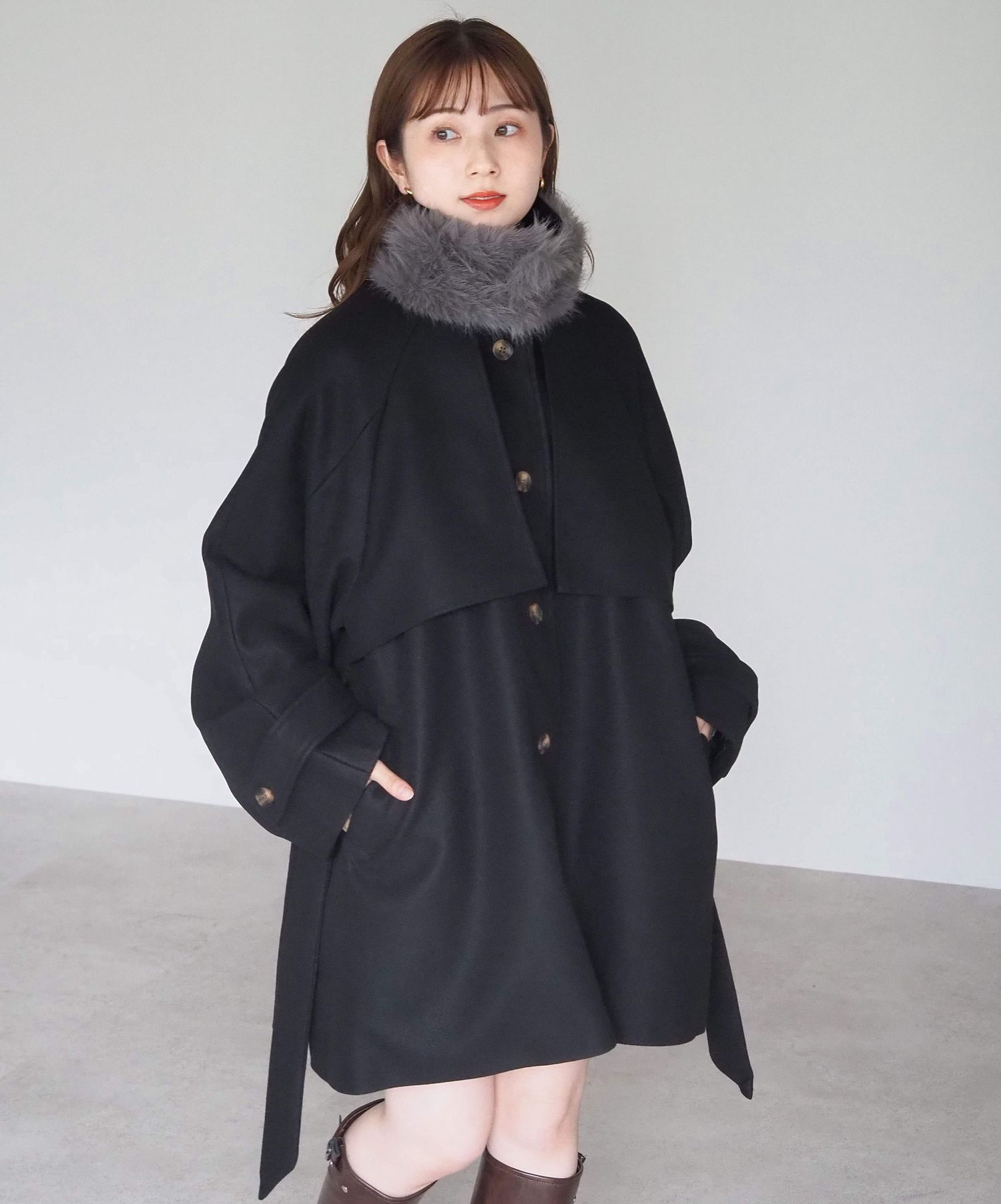 ・人気の「ミドル丈トレンチコート(品番:1360008076)」をベースに、ふわふわのファーティペットでさらに華やかで暖かくなりました♪