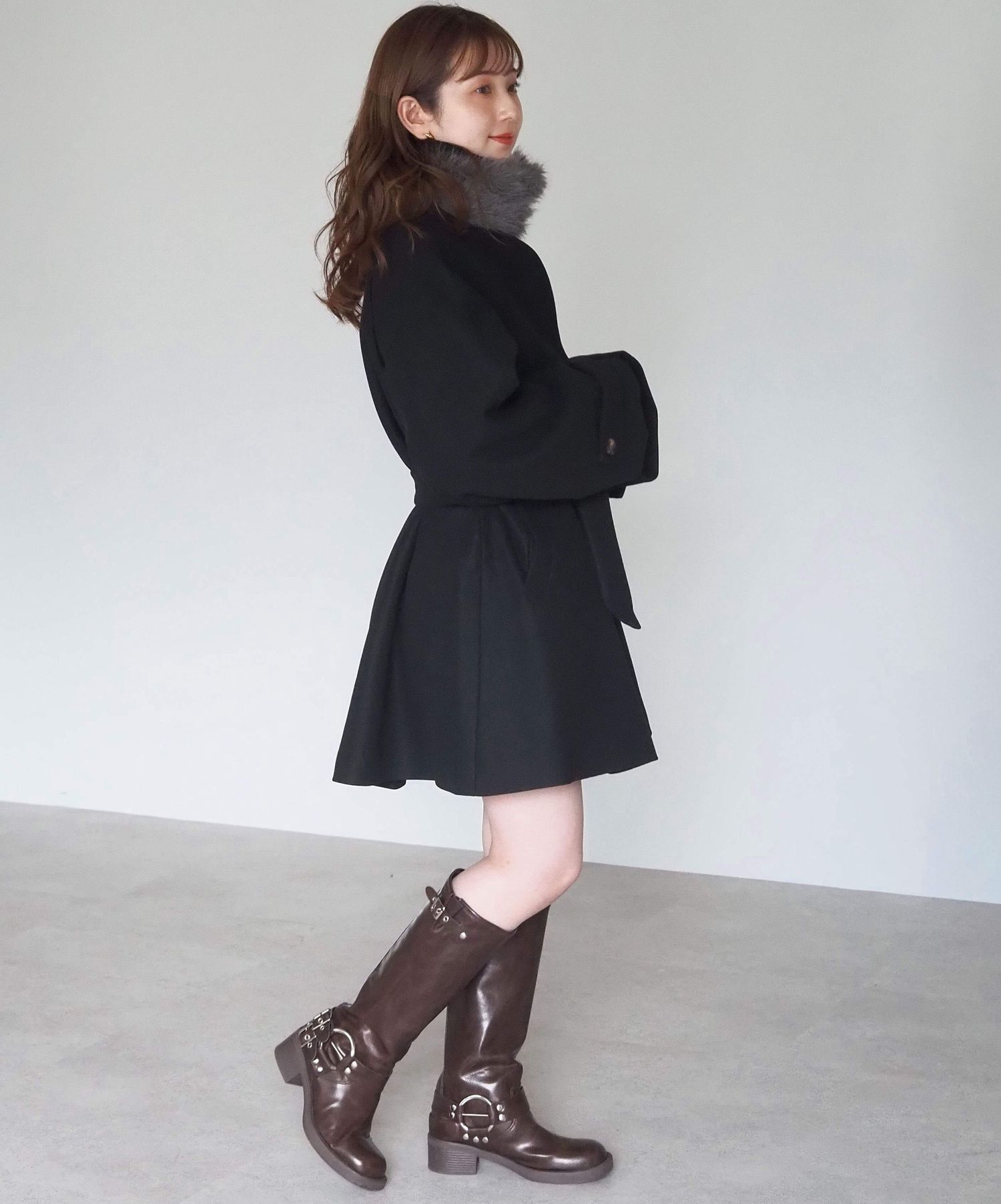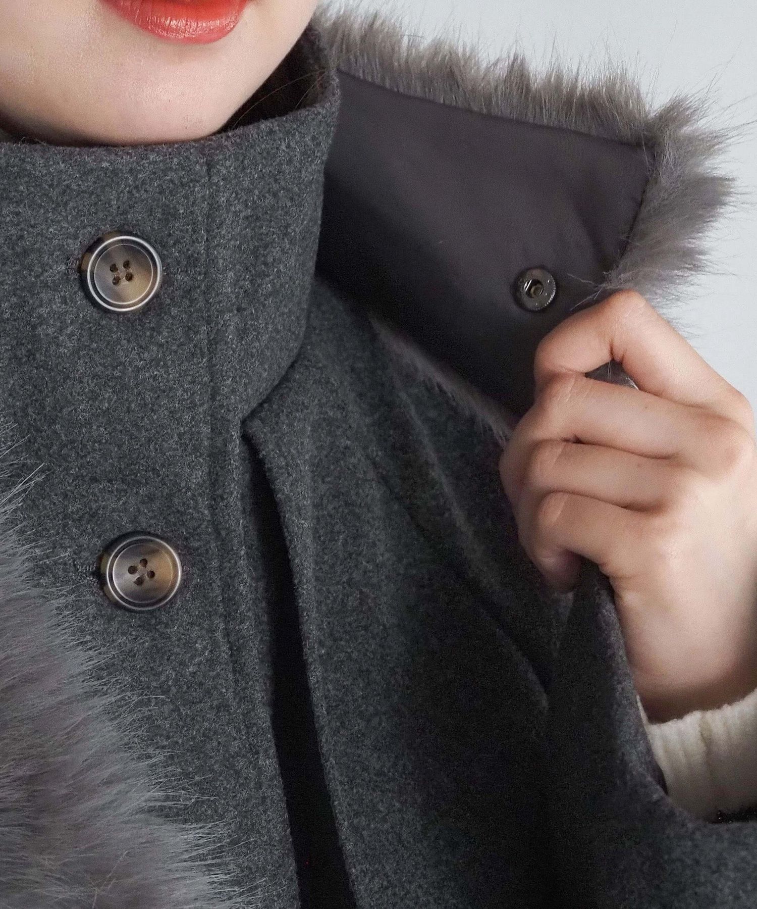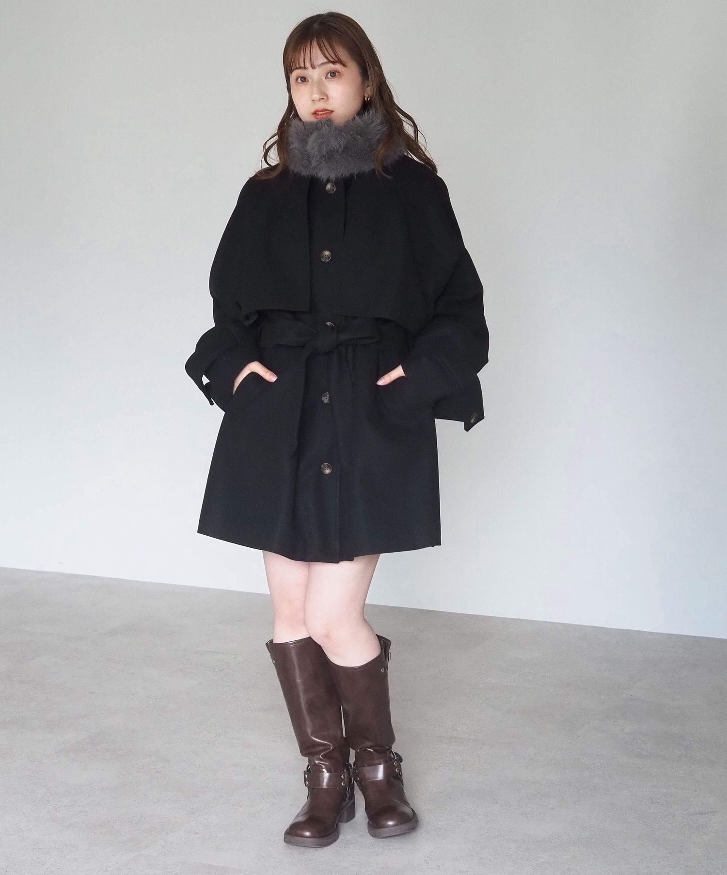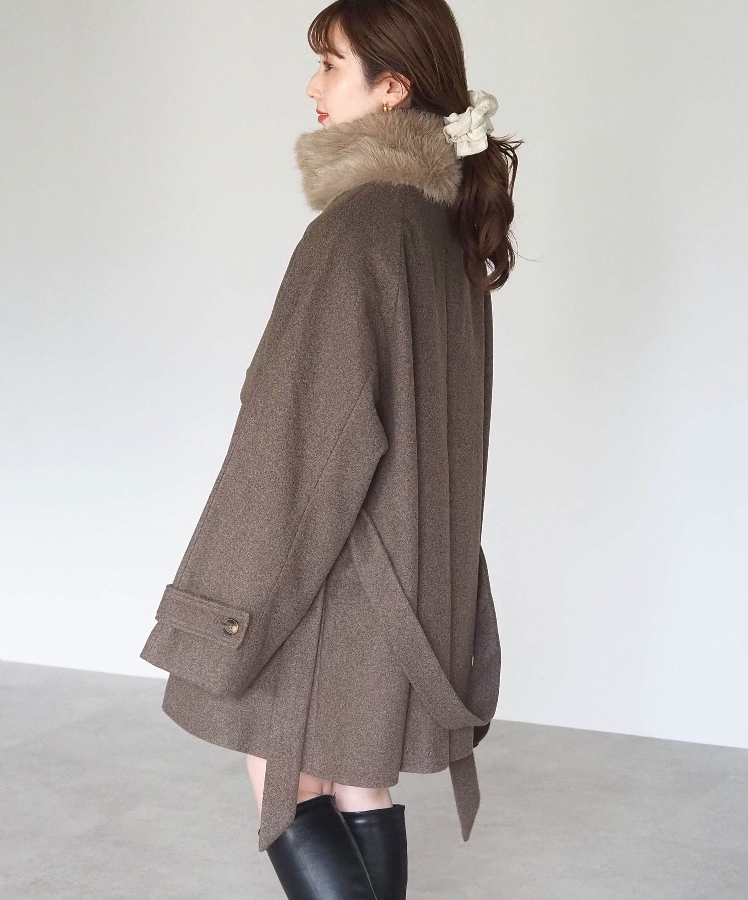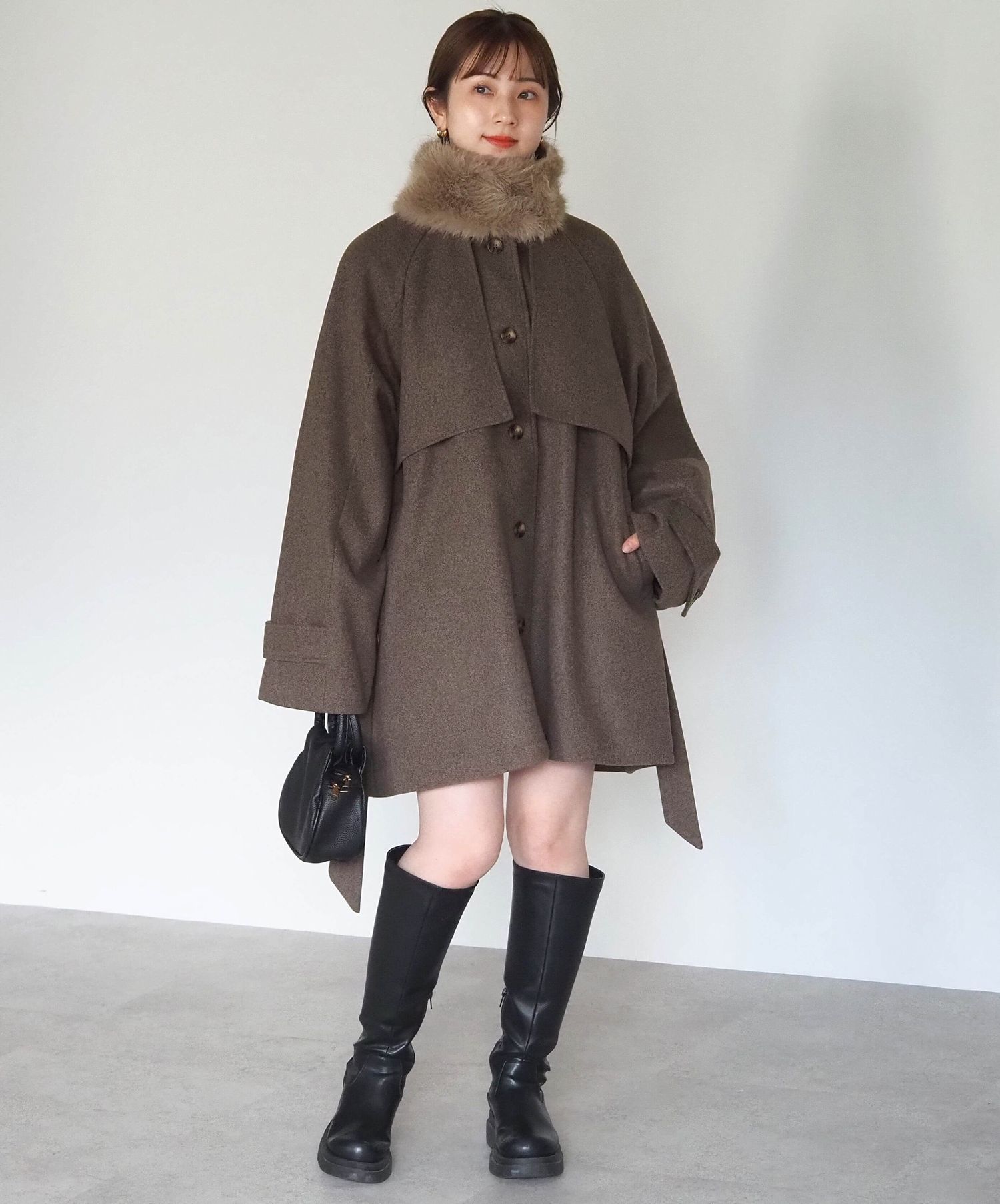 ・人気の「ミドル丈トレンチコート(品番:1360008076)」をベースに、ふわふわのファーティペットでさらに華やかで暖かくなりました♪