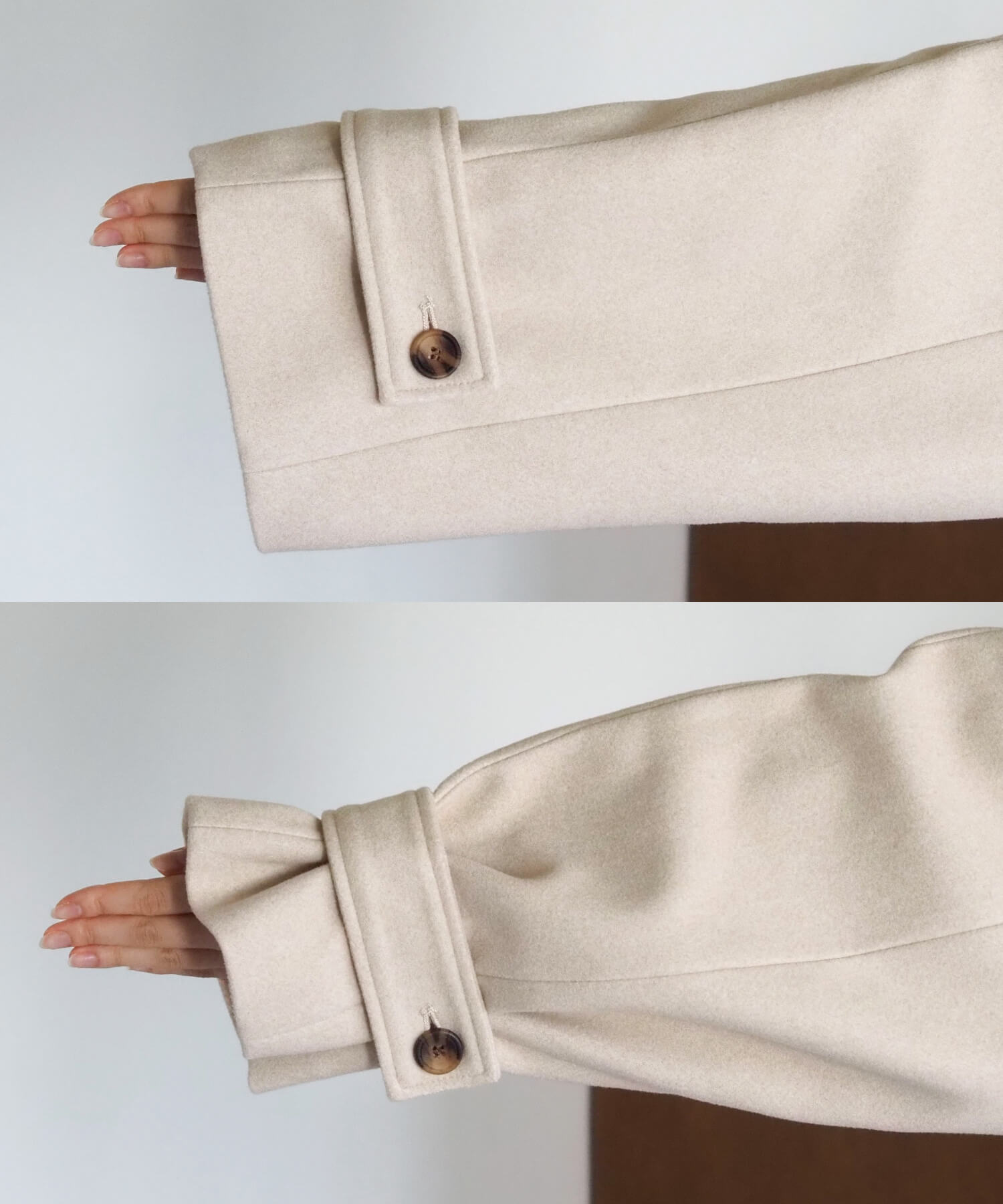 ・少し長めのワイド袖も、着るだけでかわいいが叶うポイント◎袖口のボタンを締めて、キャンディスリーブにもアレンジが可能です。
