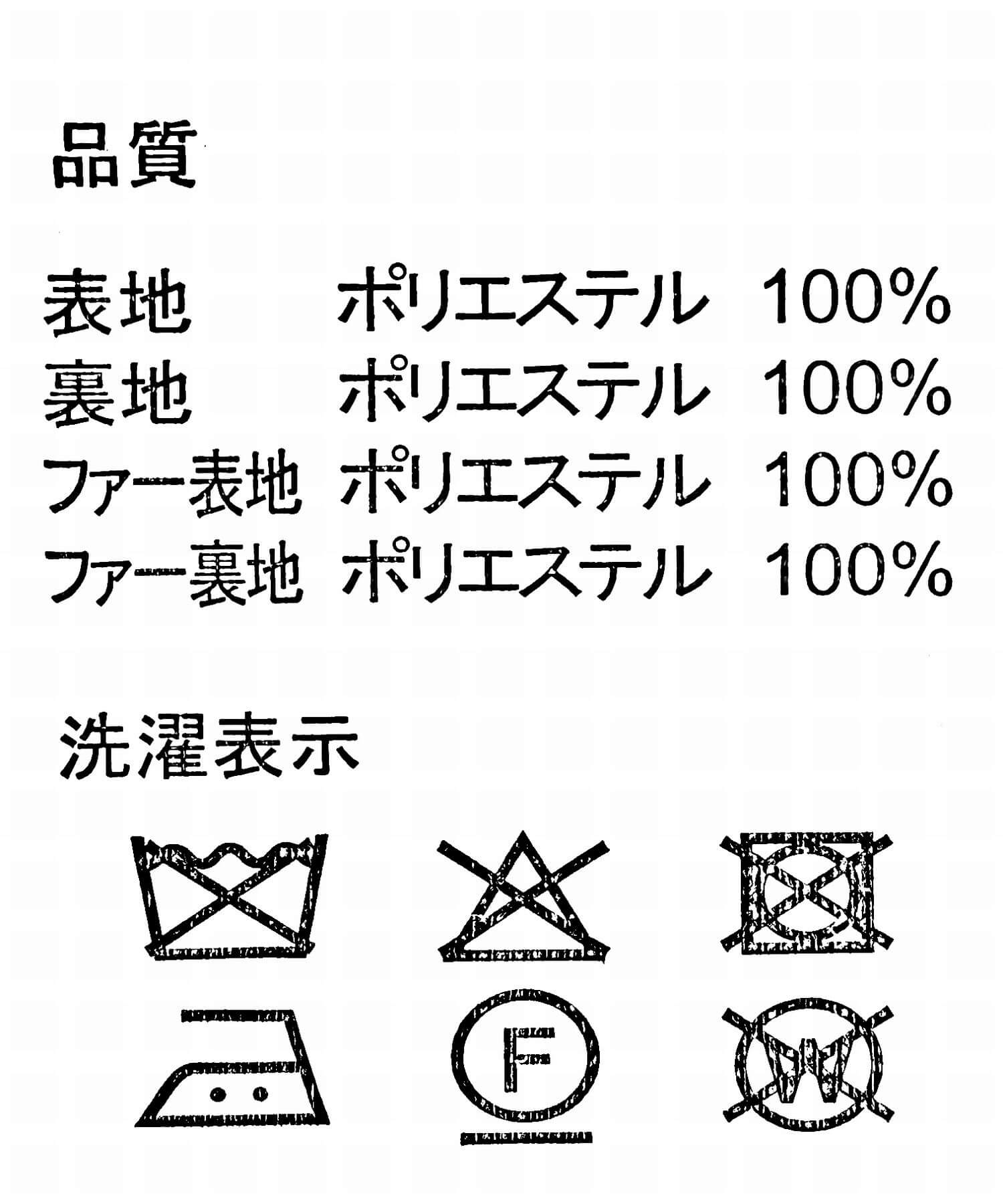 表地: ナイロン100%, 裏地: ポリエステル100%, ファー表地: ポリエステル100%, ファー裏地: ポリエステル100%