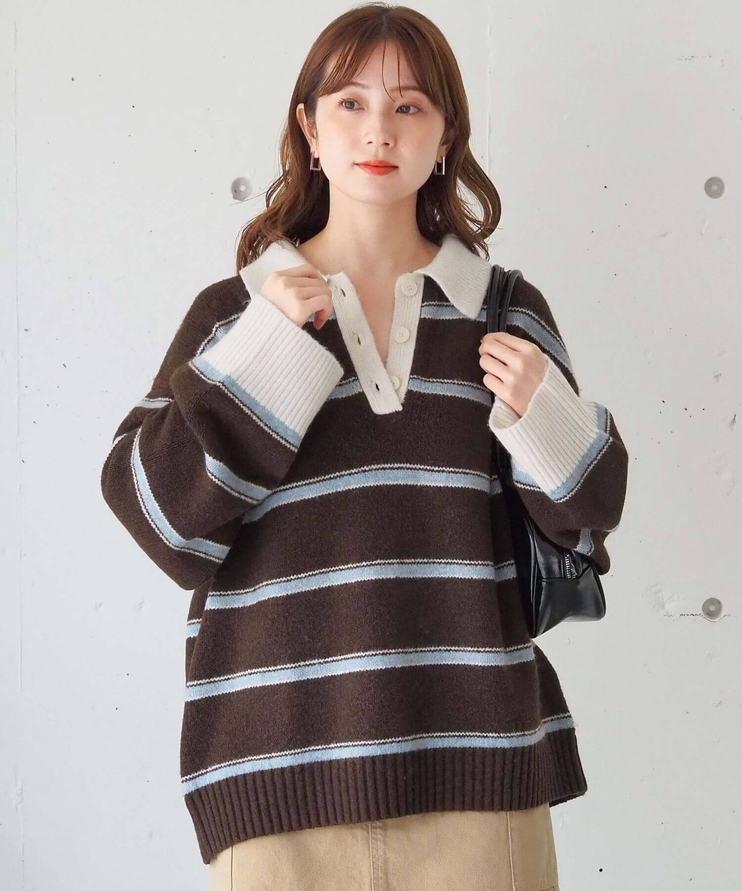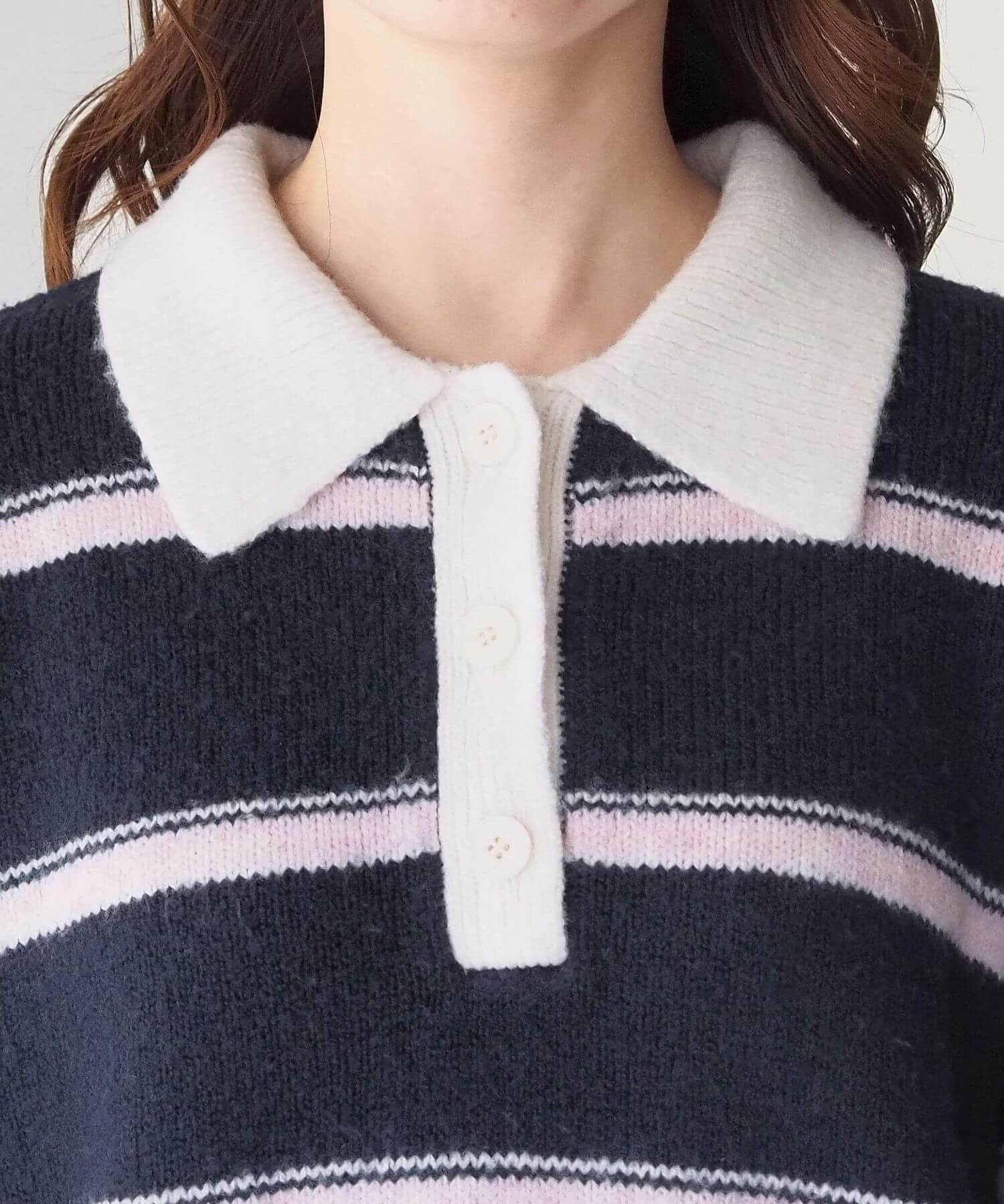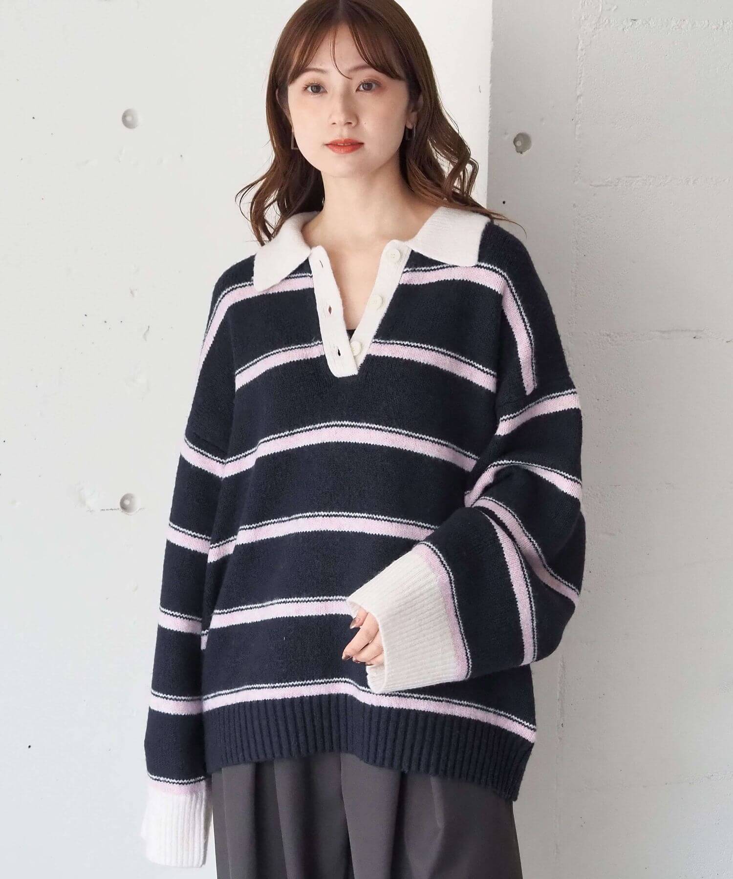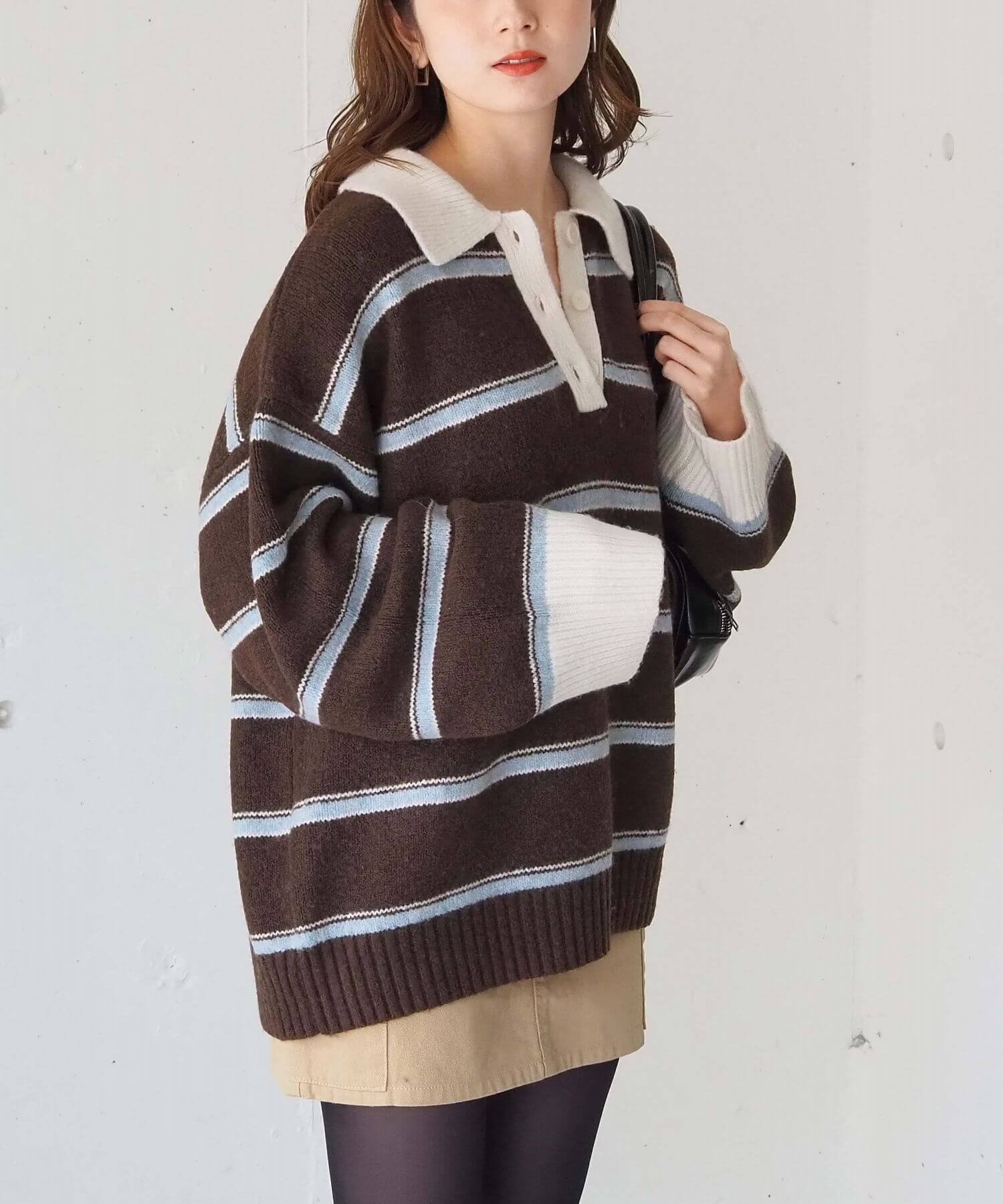 ・スポーティーなラガーシャツデザインに、やや起毛感のあるもちもちニットで女性らしさをプラスし、上品に着られる1着に仕上げました。