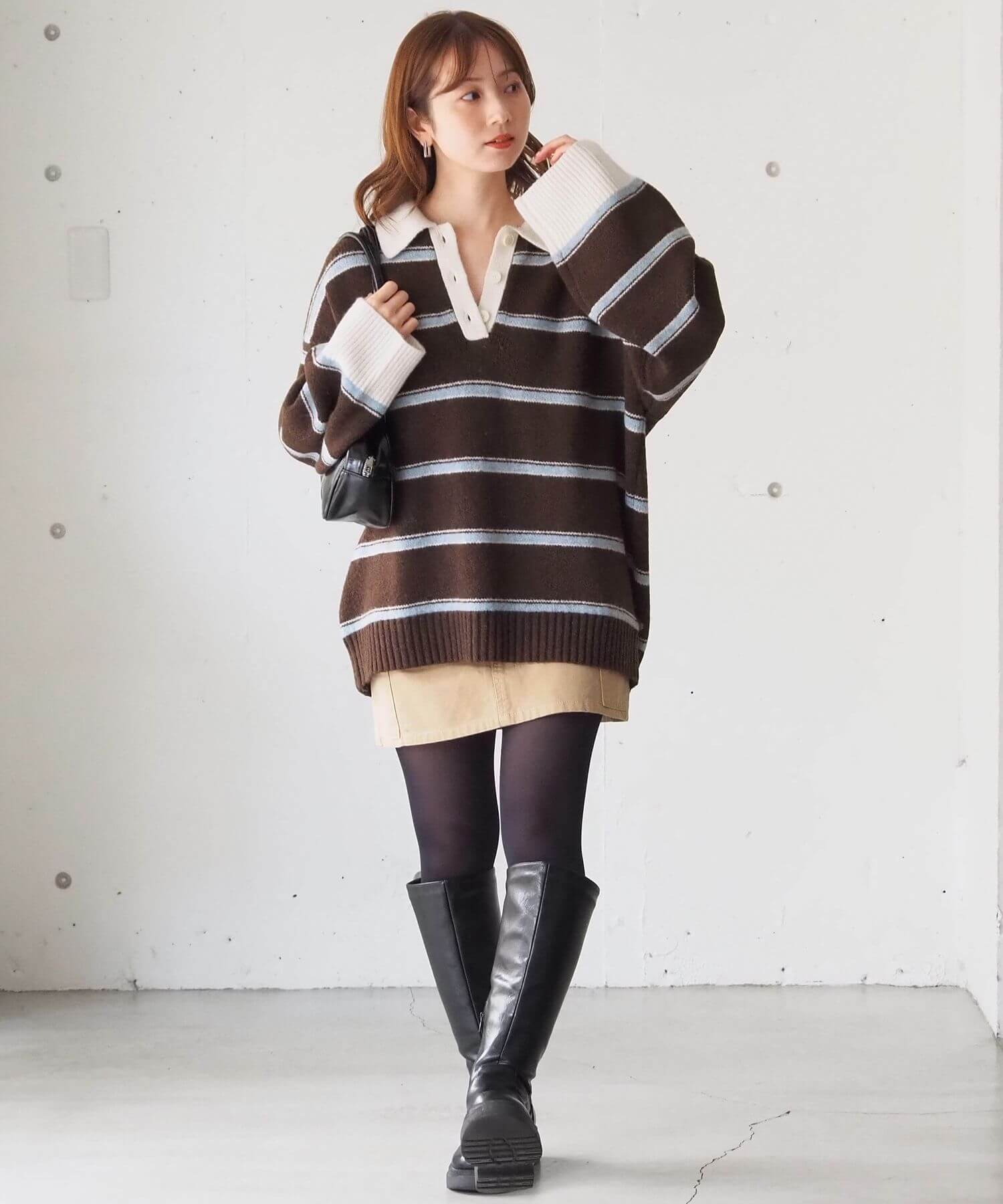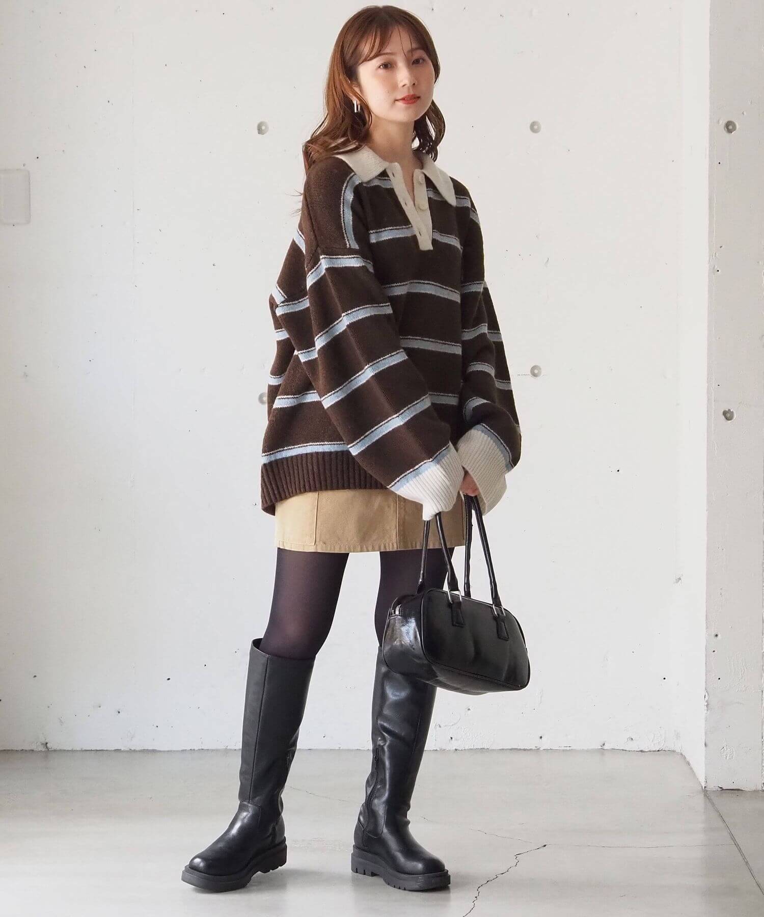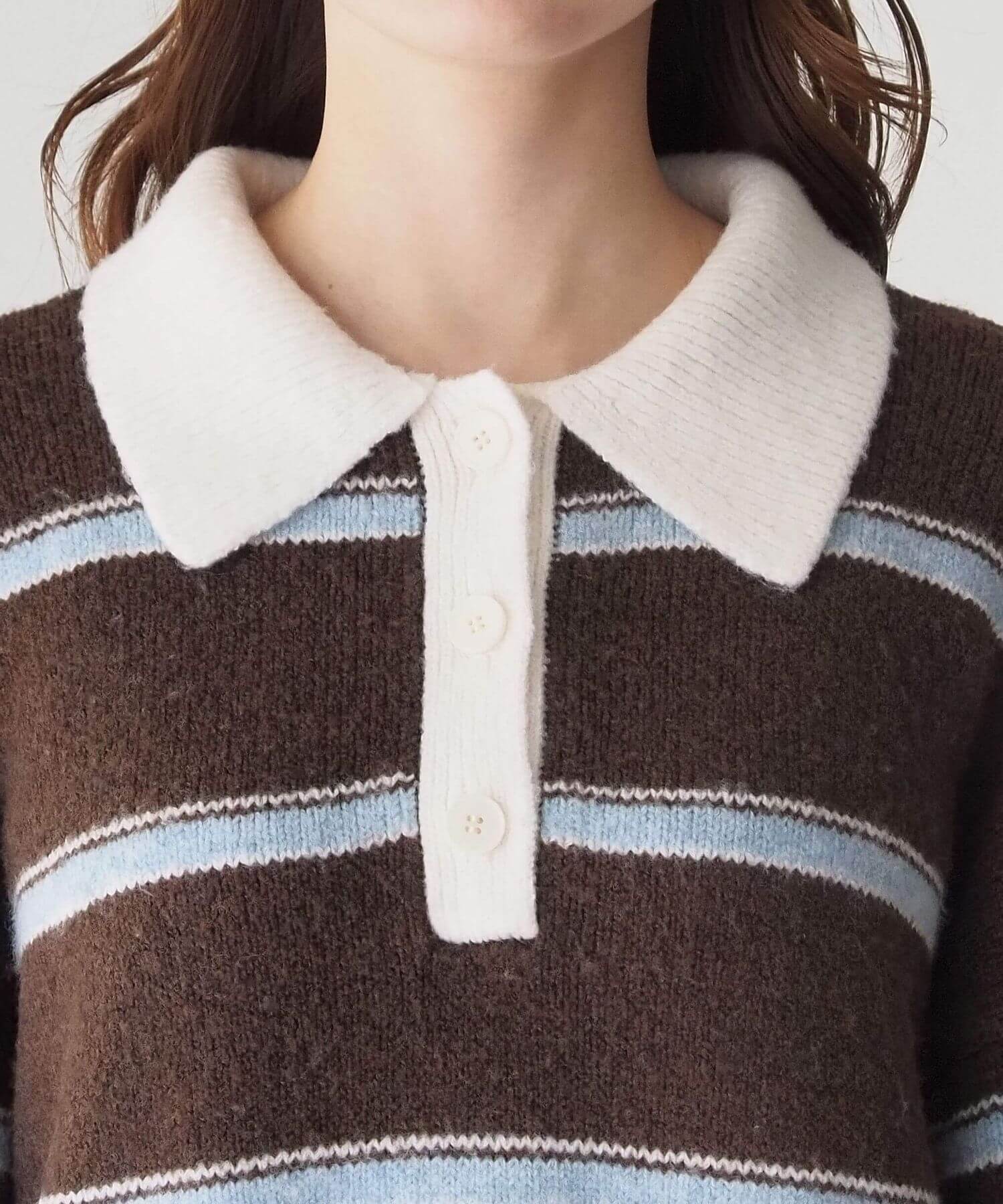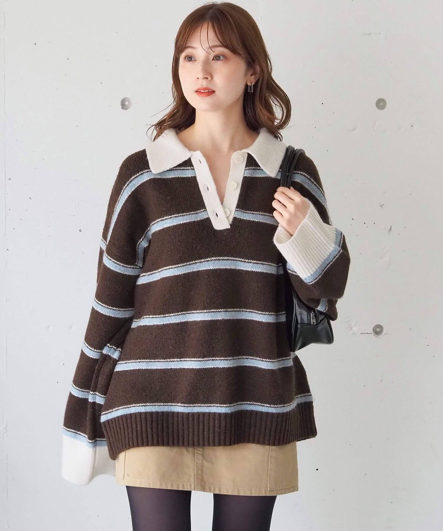 ・スポーティーなラガーシャツデザインに、やや起毛感のあるもちもちニットで女性らしさをプラスし、上品に着られる1着に仕上げました。