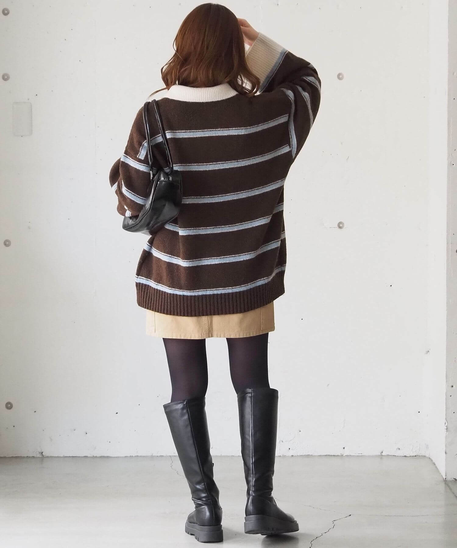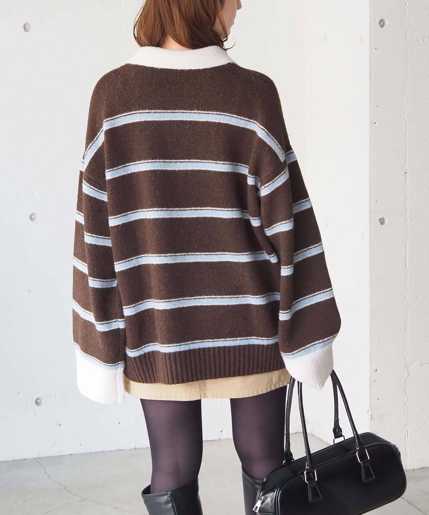 ・マルチボーダーが目を惹くビッグニットプルオーバーです。