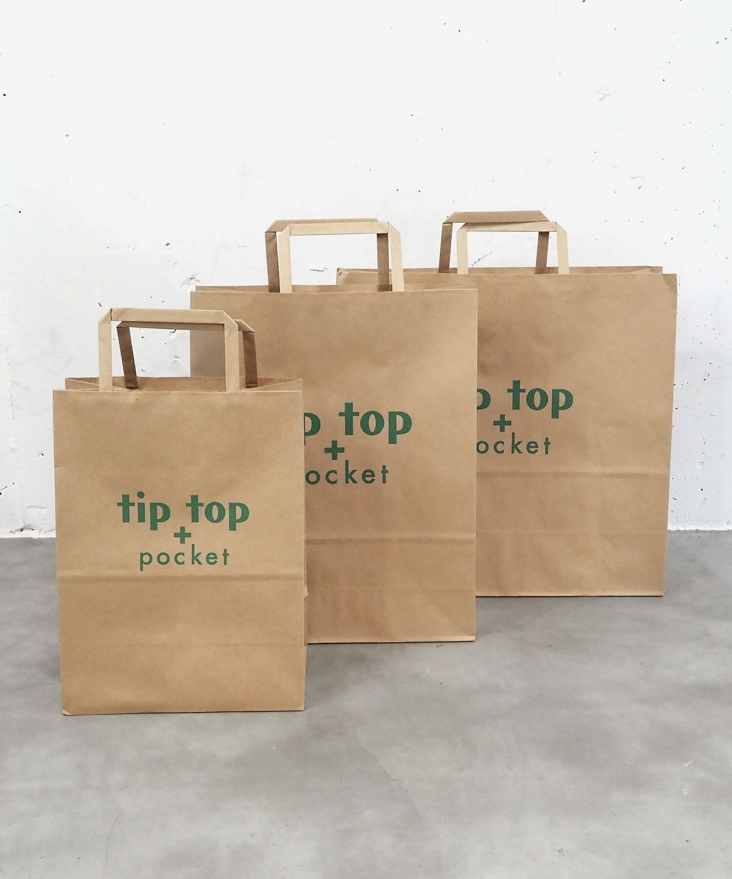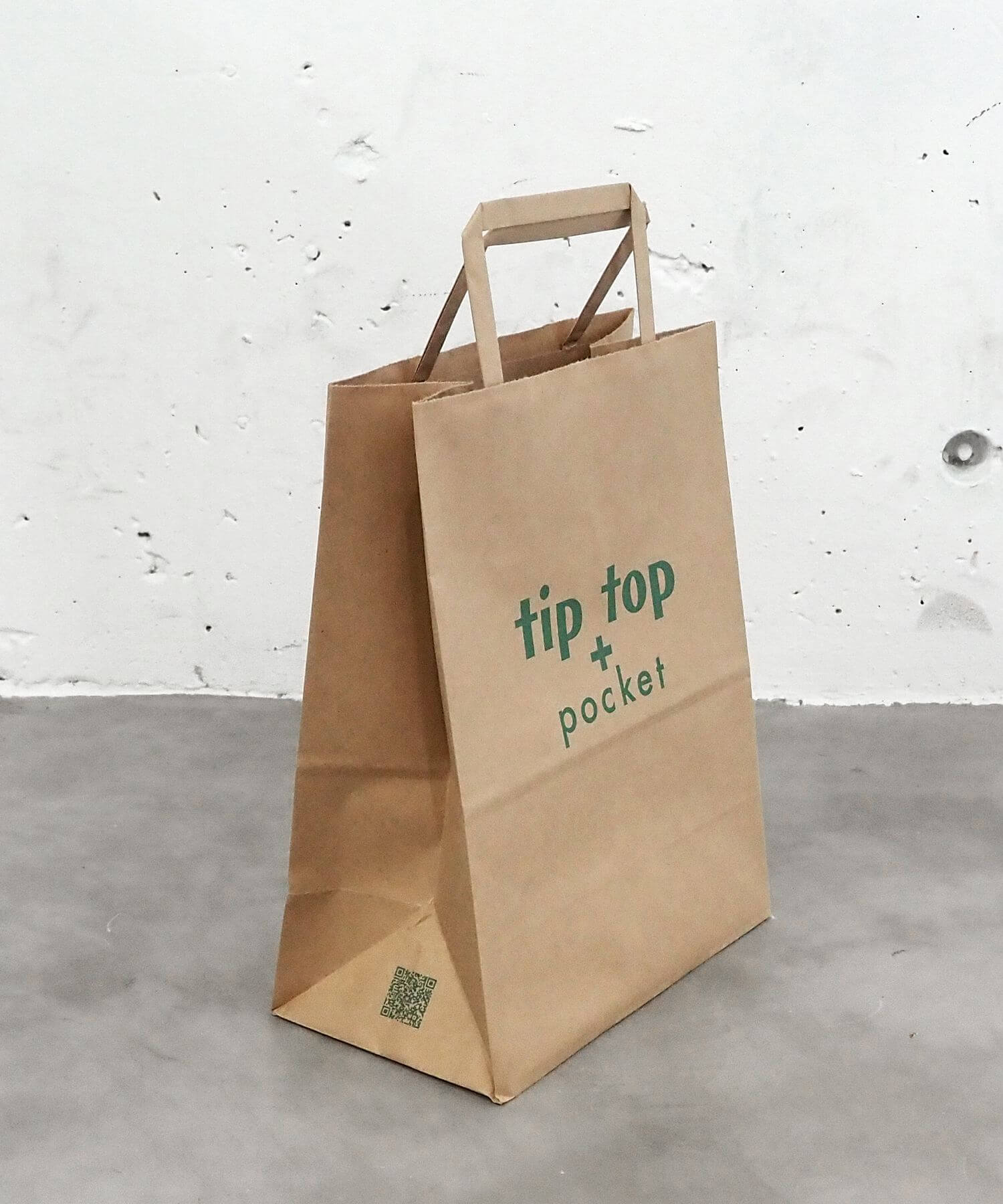 ・tiptop+pocketのロゴ入りのギフト用に使えるショッピング紙袋(S)です。