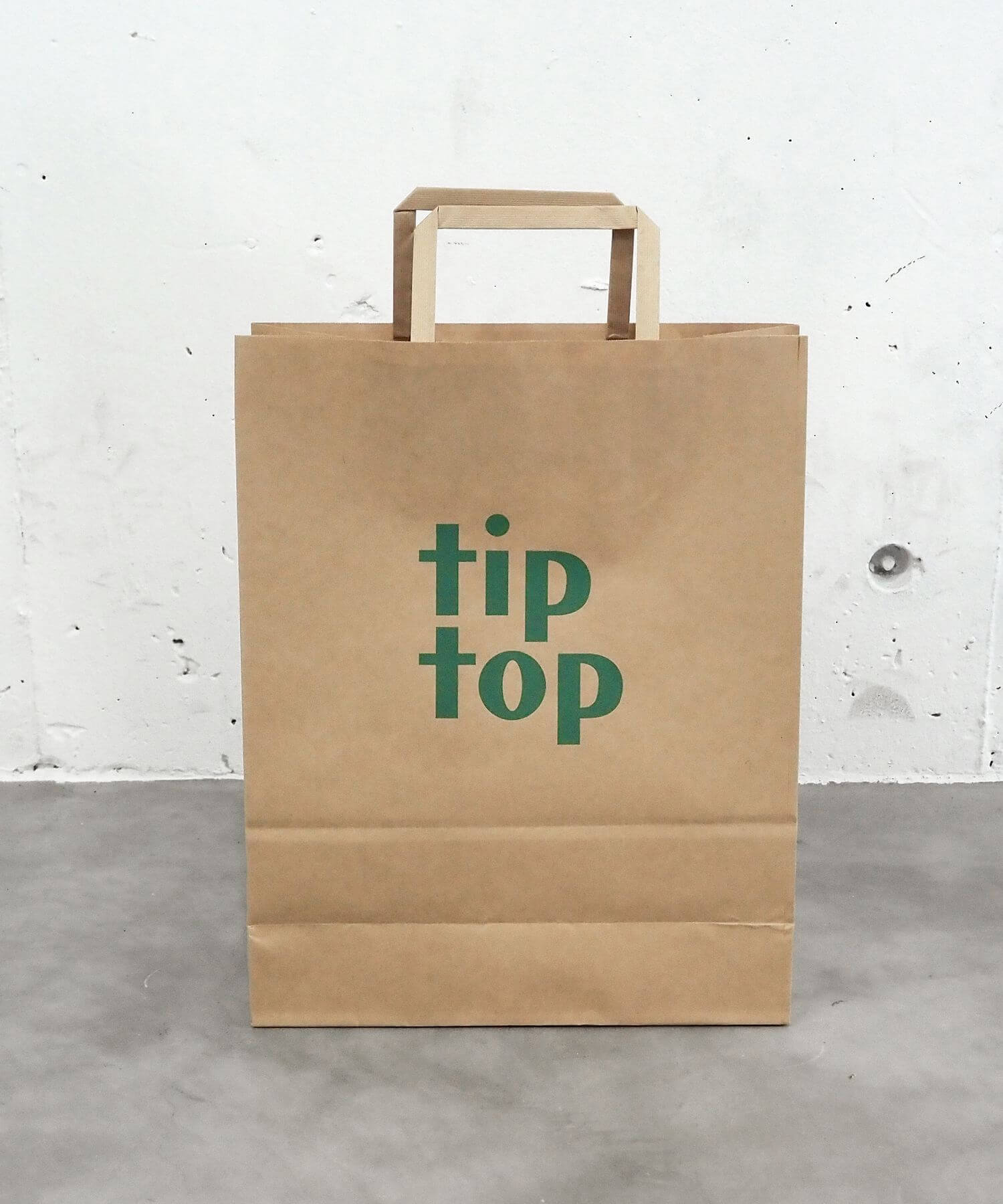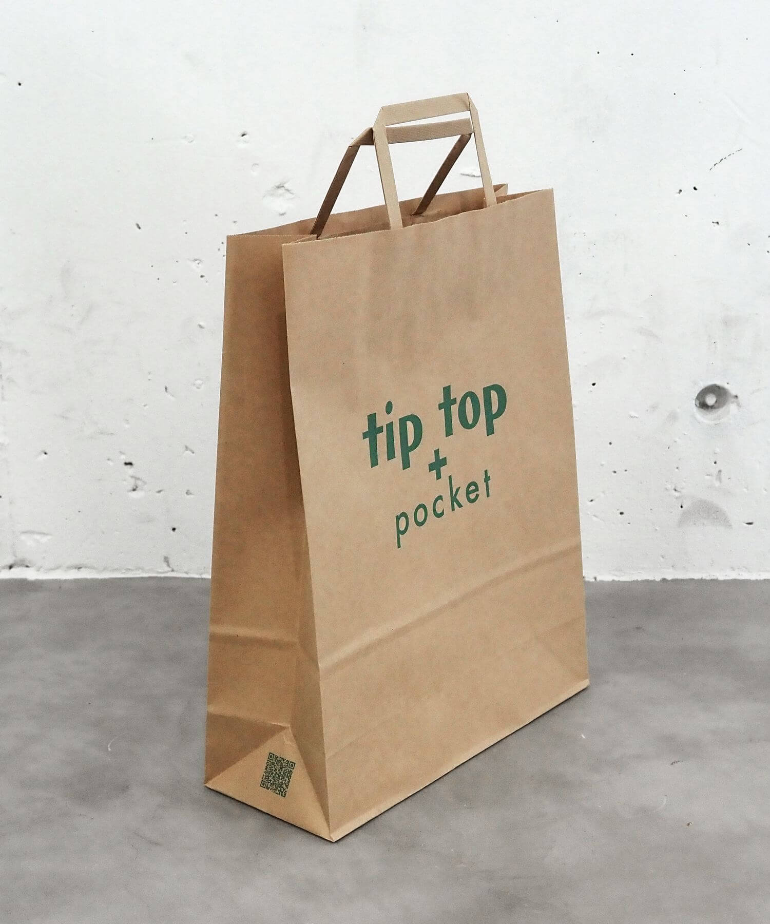 ・tiptop+pocketのロゴ入りのギフト用に使えるショッピング紙袋(M)です。