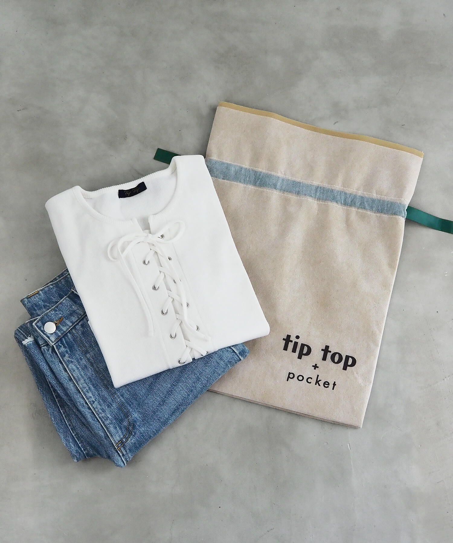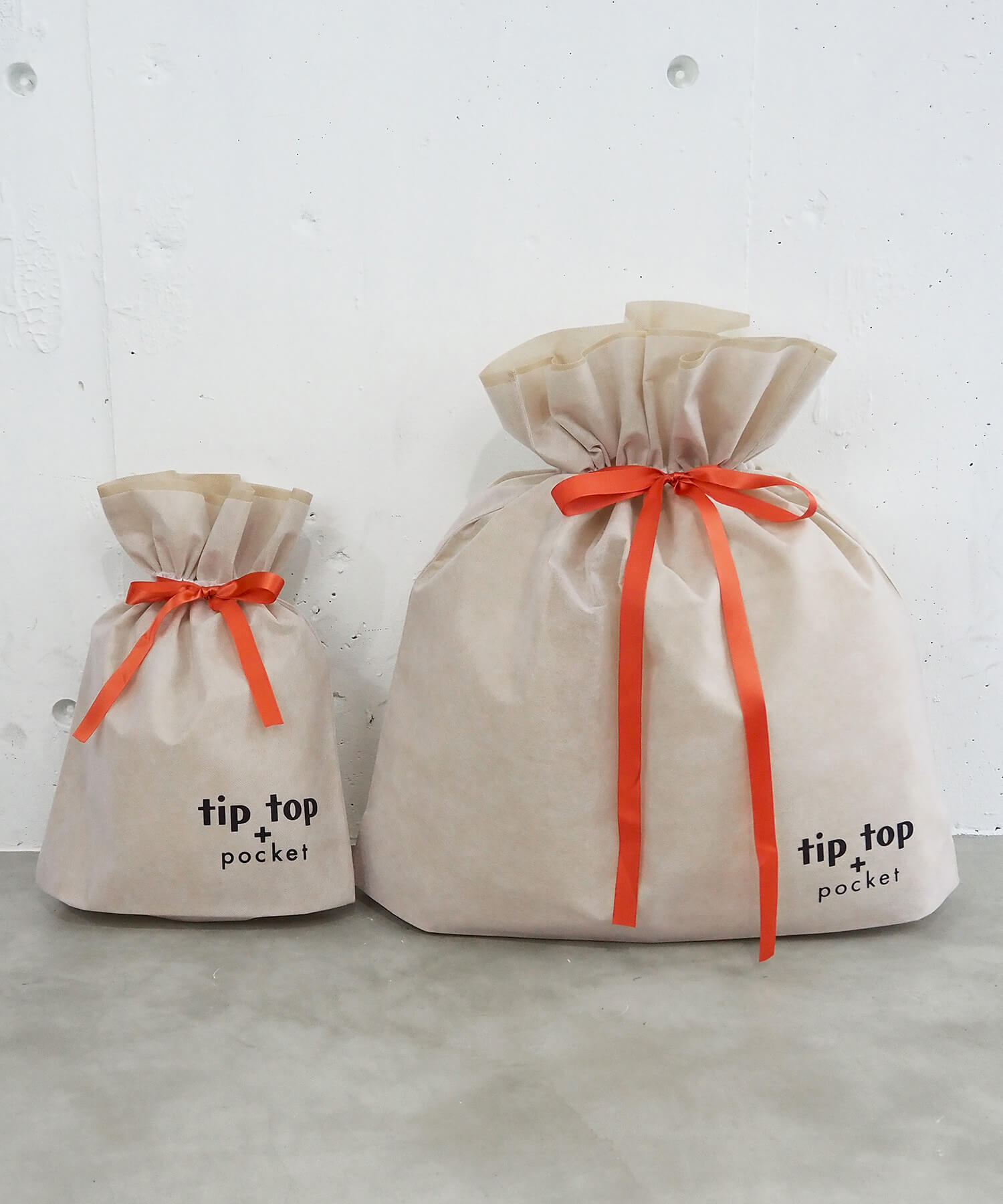 ・tiptop+pocketのロゴ入りの巾着型ギフトラッピング袋です。
