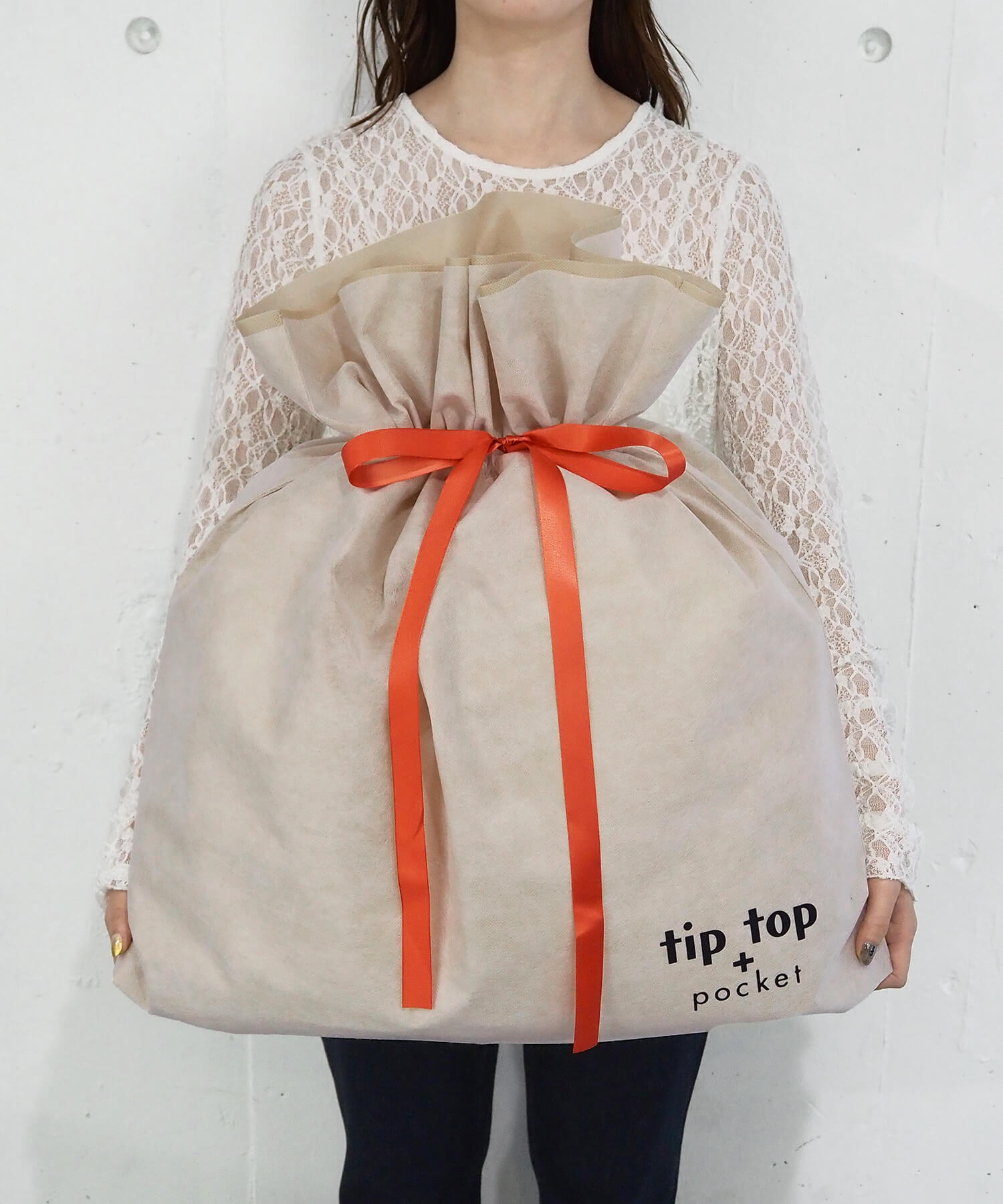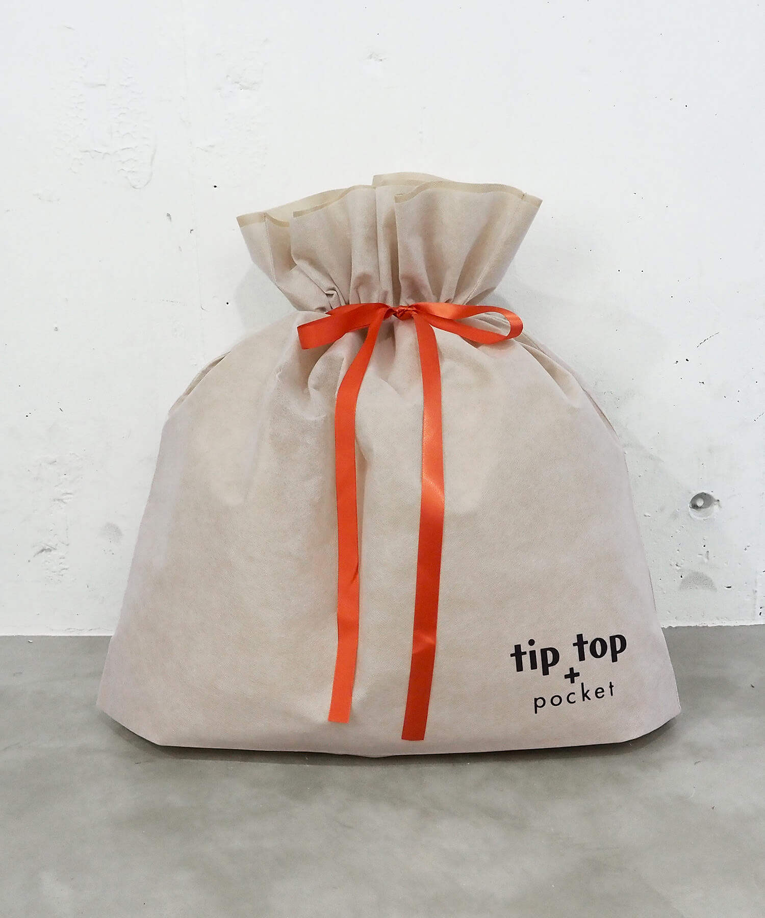 ・tiptop+pocketのロゴ入りの巾着型ギフトラッピング袋(L)です。