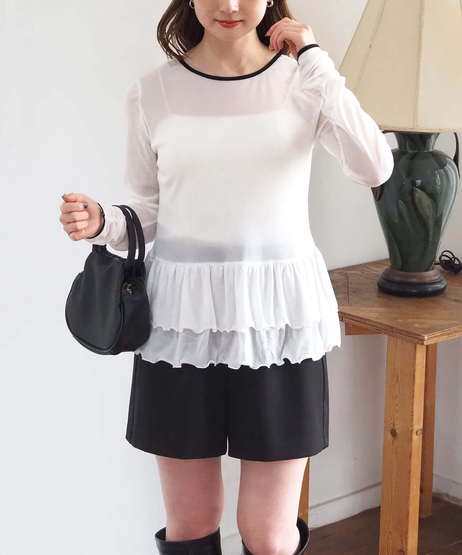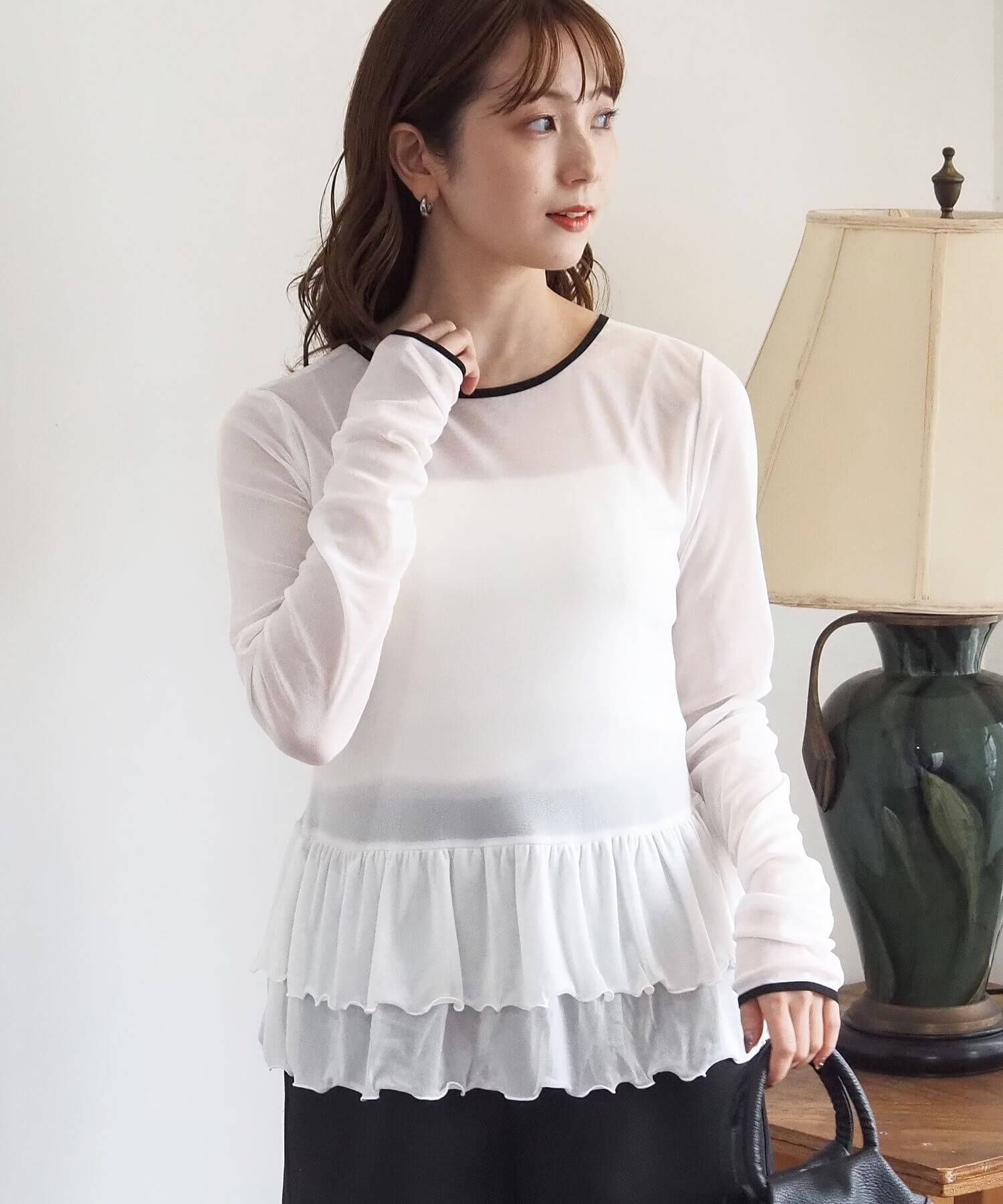 ・ショート丈のニットやスウェットとのレイヤードにも最適。女性らしいシアー素材が旬の大人ガーリーを叶えます。