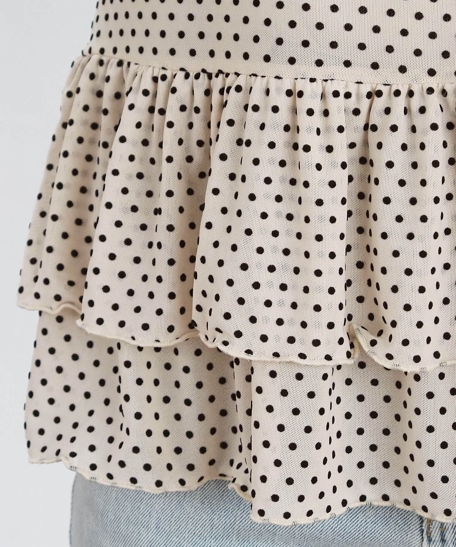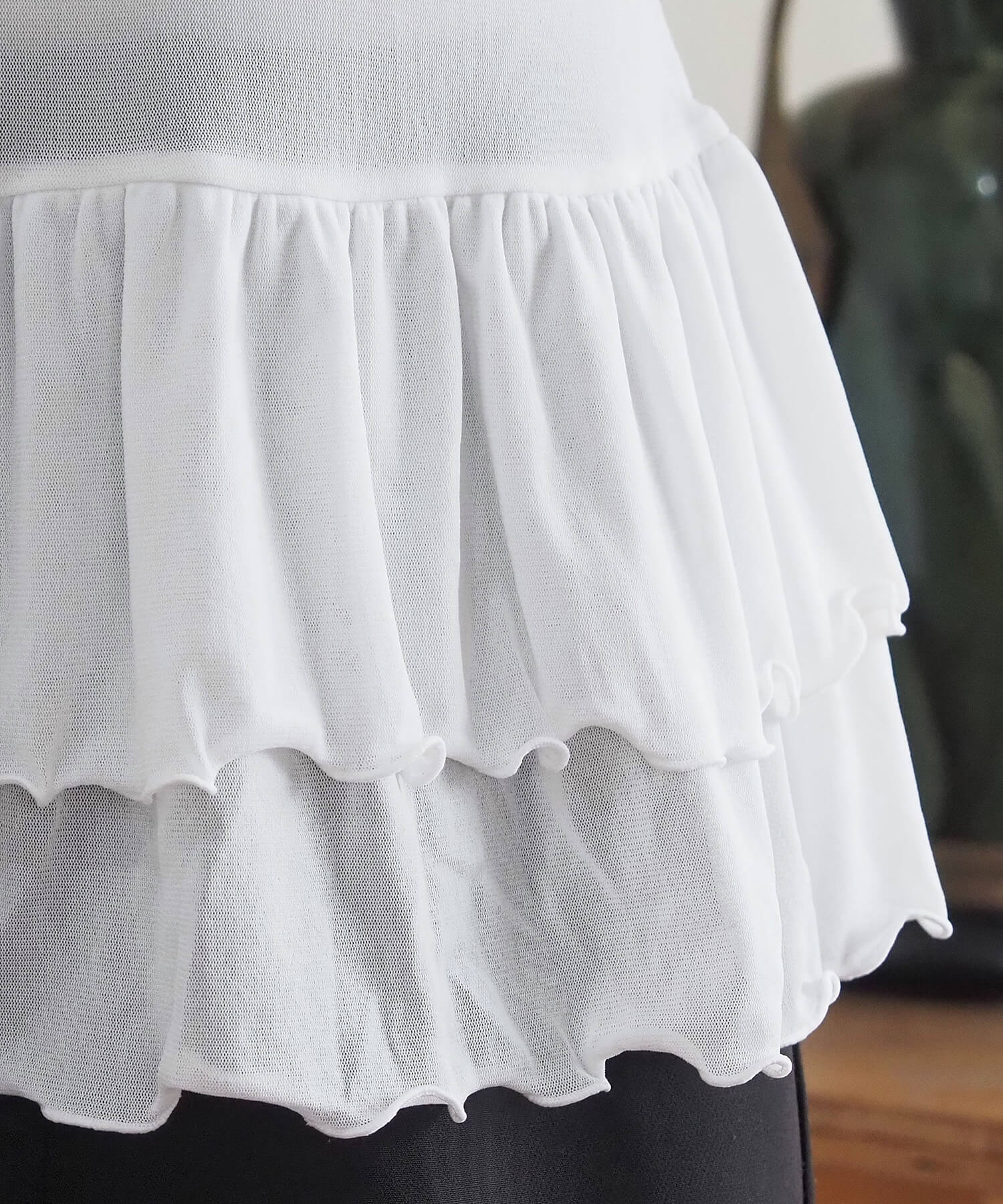 ・裾のティアードデザインが気になる腰回りをさりげなくカバー。