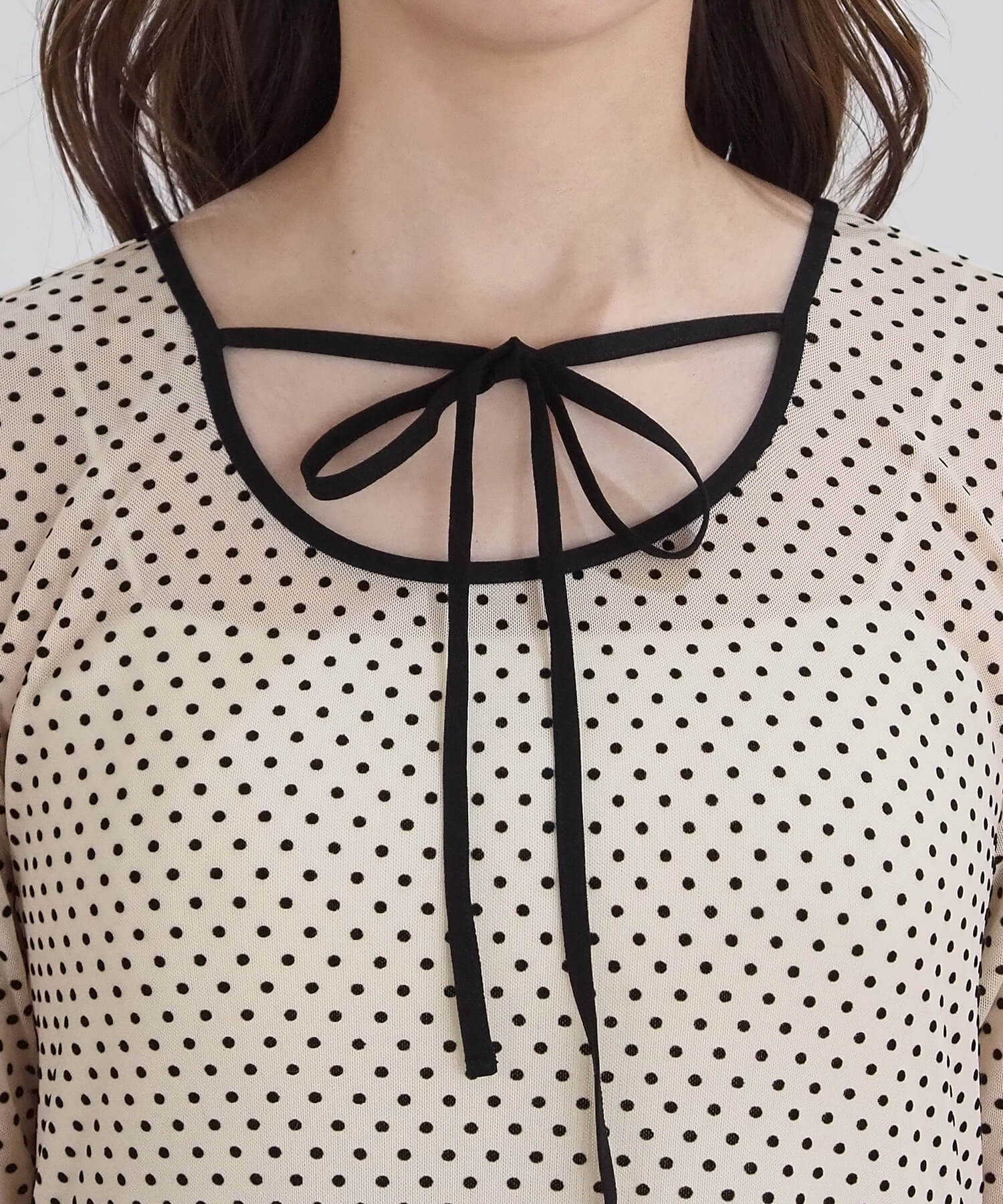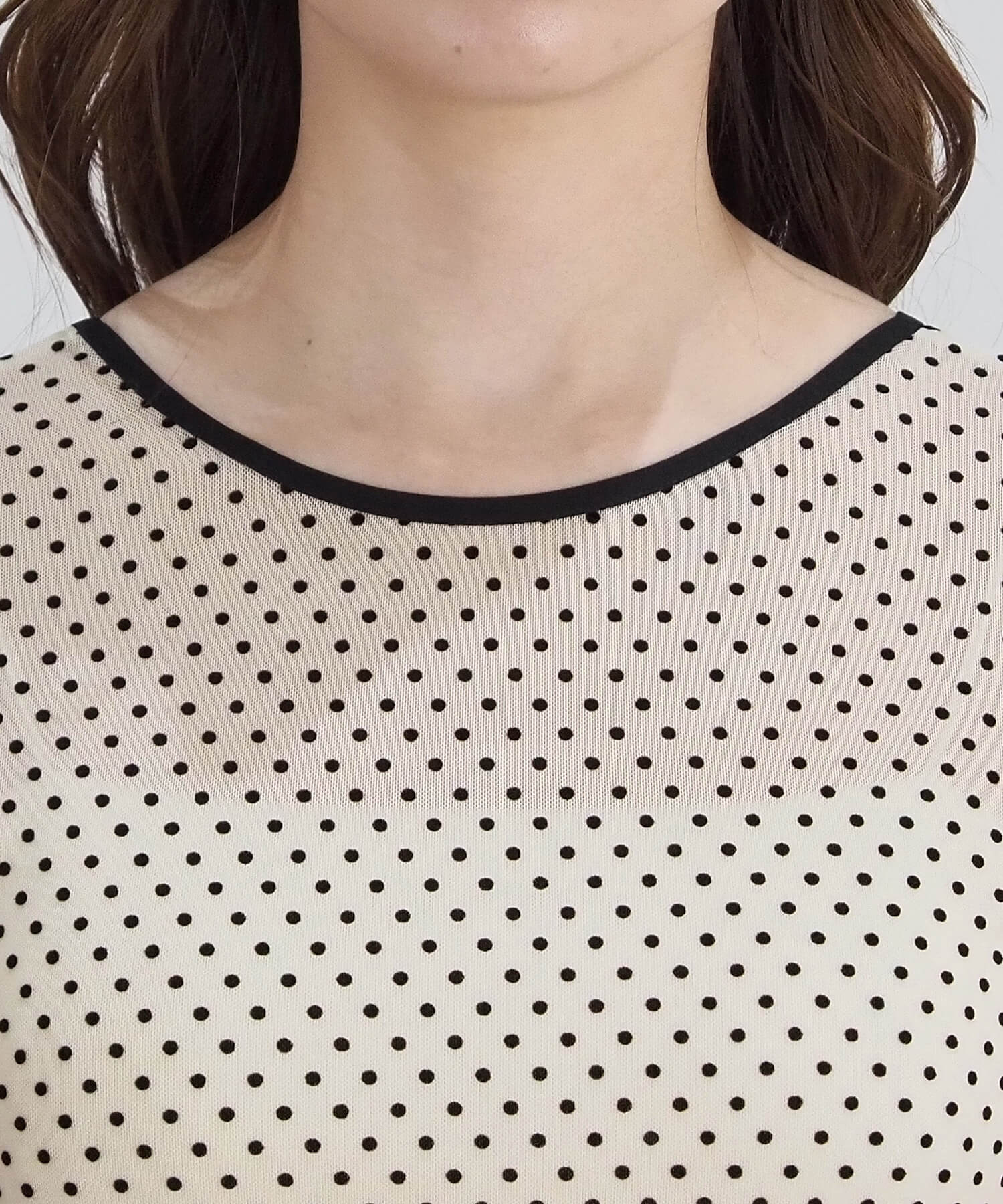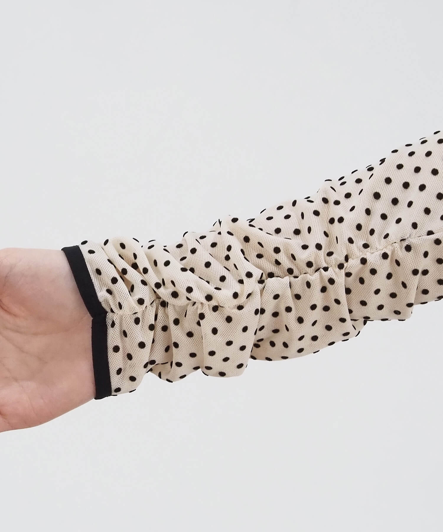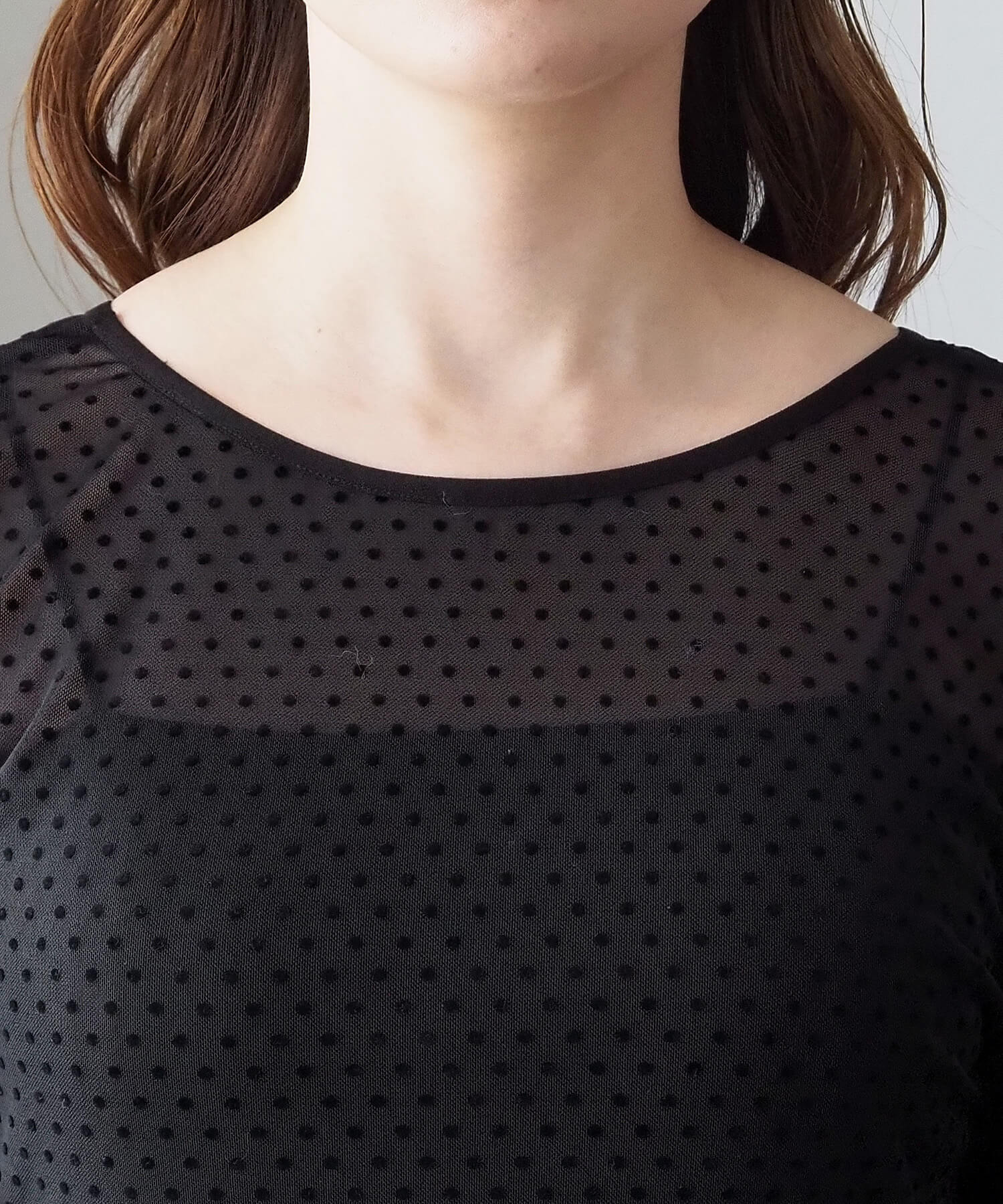 ・大人可愛いドット柄と、上品な無地の2タイプ。どちらも程よいシアー感で軽さのあるアイテムです。