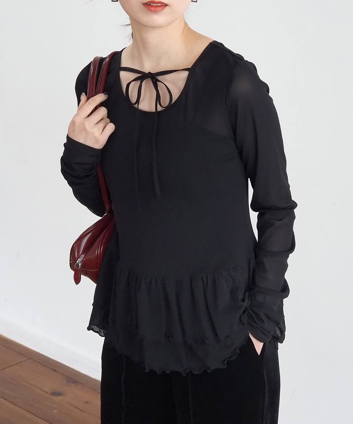 ・リボン使いがアクセントのシアーロンTです。