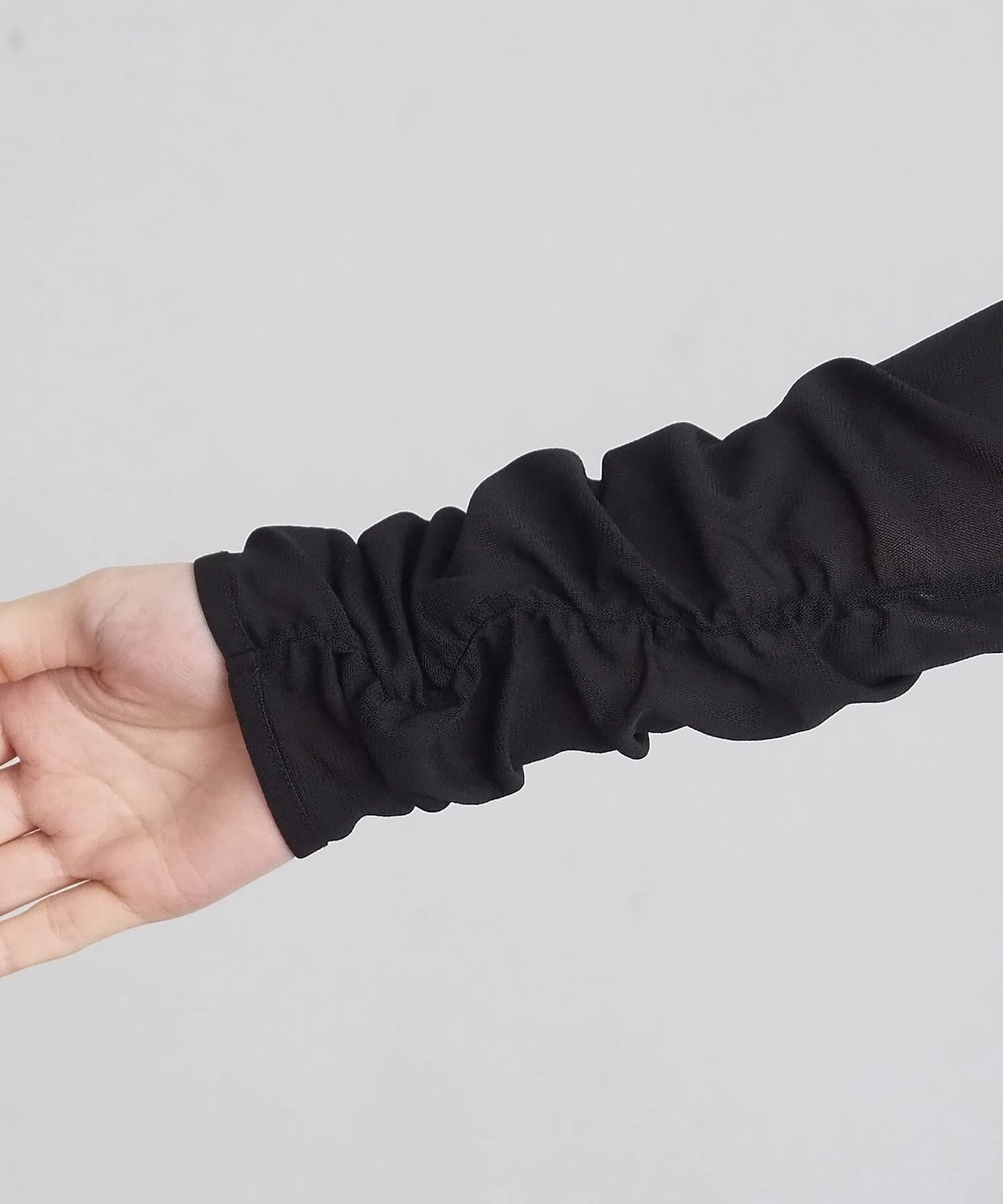 ・袖はひじ下にギャザーを施し、着るだけでクシュっと溜まるこなれ感の出る袖に仕上げました。
