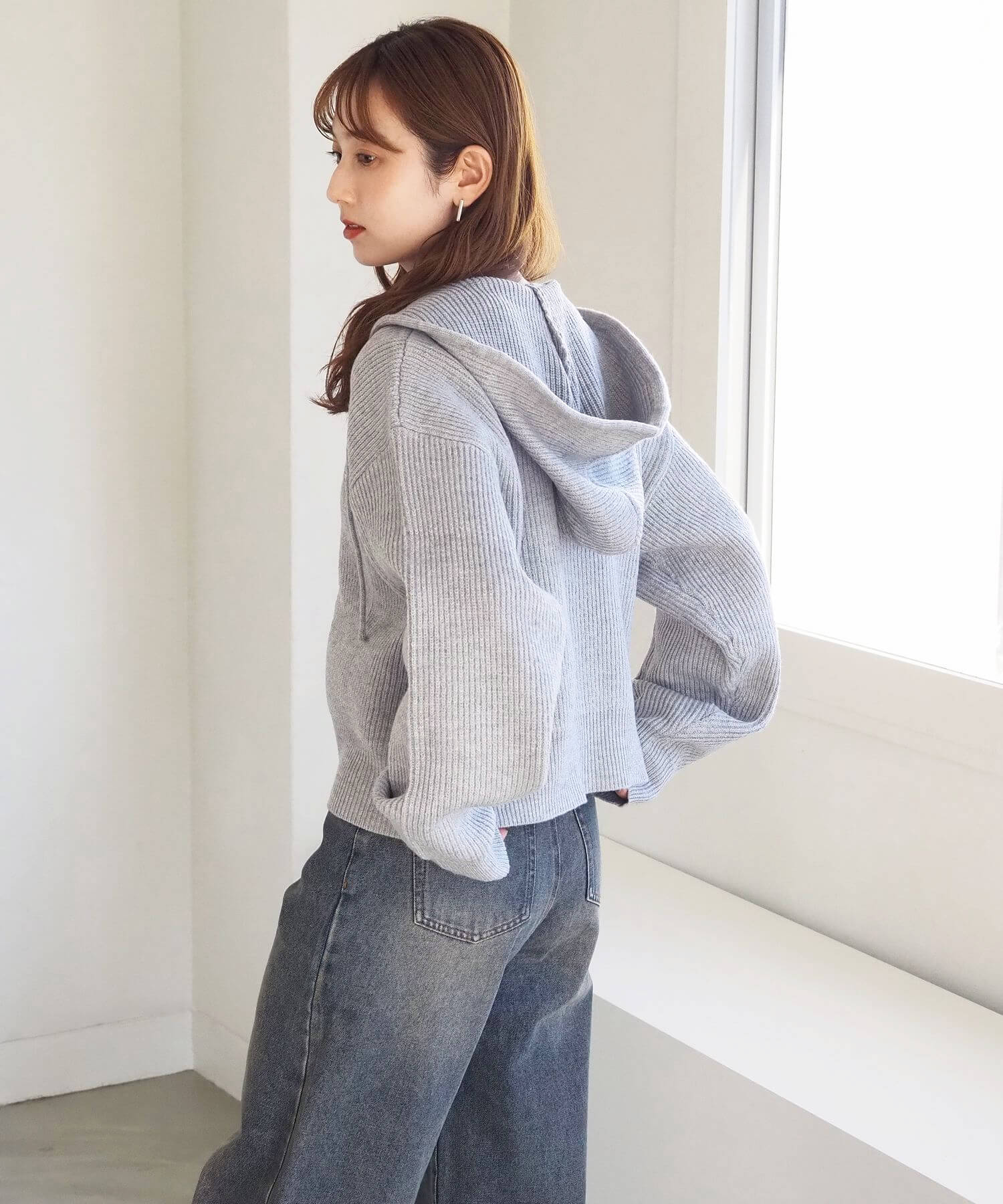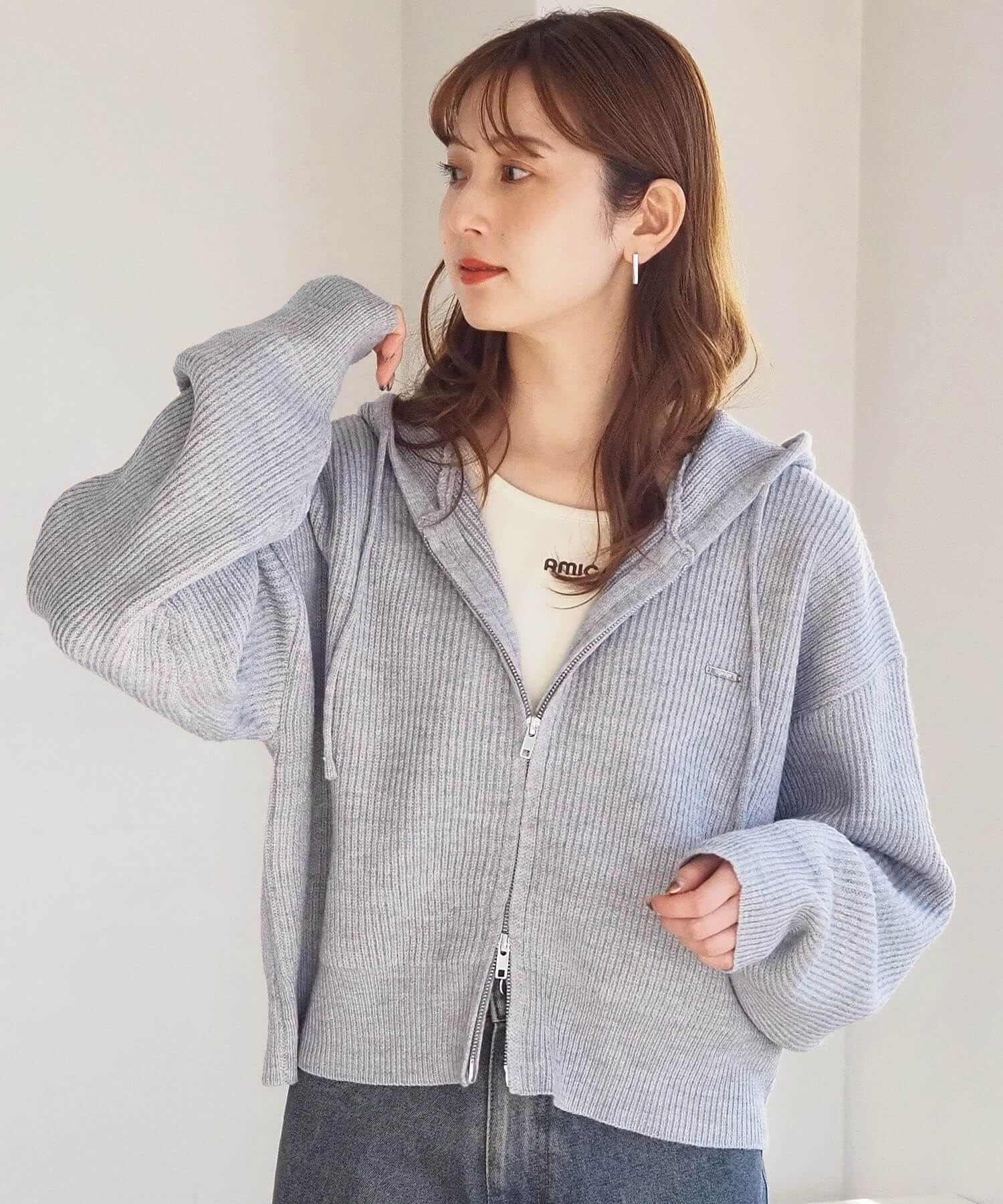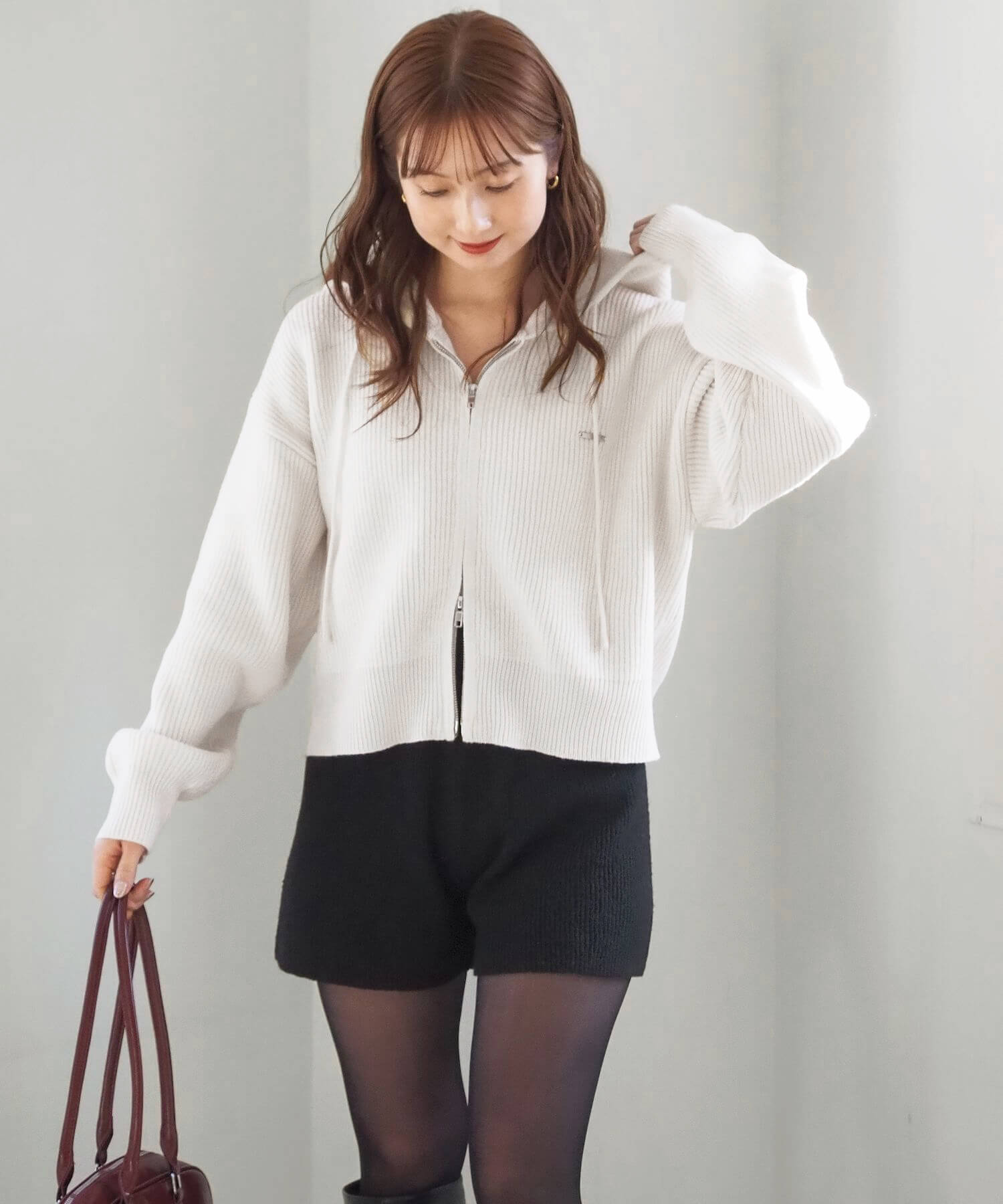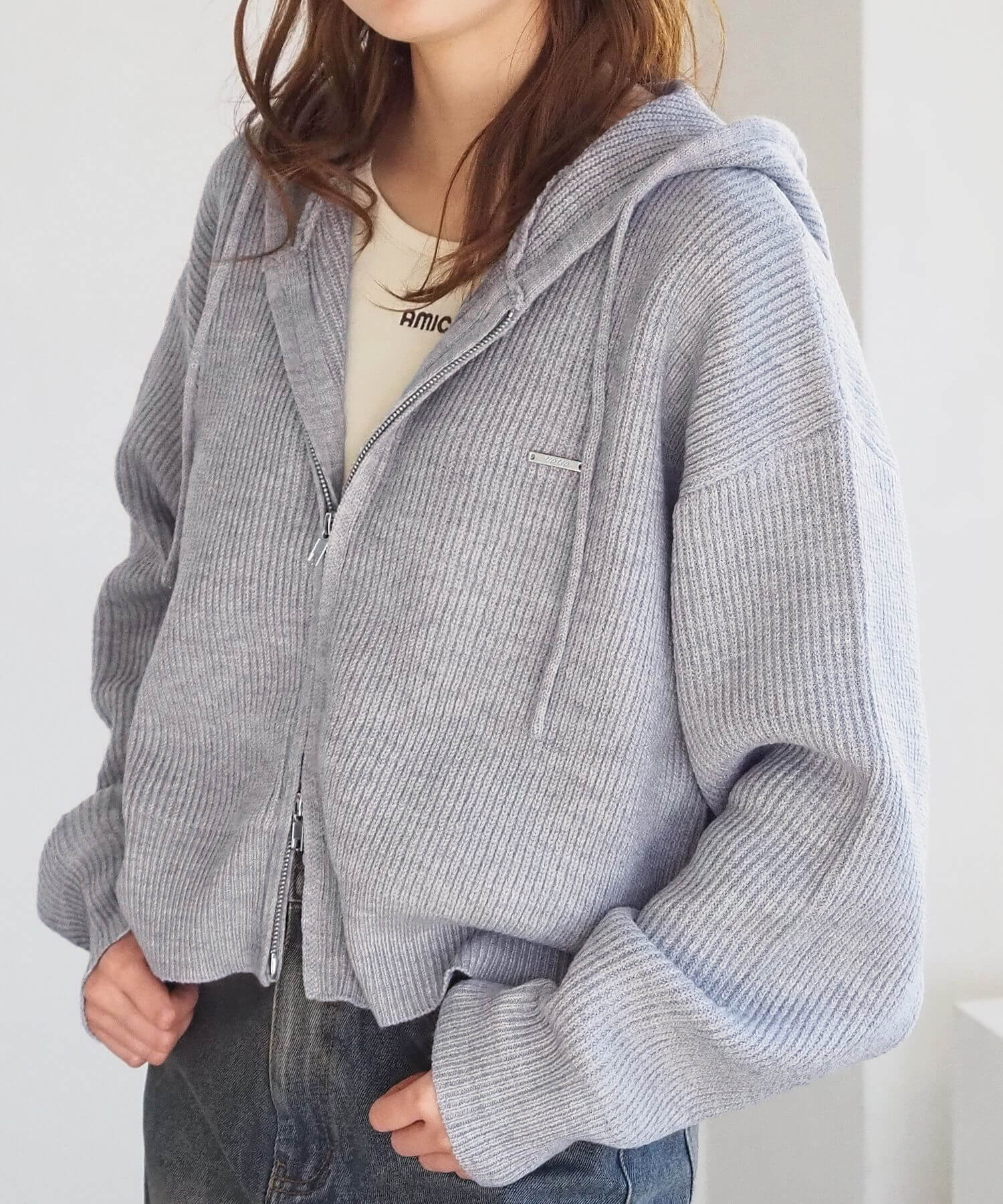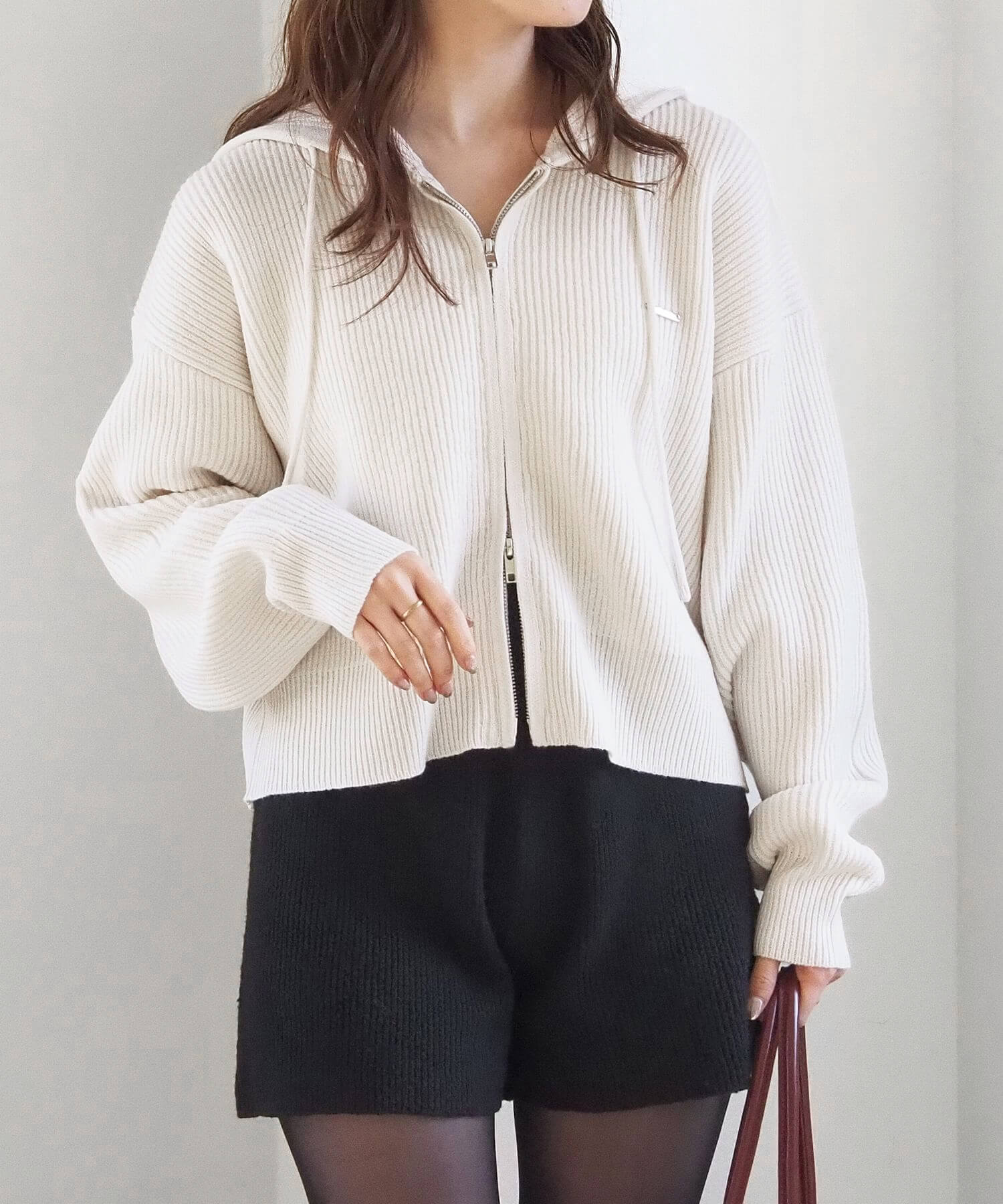 ・プレート付きが今年らしいニット素材のジップパーカーです。