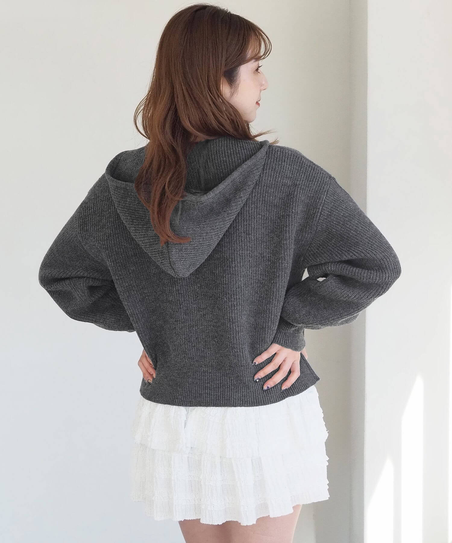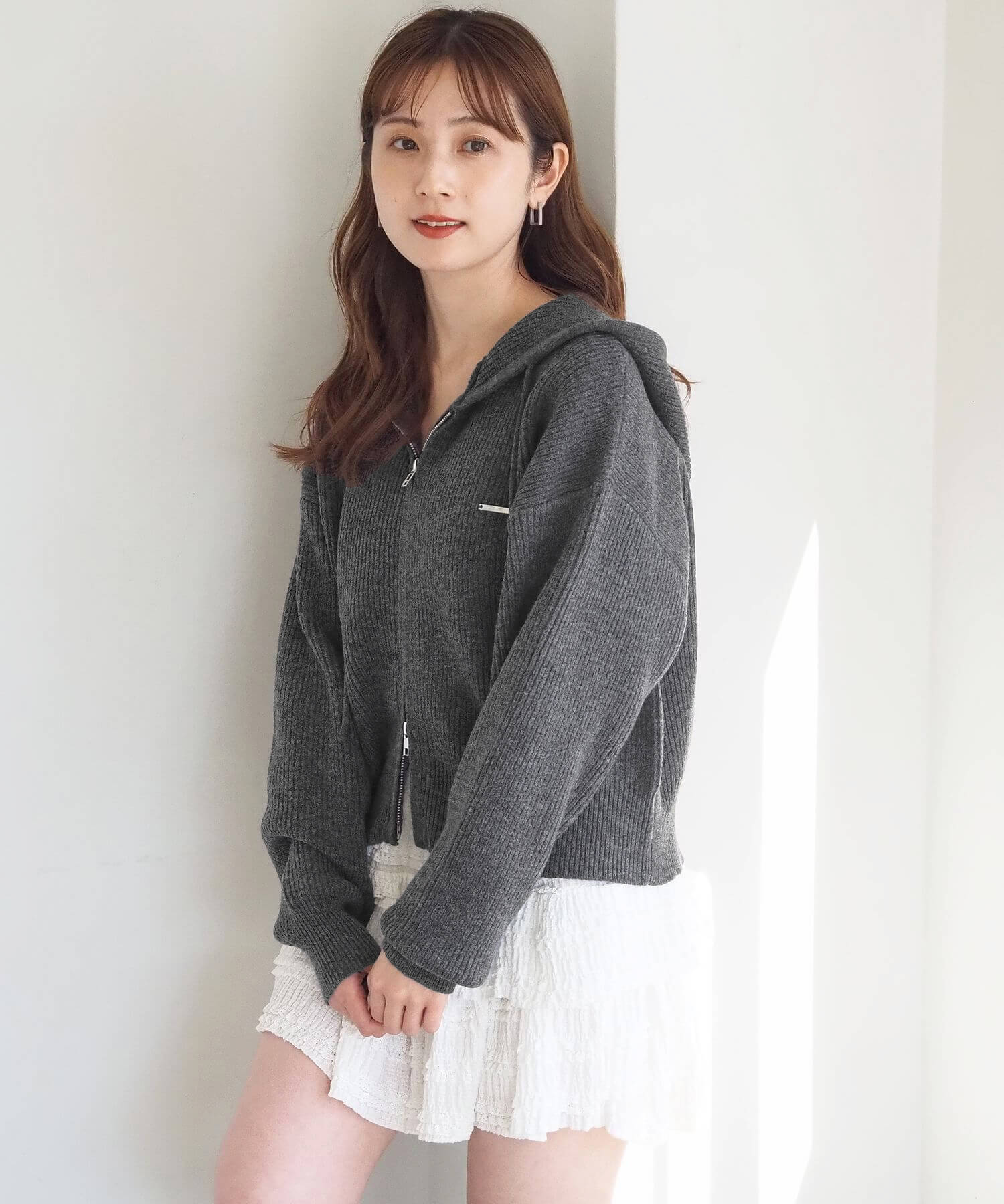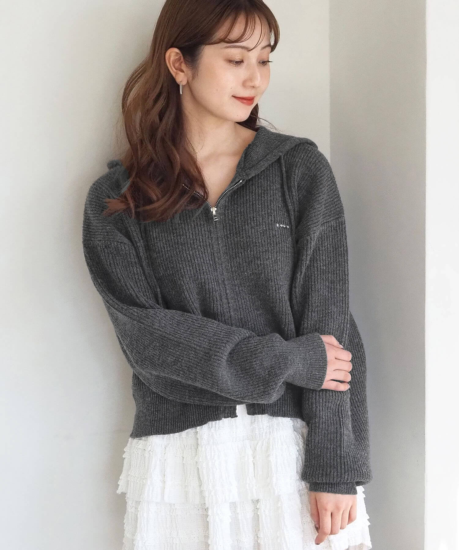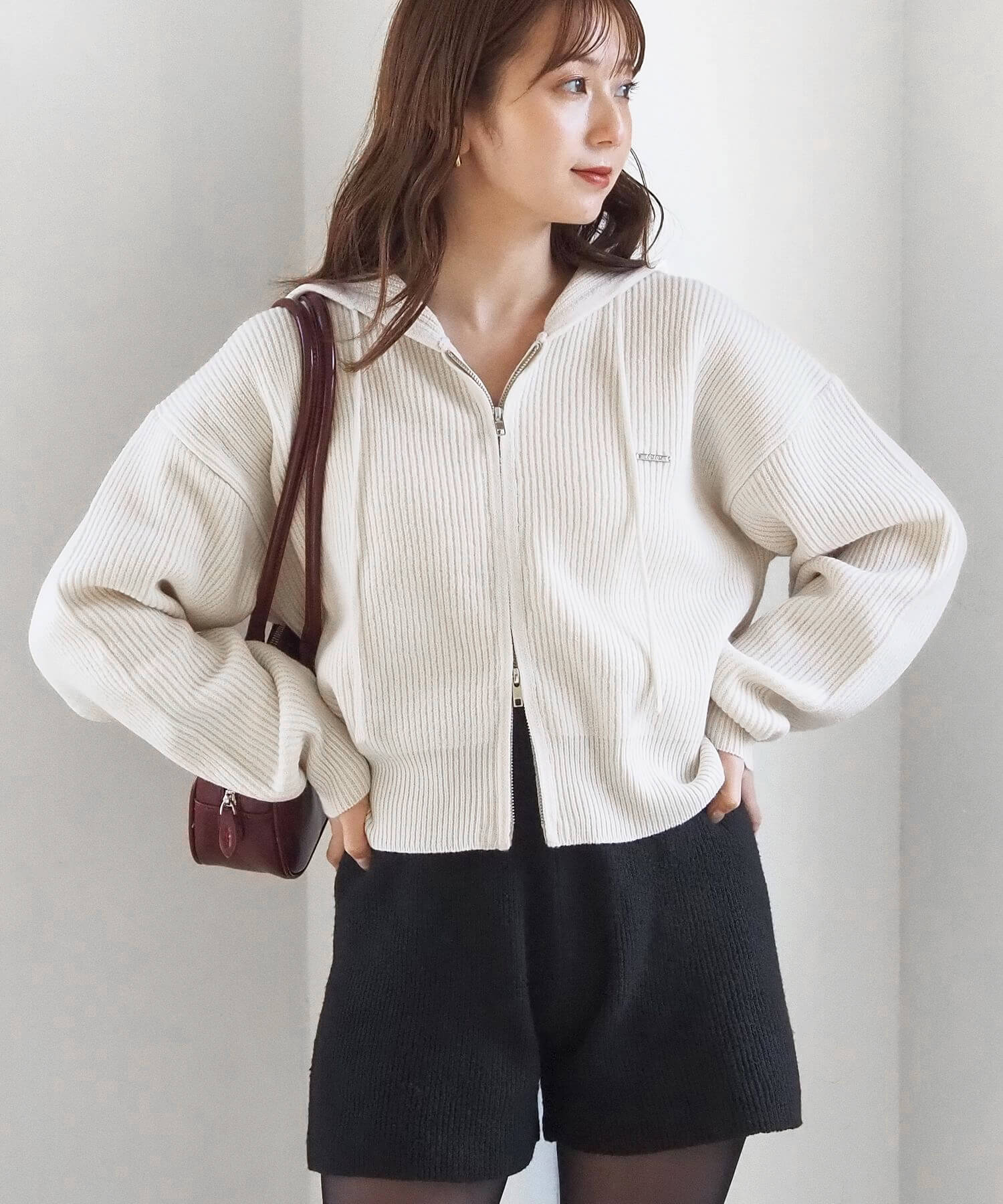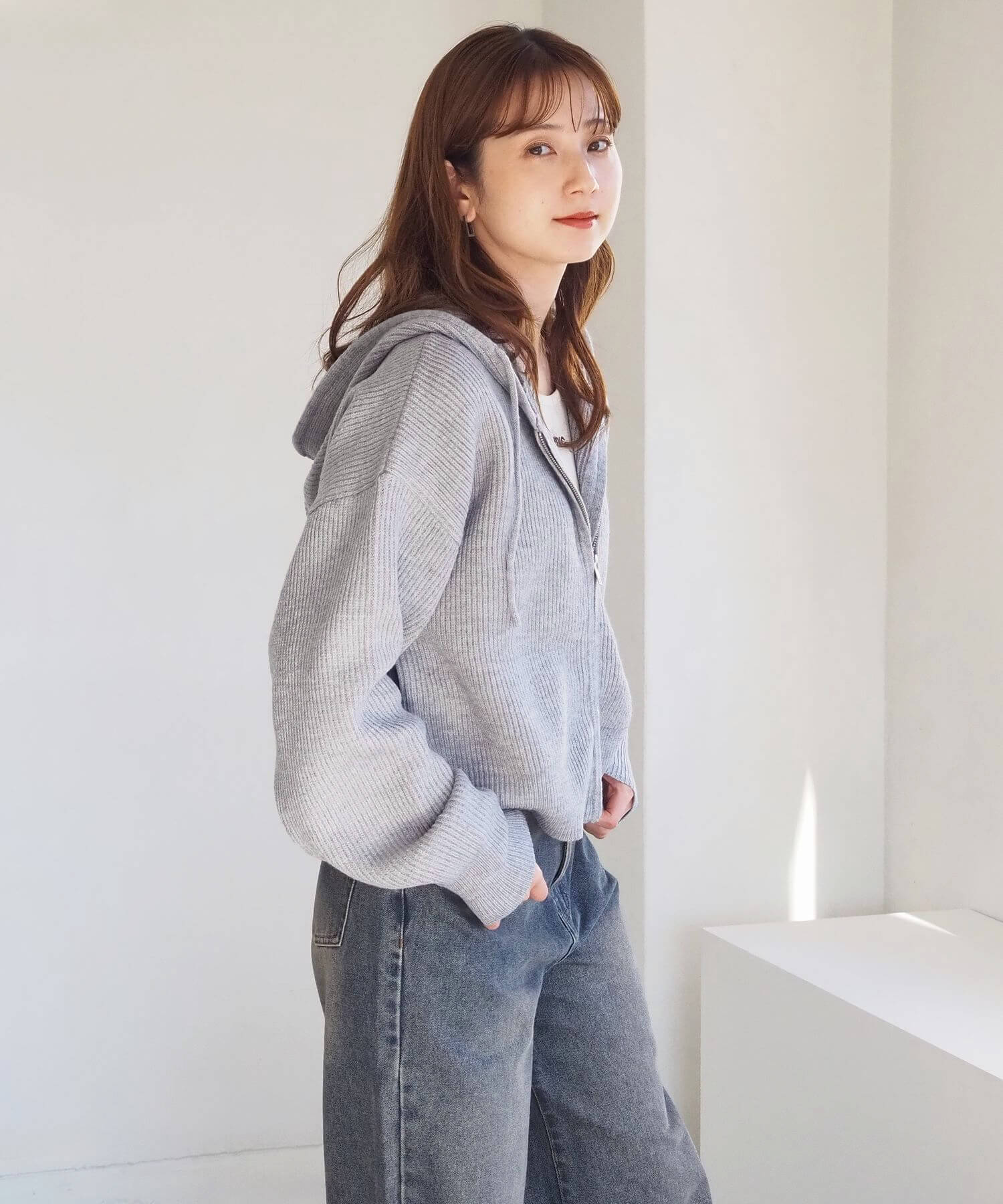 ・プレート付きが今年らしいニット素材のジップパーカーです。