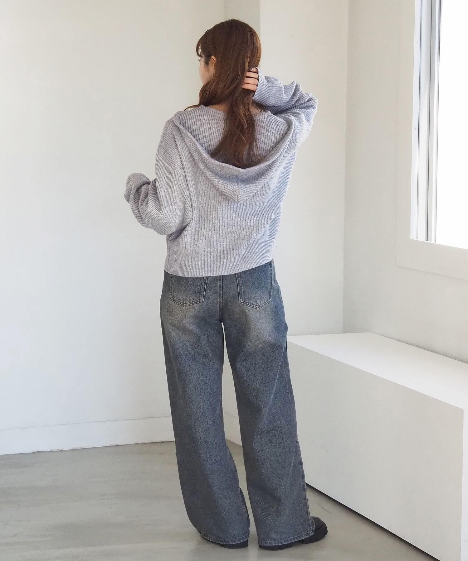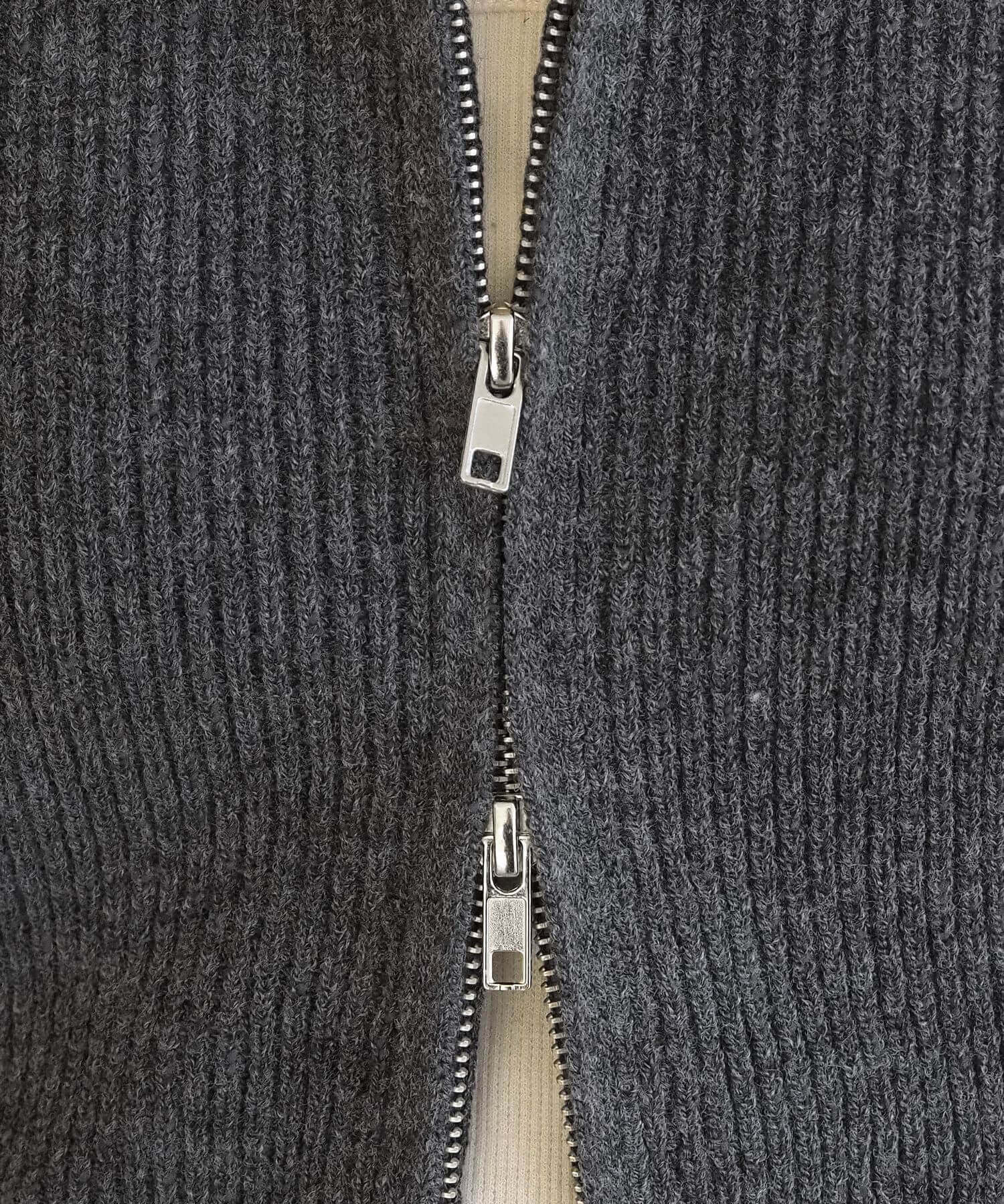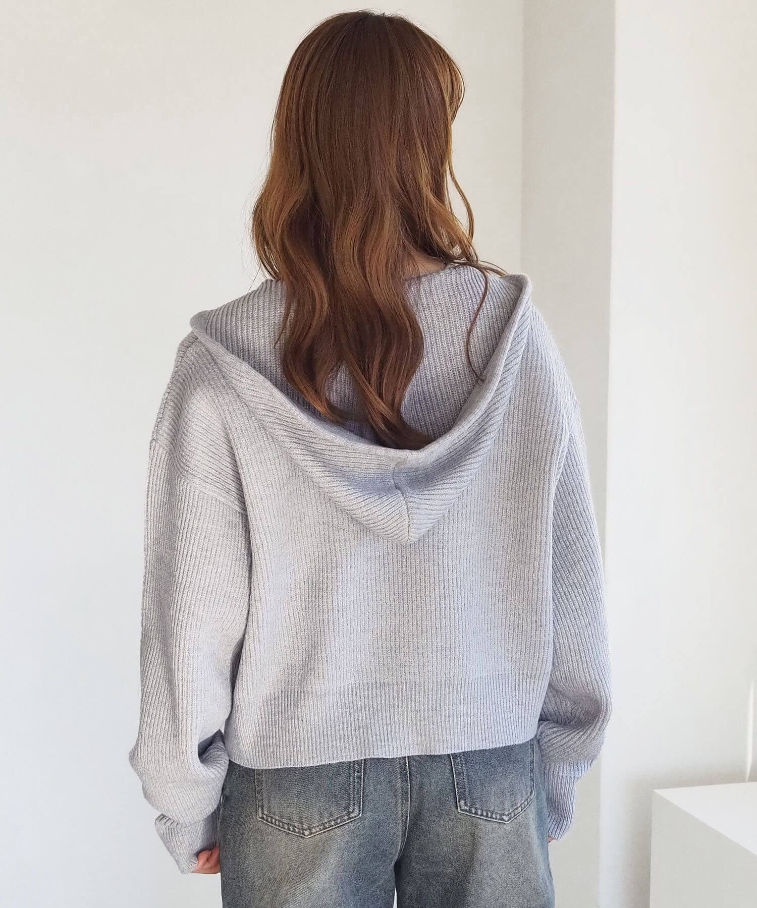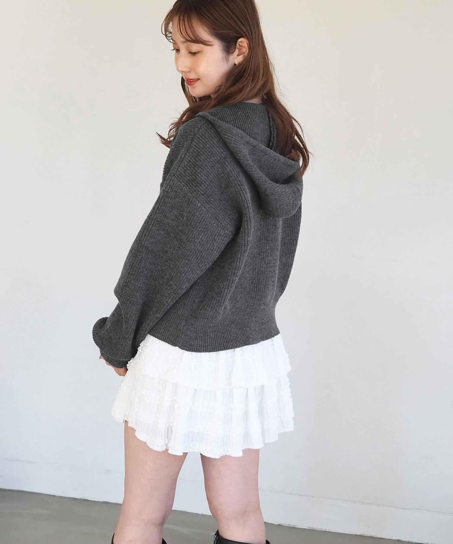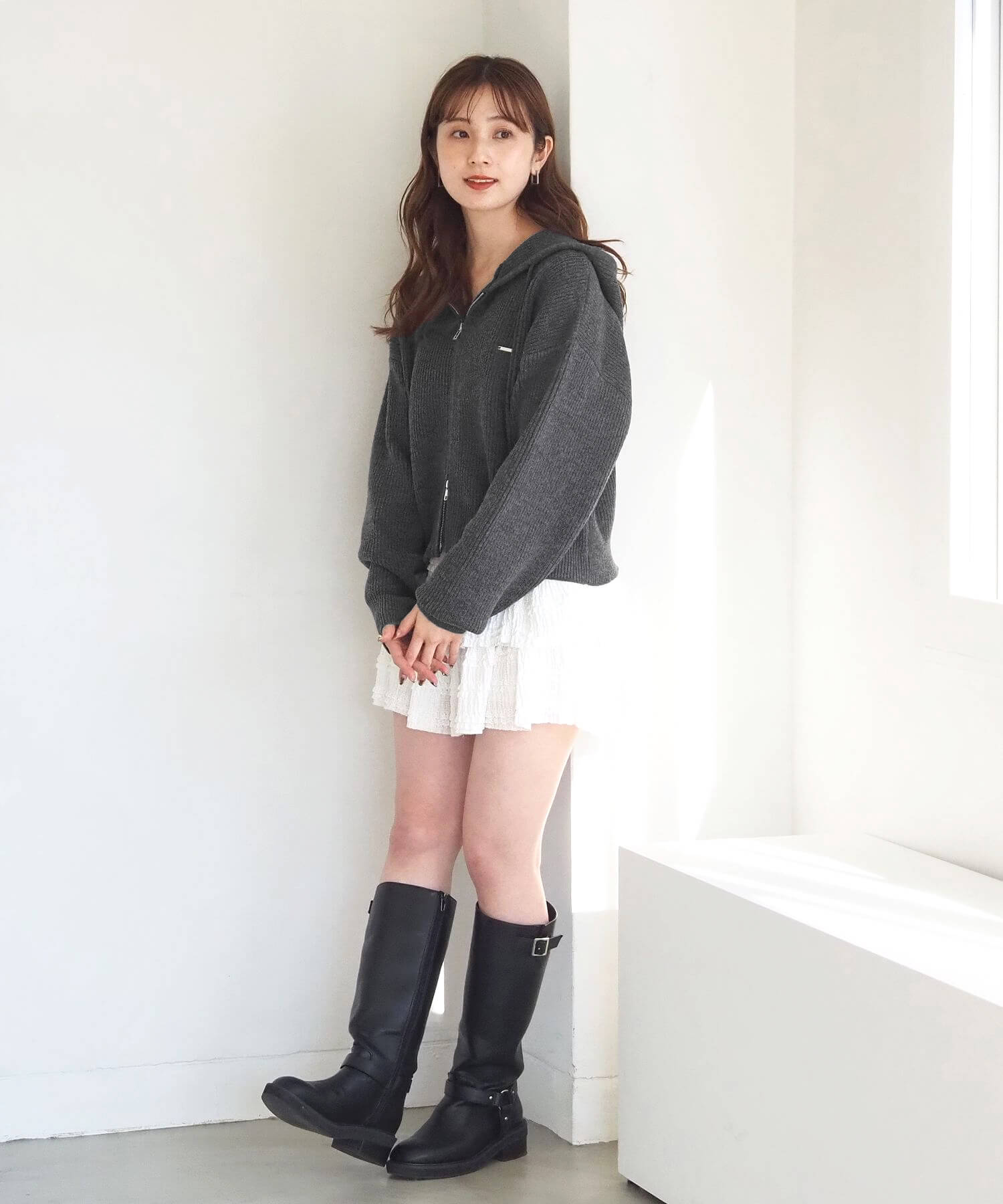 ・プレート付きが今年らしいニット素材のジップパーカーです。