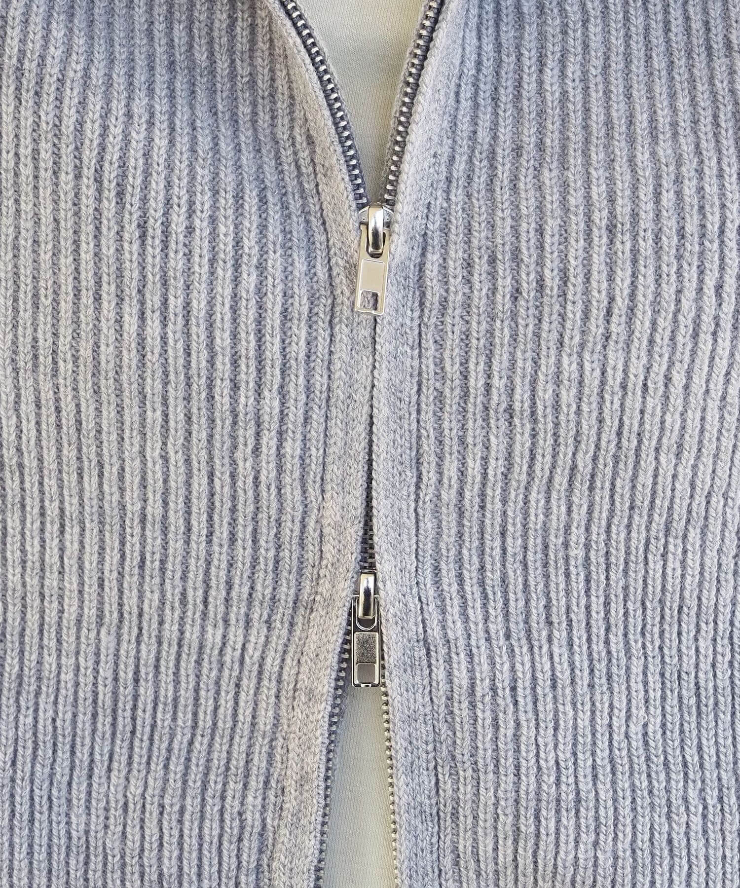 ・程よい厚みを感じられる畦編みで、冬のトップスから春の羽織りまで長く活躍します。