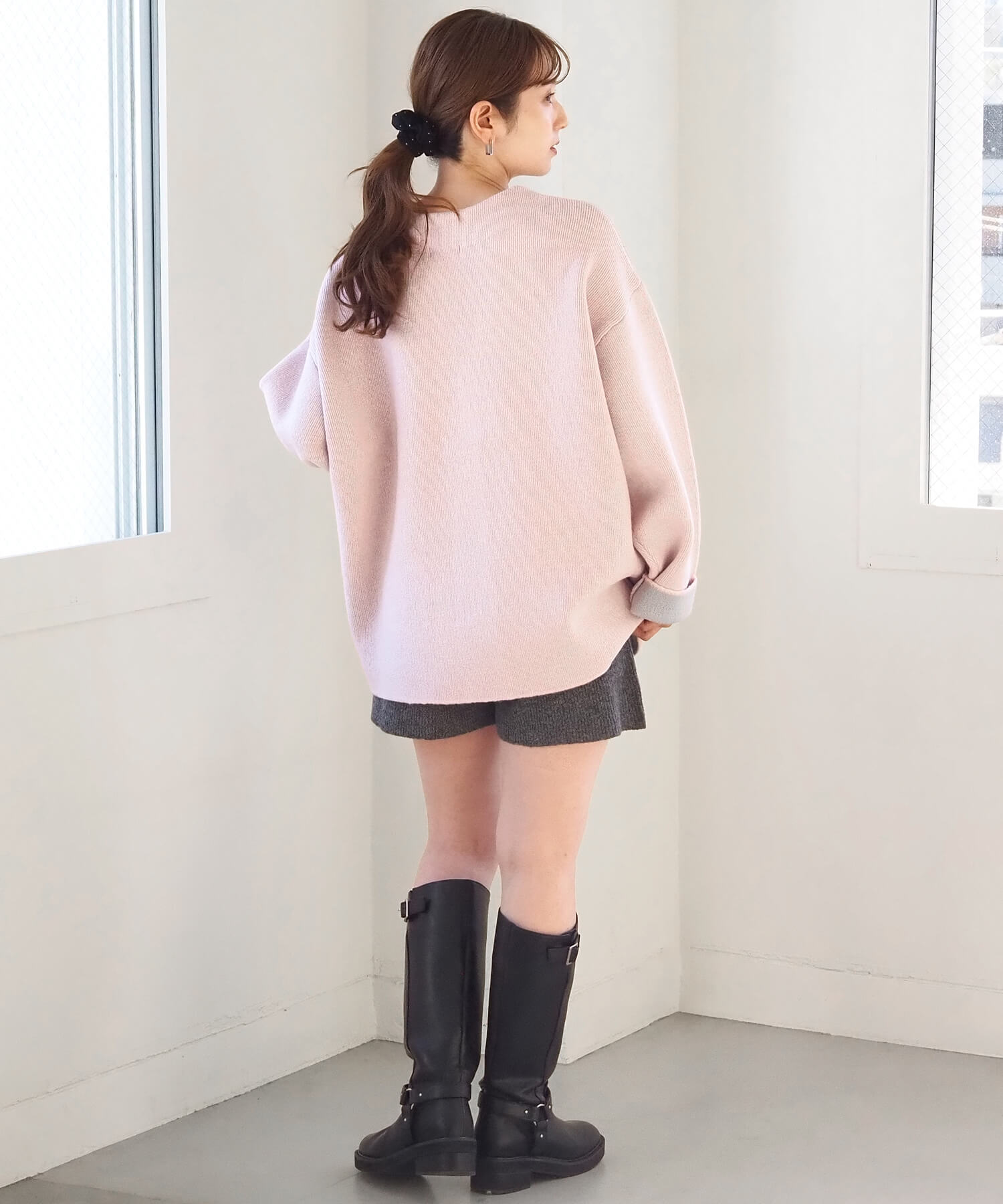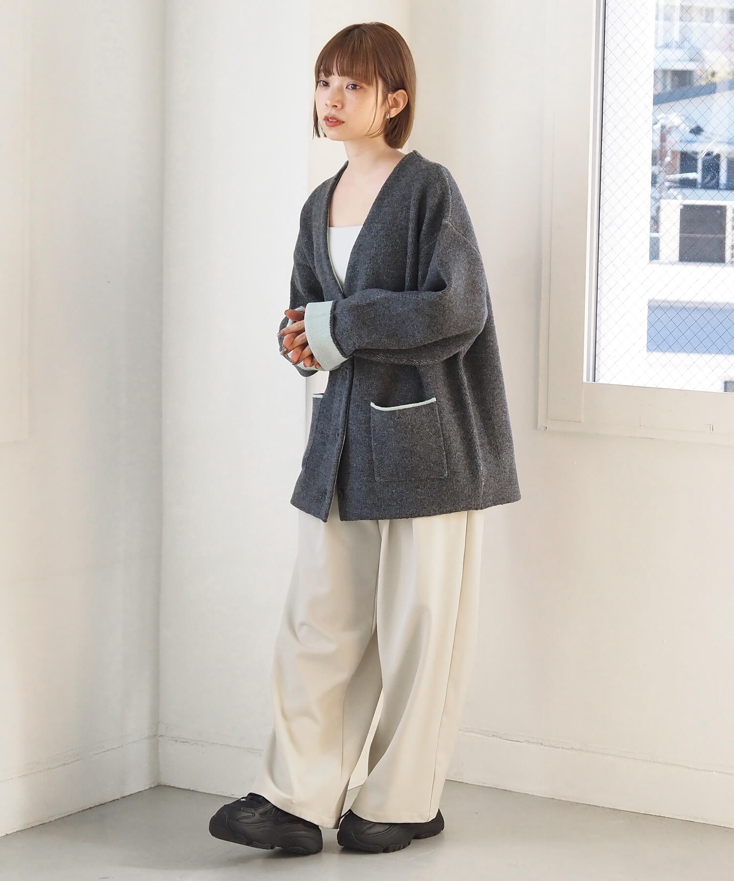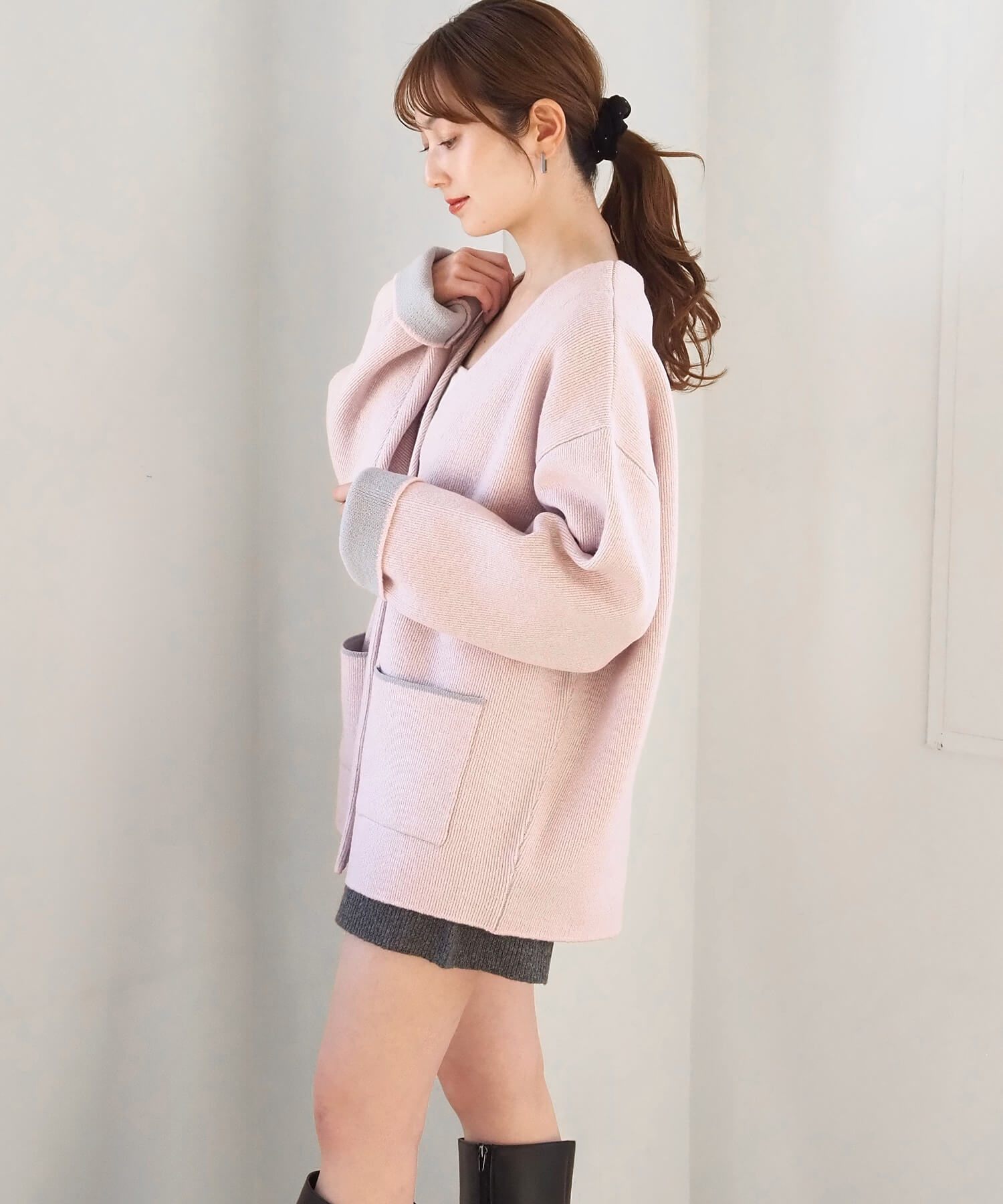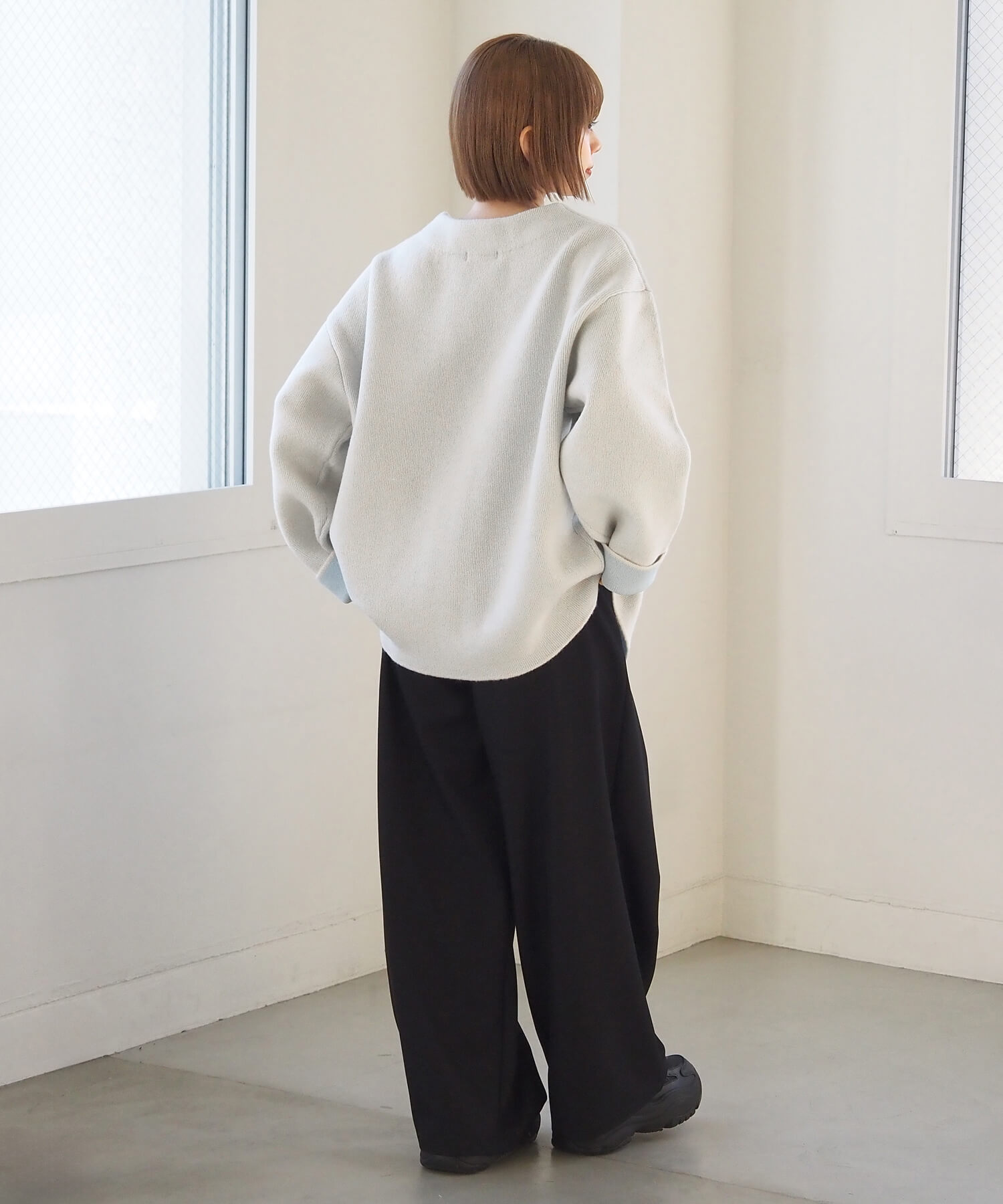 ・2色のニットを合わせたダブルフェイス仕様なので、袖の折り返し幅は気分でアレンジが可能。