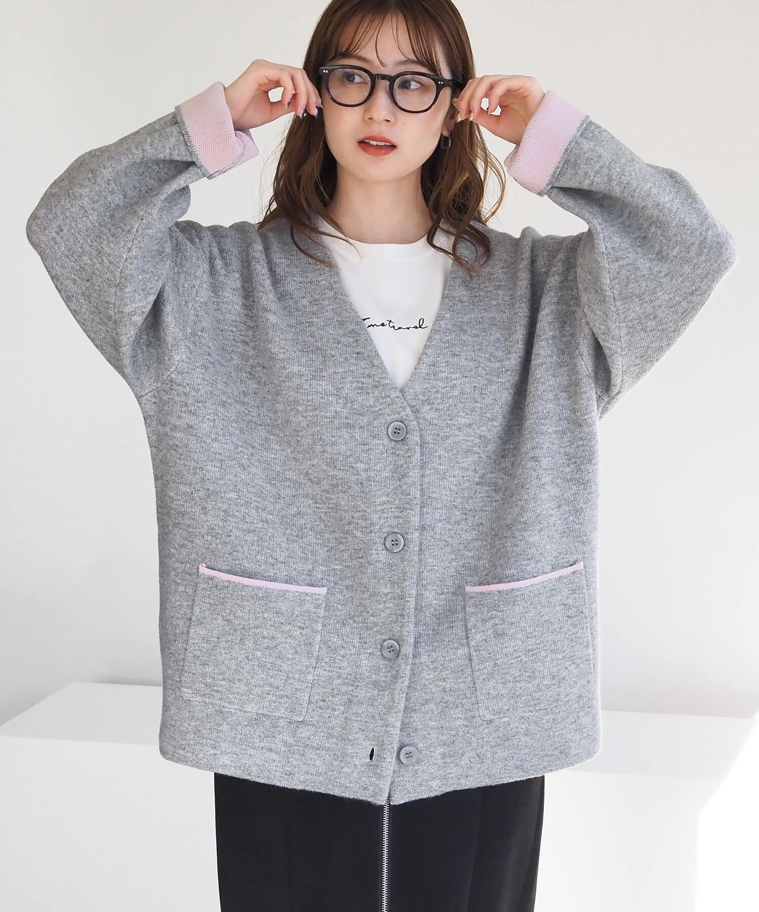 上品なベージックカーディガンに遊び心をプラス♪