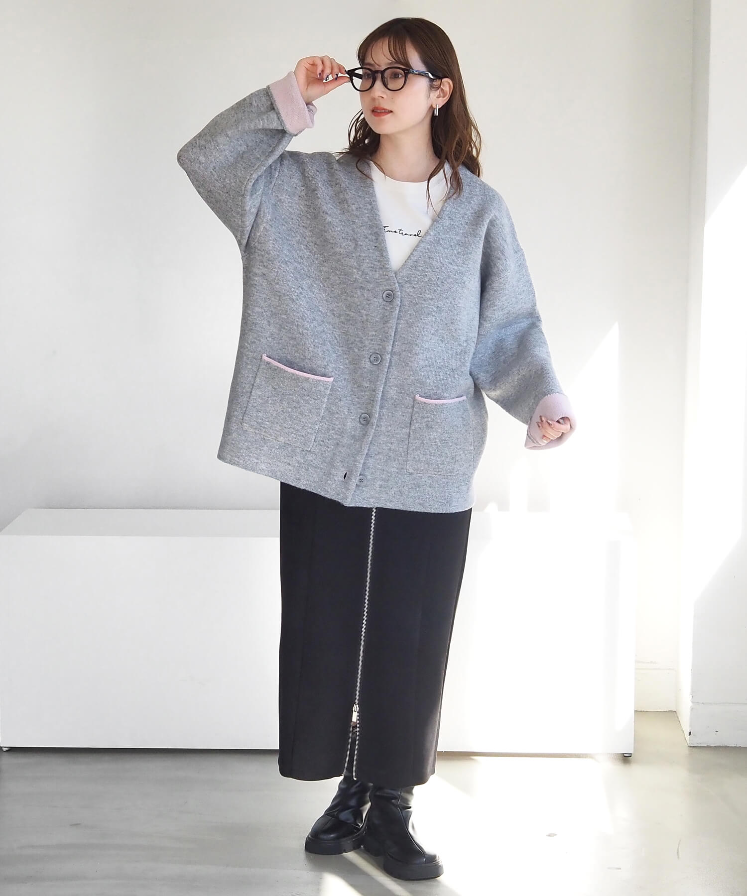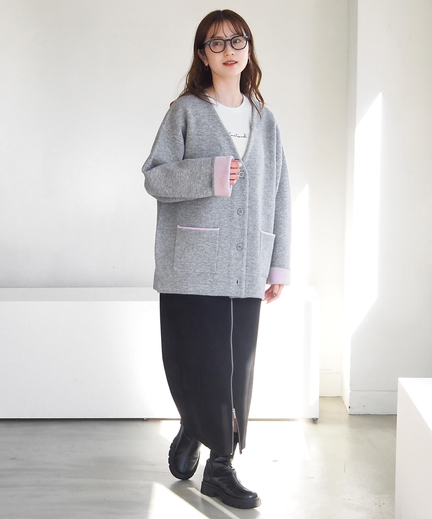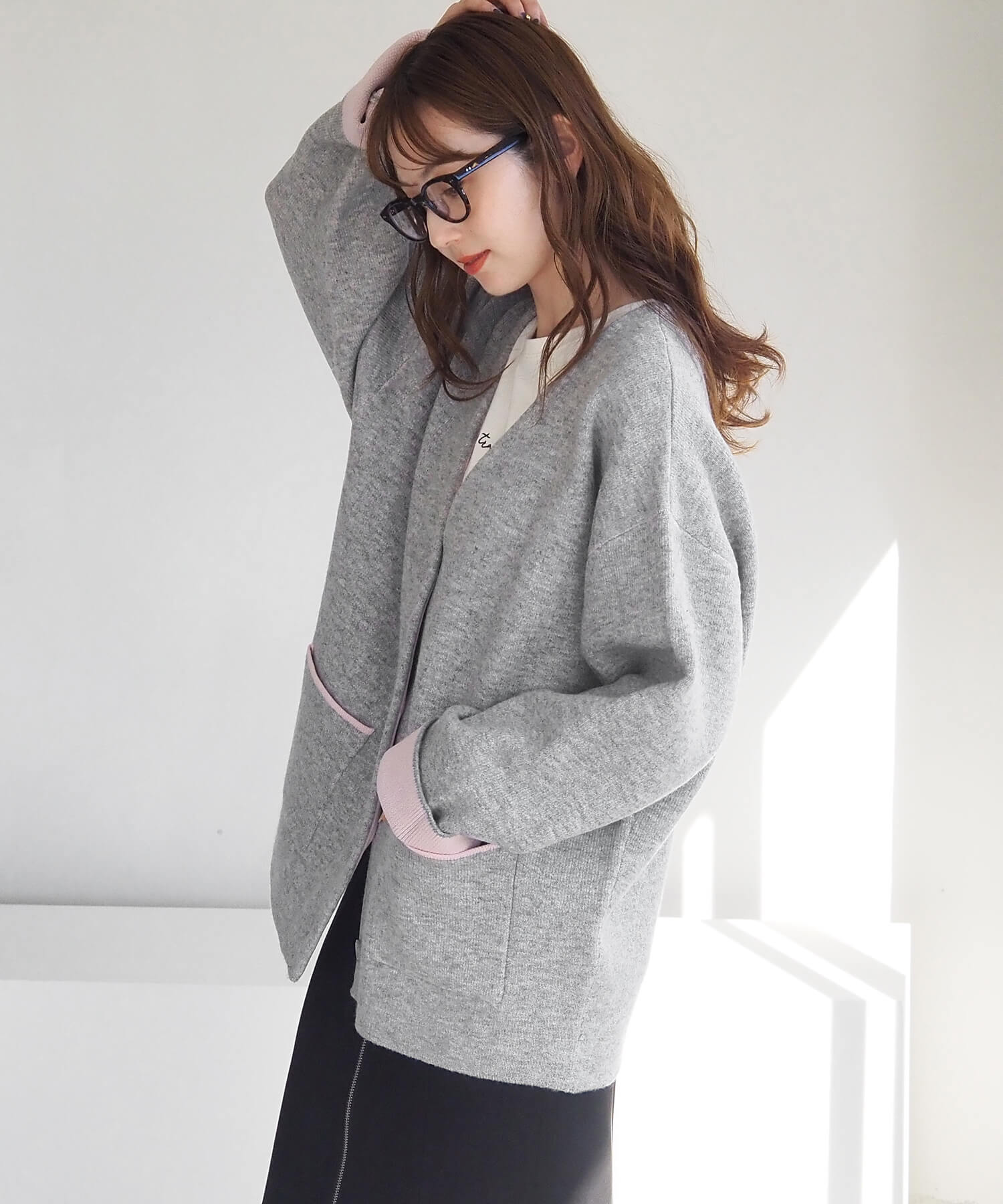 ・袖を伸ばしてシンプルな着こなしも楽しめます。